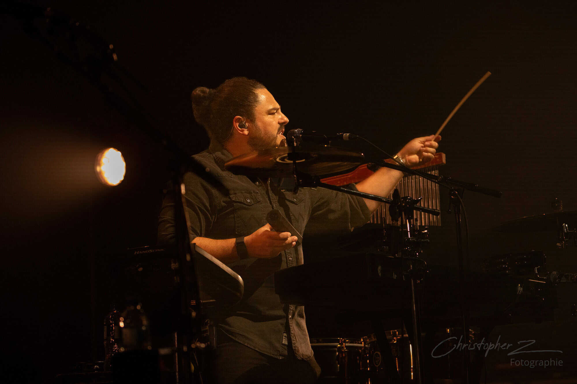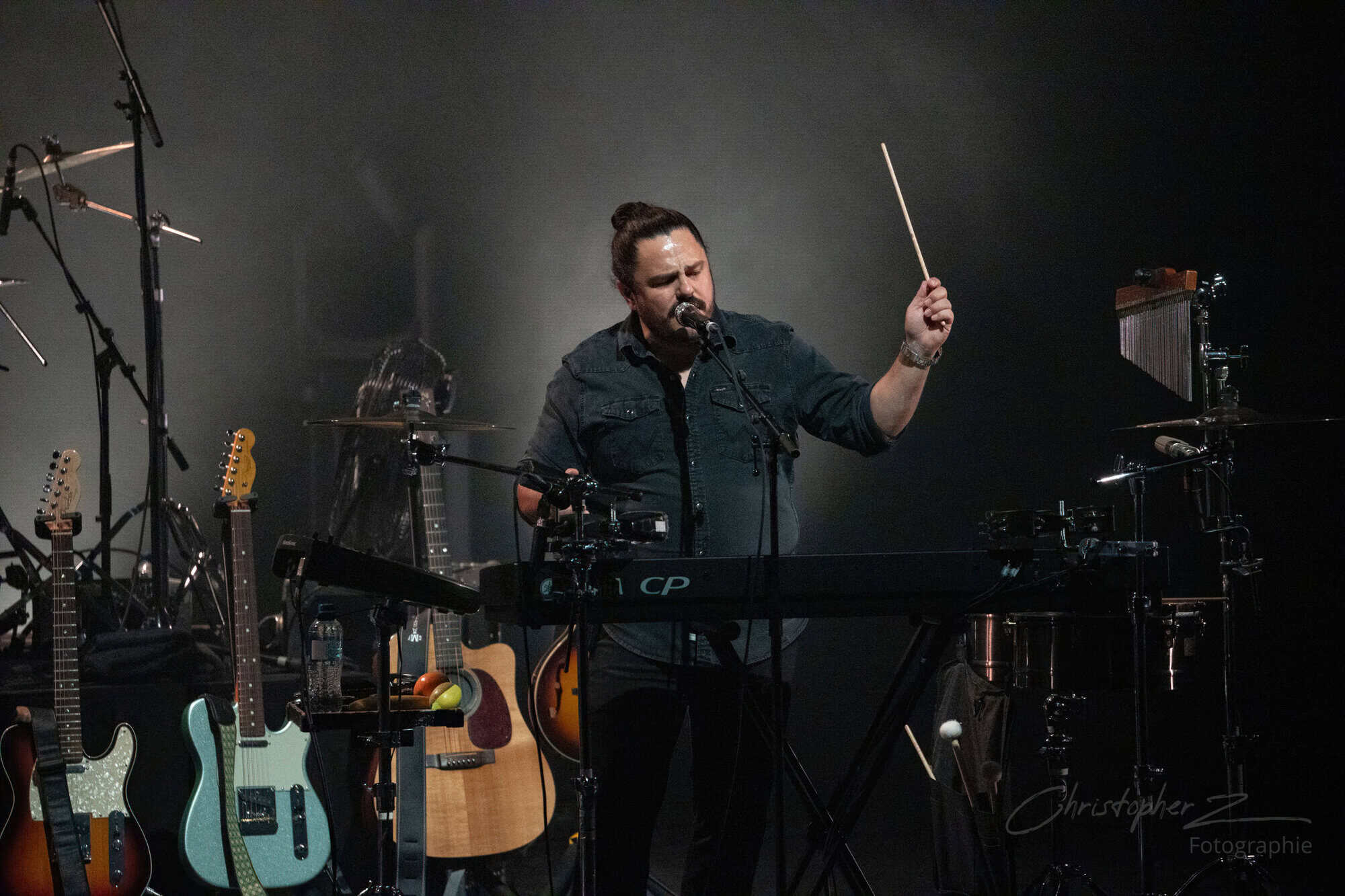 All the while Burgess watches over proceedings from his drum kit, looking like a a Gandalf asPark moves seamlessly from guitar to keyboards to percussion all in one song. There’s a whistling duet even.