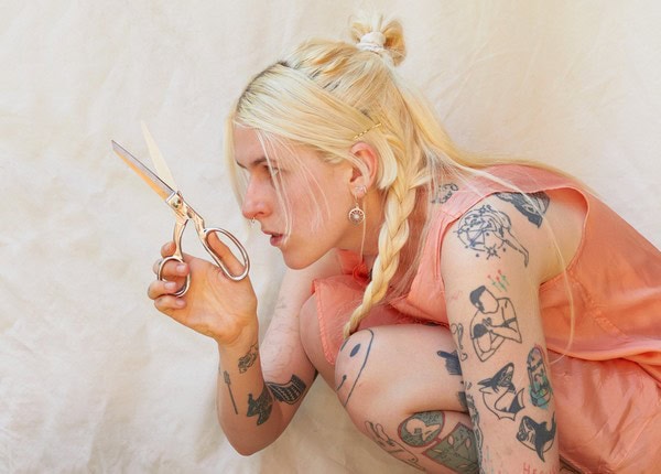 Lala Lala’s first offering, “DIVER,” is “the thesis of the album.” It’s a pop song of Kate Bush-esque proportions, replete with layered synths and booming, wide open drumming contributed by fellow Chicago musician Nnamdi Ogbonnaya, and West pushing her vocals to the ragged edge. To describe the theme of “DIVER,” West says “I want total freedom, total possibility, total acceptance. I want to fall in love with the rock.” The rock in question is a reference to Sisyphus, the mythical figure doomed by the gods to forever push a boulder up from the depths of hell. “I think it’s easy to feel like we keep making the same mistakes over and over again, that we’re Sisyphus. The key is falling in love with the labor of walking up the mountain.” The diver in the song references the character Anna Kerrigan in the book Manhattan Beach by Jennifer Egan, a woman who works at Brooklyn Naval Yard and becomes the first female diver sent down to repair ships. The accompanying video, directed by Brielle Brilliant & West, reflects this notion, as West approaches a giant block of ice in the middle of barren land to retrieve a frozen, encased set of keys.