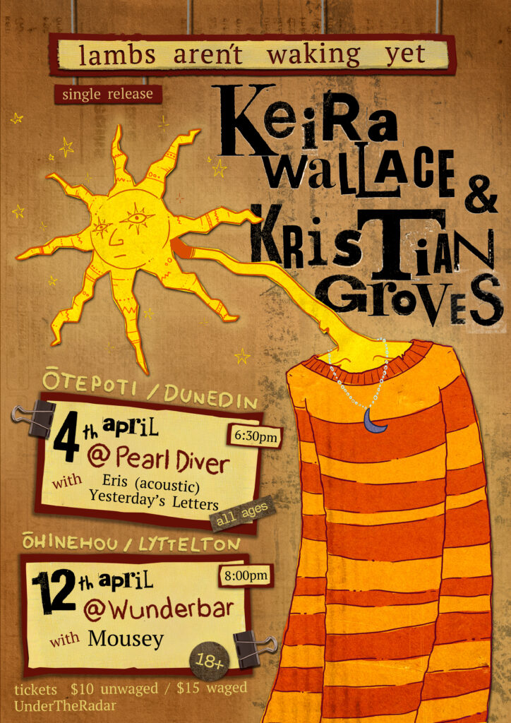 To celebrate the release, Keira Wallace will perform two special shows in Ōtepoti and Lyttelton. The first takes place on Friday April 4, at Pearl Diver, Dunedin. Alongside their solo performance, Keira will be joined by Kristian Groves for the launch of their new folk duo, Dolly Possum, with Yesterday’s Letters, and Eris (acoustic) on support duties. The second show follows on Saturday April 12, at Wunderbar, Lyttelton, where Keira will be joined by Kristian Groves and acclaimed Christchurch singer-songwriter Mousey. Tickets for both shows are available via Undertheradar.co.nz.