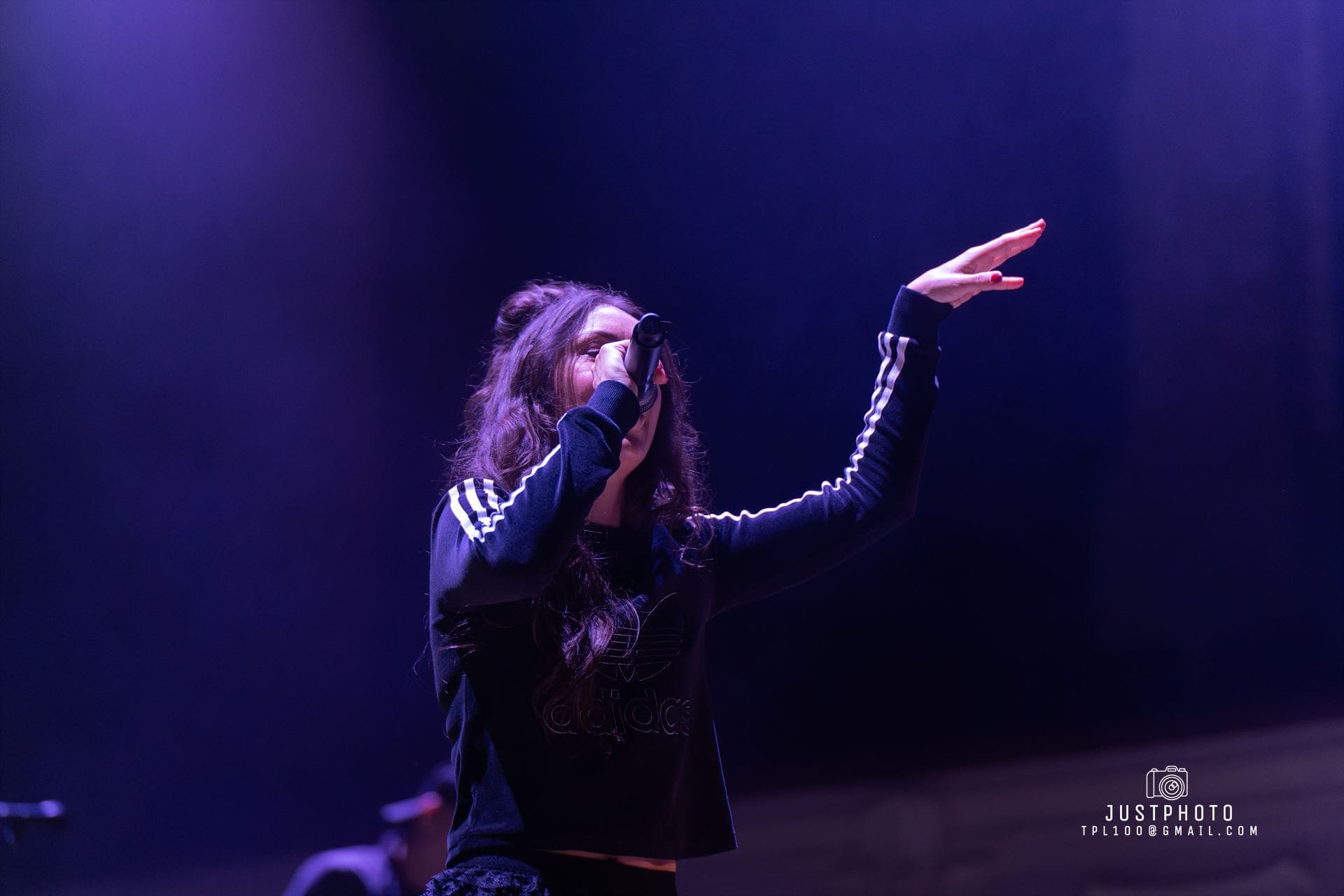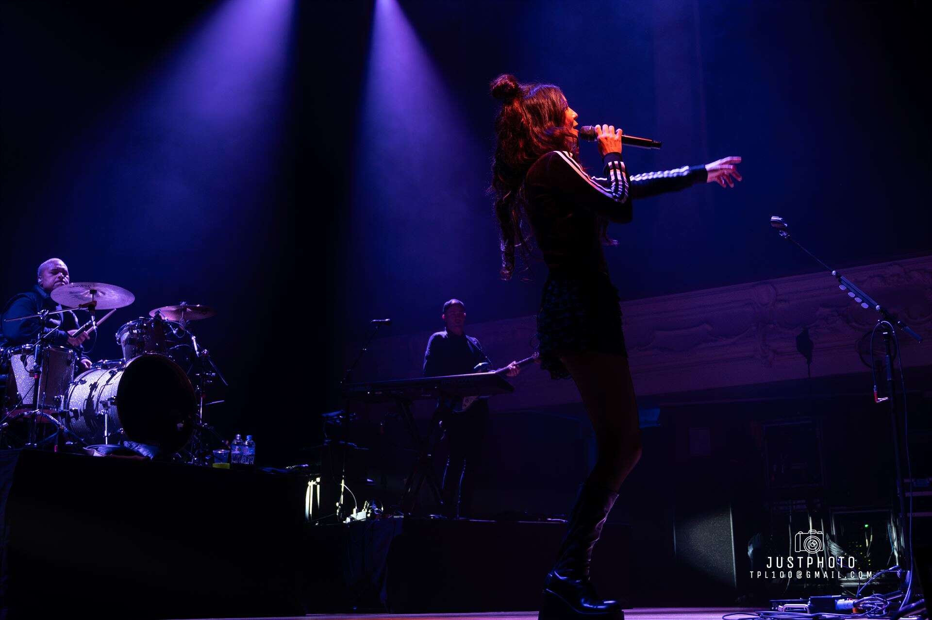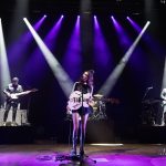 The three black-clad musicians behind her stayed mostly in the background, playing drums, bass, guitar and keys. And, yes, there were backing tracks filling out the sound throughout the show.