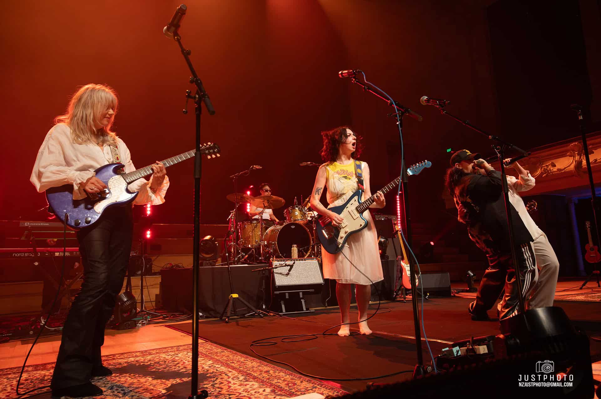 But in covering the best of female rock from the past 58 years (at my count), this ensemble ripped through a slick and varied repertoire, never losing momentum, energy or enthusiasm. They seemed to be having a genuinely good time, interacting with a pretty euphoric female-dominated audience, who didn’t need a whole lot of encouragement to respond to the invitation “If you wanna dance, come and dance.” The main hall was ostensibly seated, but the chairs were pretty much pointless – everyone was standing and dancing., with a crowd nearing the venue’s 1500 capacity. They were lapping it up, sharing the performers’ frequent declarations of their love for the songs and artistes they were covering: “We really love The Pretenders” (before Tattooed Love Boys), “We love Shona Laing (before (Glad I’m) Not A Kennedy) and “We fucking love you!” to the audience. There was a whole lotta love happening.