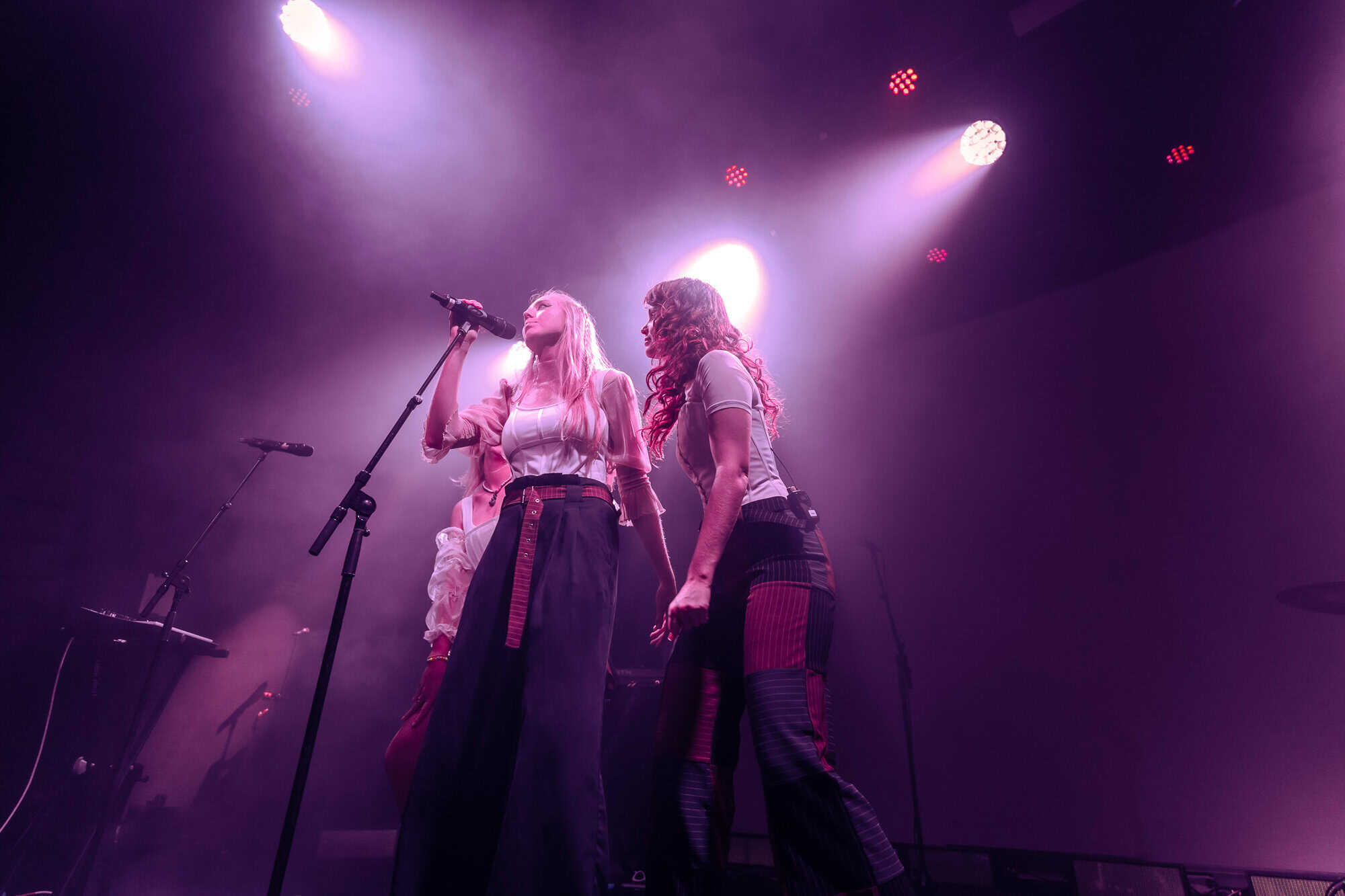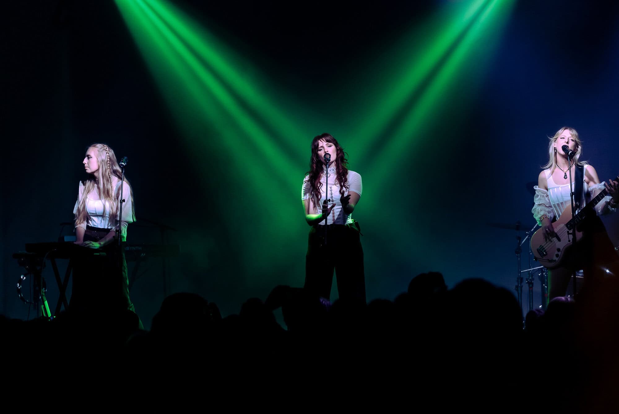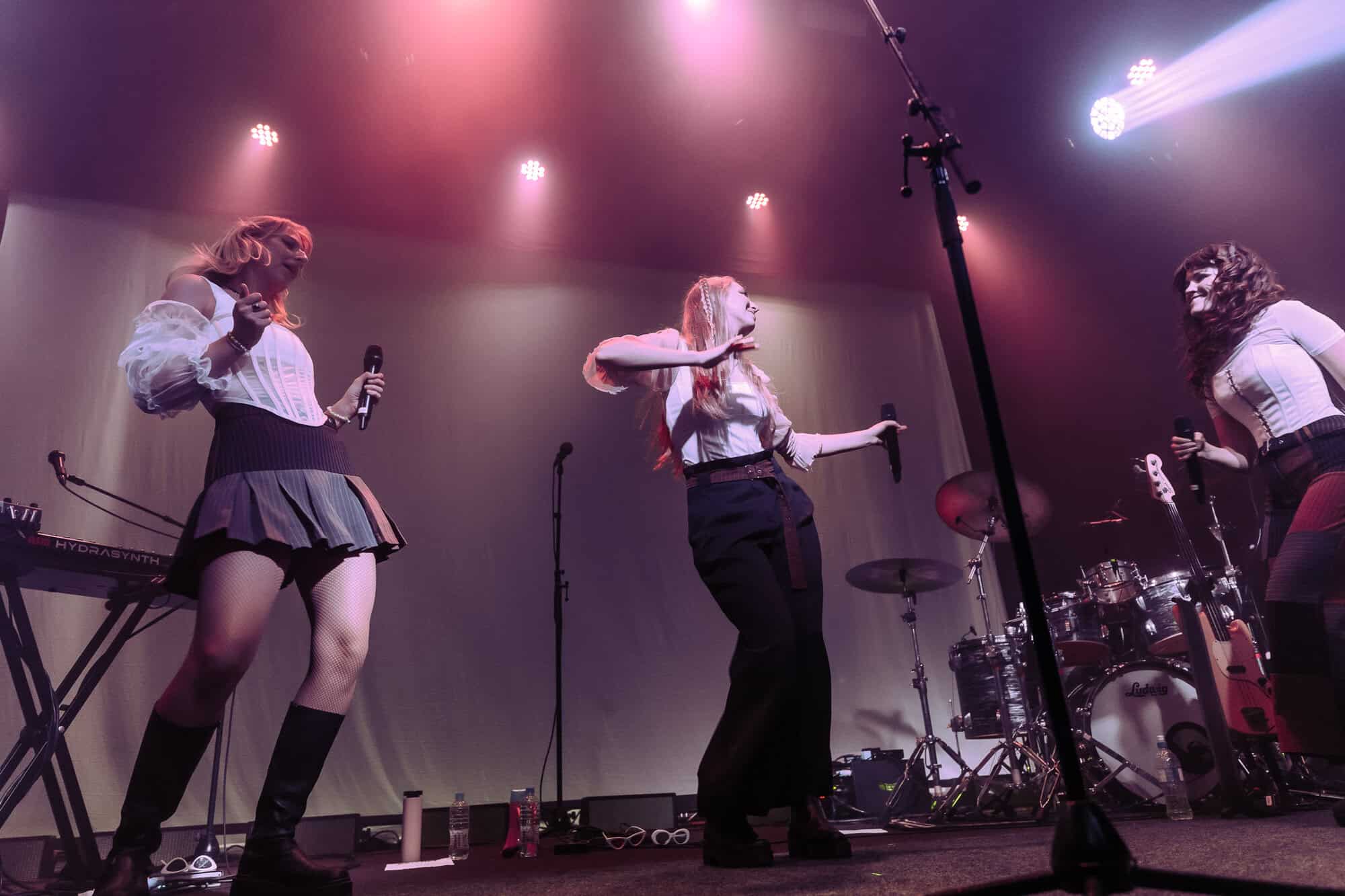 How would you describe their style, I ask a young woman near me  ‘Girlpop’ was the instant reply. Haim-like, perhaps, but something else with impressive dance moves and comedic affectation. Fast beats, electric synths, theatrical gestures (hip-shakes, arms in the air, fingers run through hair).