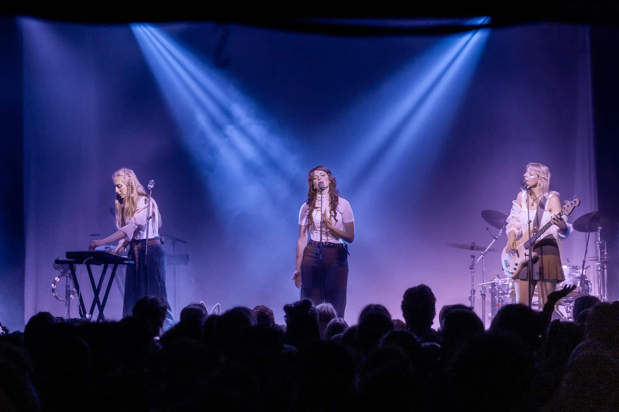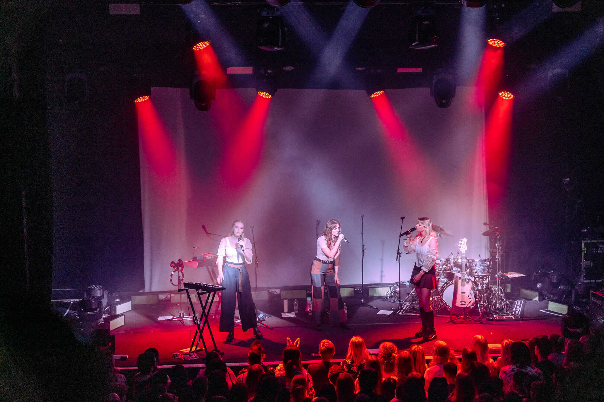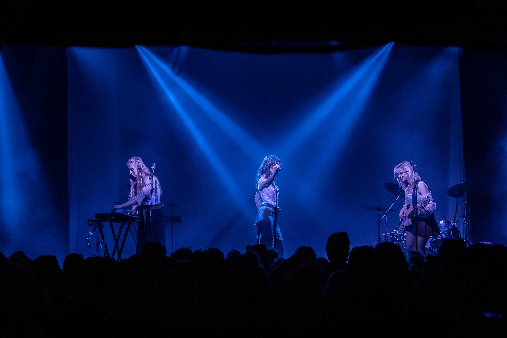 How would you describe their style, I ask a young woman near me  ‘Girlpop’ was the instant reply. Haim-like, perhaps, but something else with impressive dance moves and comedic affectation. Fast beats, electric synths, theatrical gestures (hip-shakes, arms in the air, fingers run through hair).