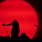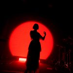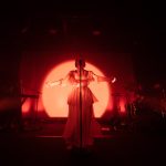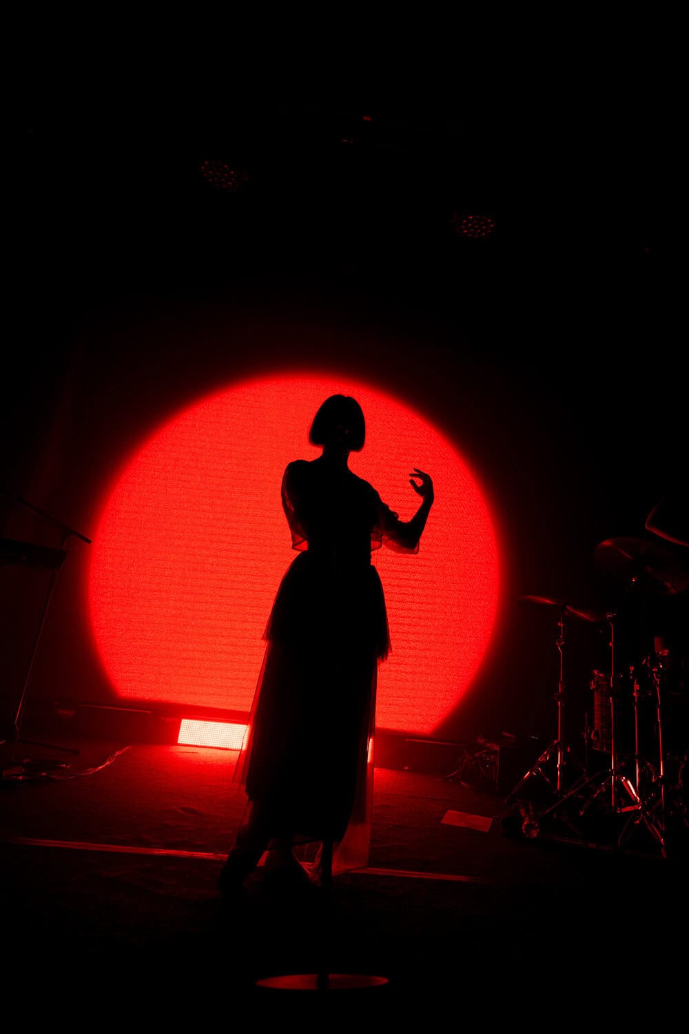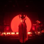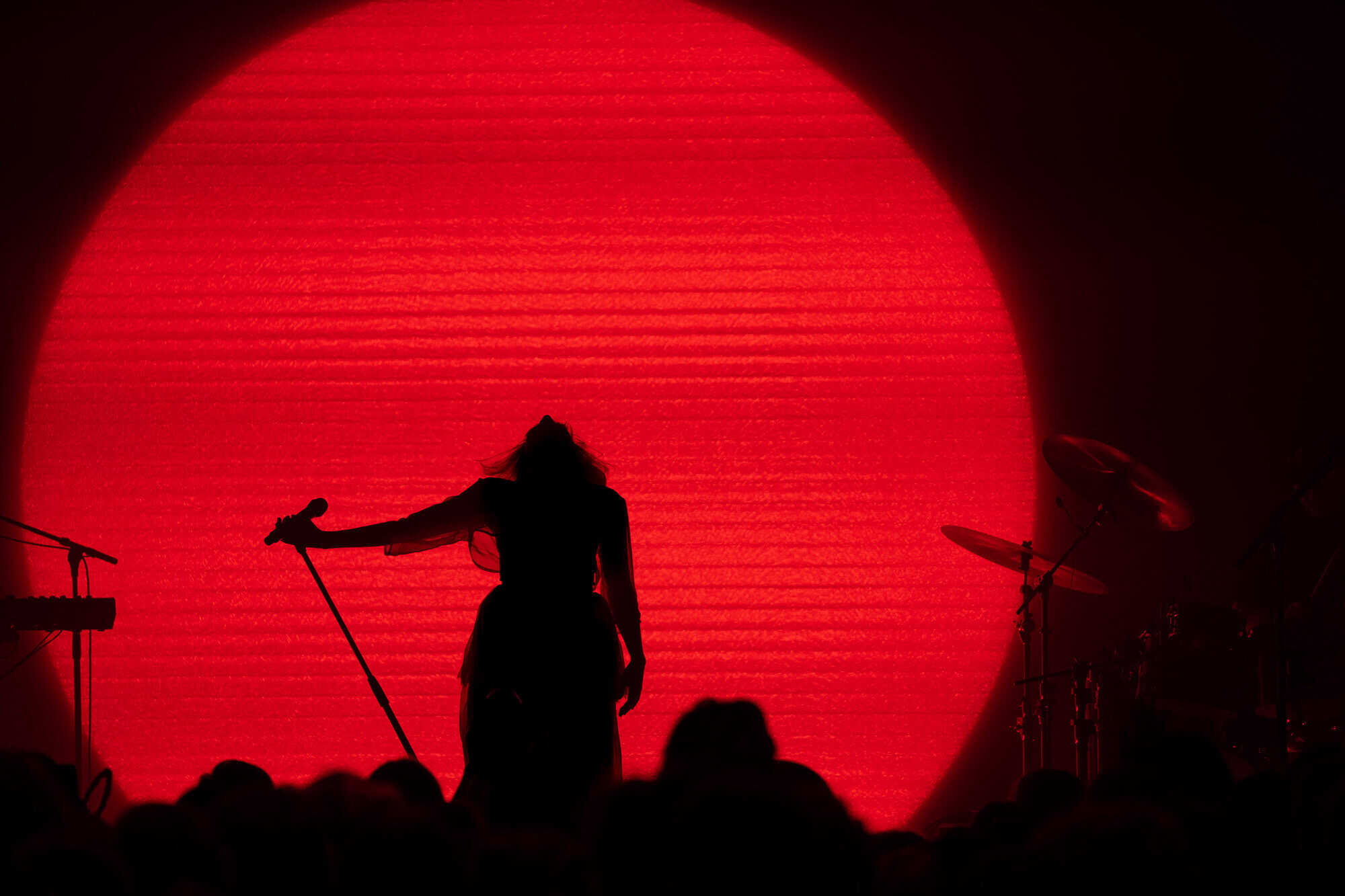 Aurora Aurora (full name Aurora Aksnes) from Stavenger, Norway) occupies a large disc of projected light, at first as silhouette. She’s touring The Gods We Can Touch, her third studio album. Her mix of mannered and spontaneous stage presence is on display from the outset.