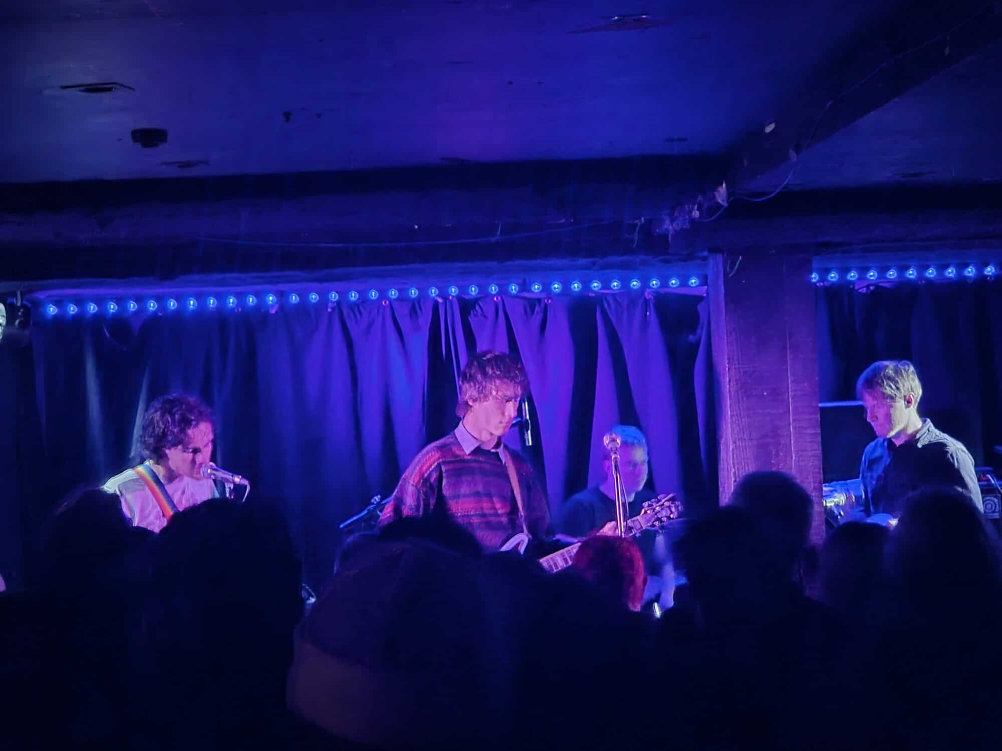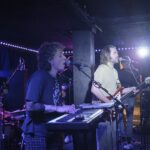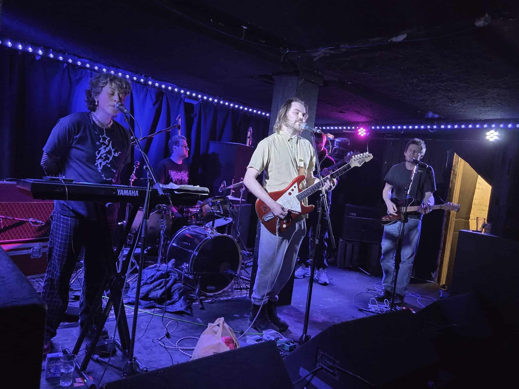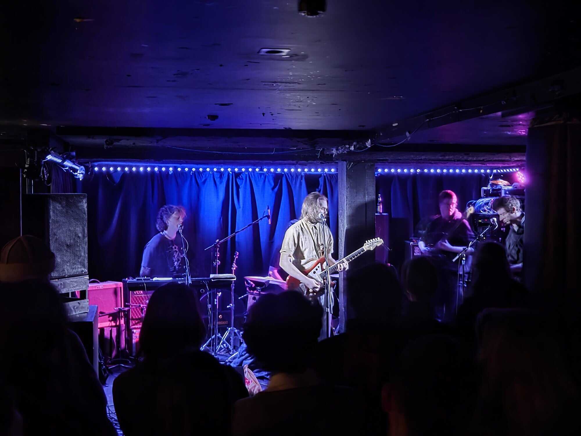 Awning are punctual! On the dot, 10pm, as a six-piece, an extra guitar, and percussionist, Christian Dimick is situated stage right, almost hiding in the penumbra, and expectedly, or unexpectedly Awning proceeded to play the debut album start to finish.