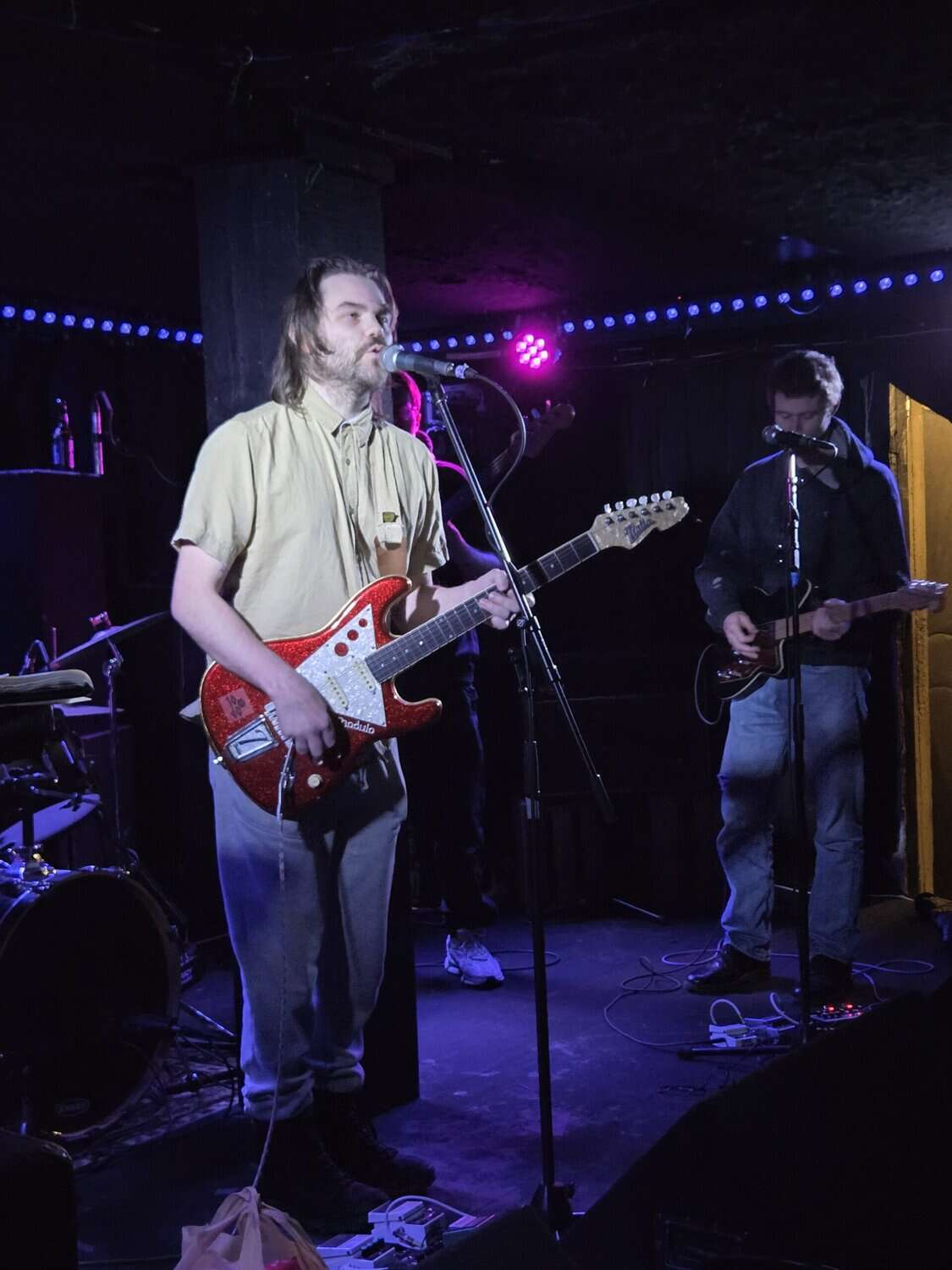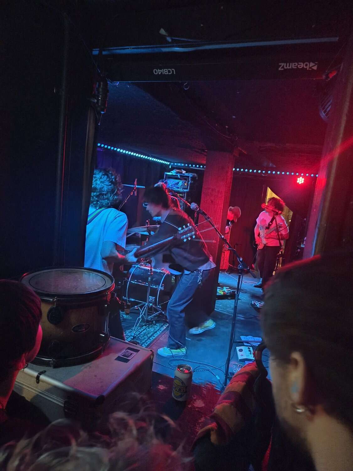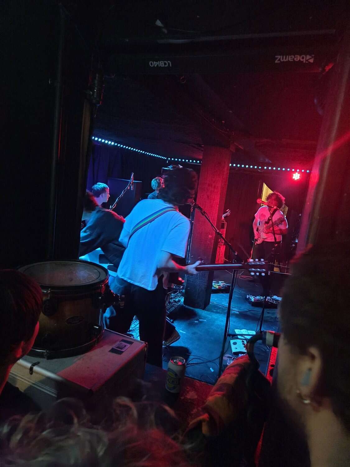 Tonight’s unknown quantity…existing in a form since 2016, with a kete of Bandcamp releases and a new album – Categorical, released just a few months ago, For The Girl Who Has Everything are no new kids on the block (nor NSYNC) even though they emerged post-covid with a revised lineup, and recently did a 95bFM Fancy New Band session. Liam Pram – band leader, guitarist and vocals, was joined onstage by four: Keyboards, drums, bass and lead guitar.