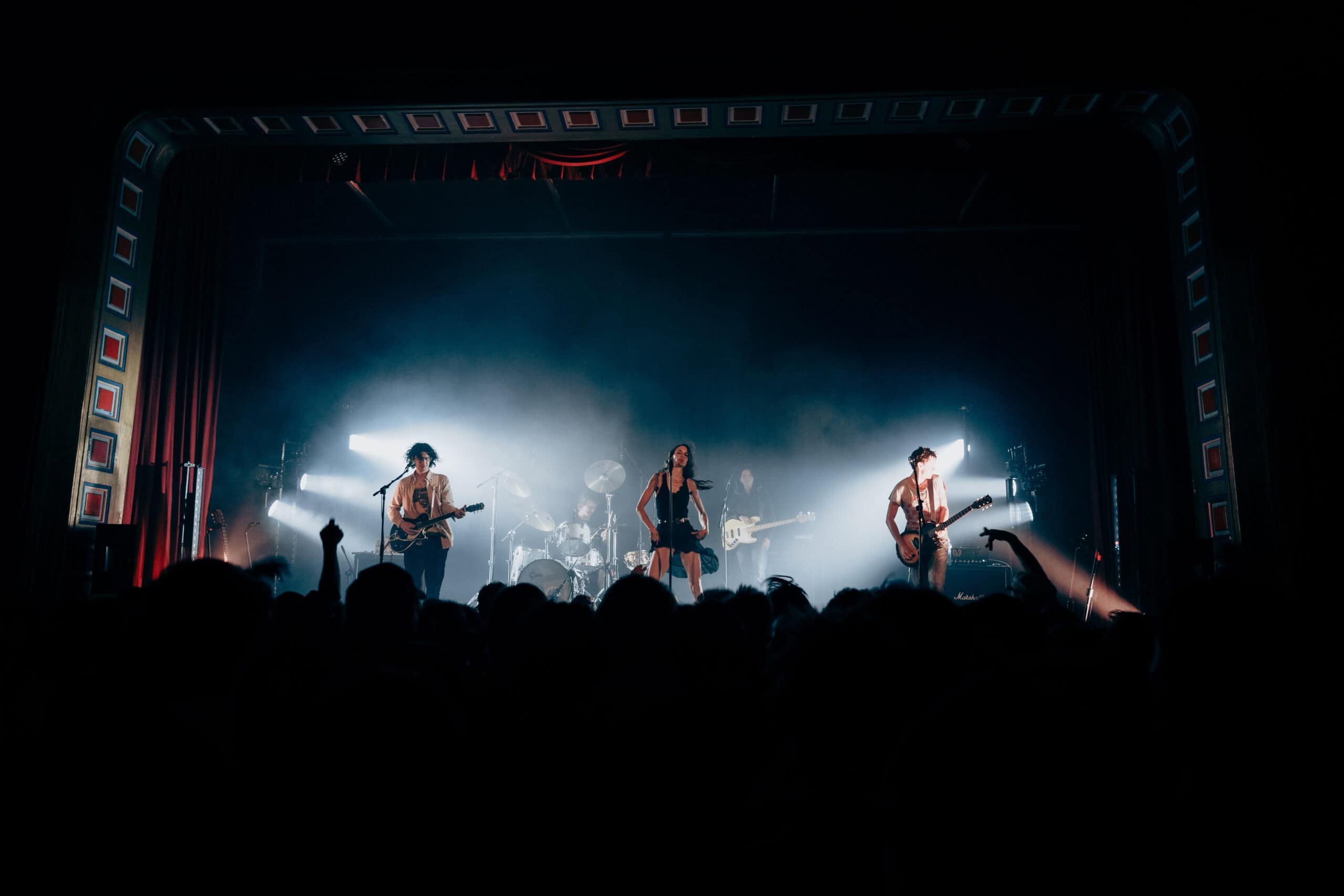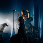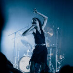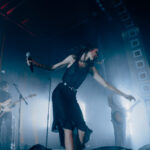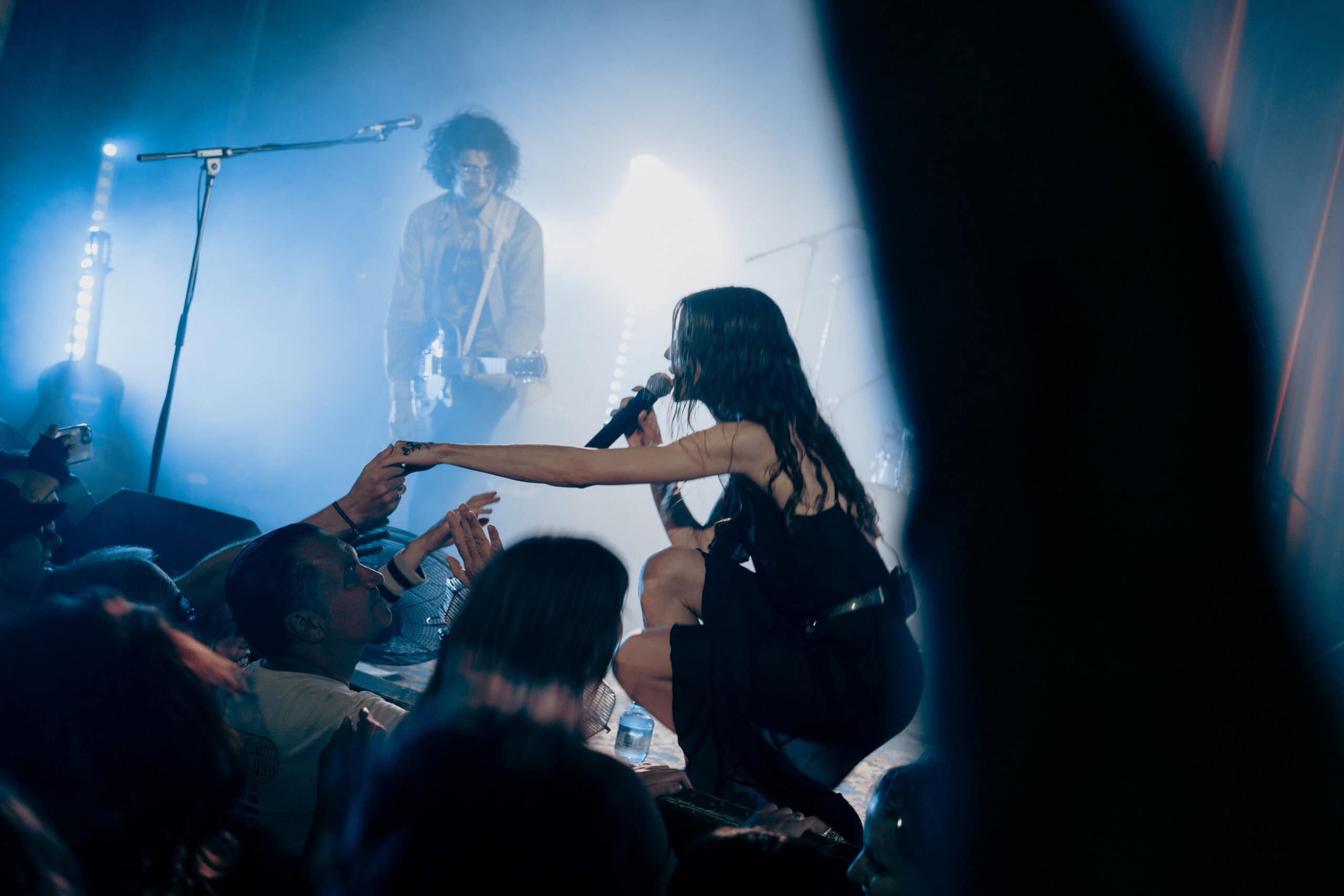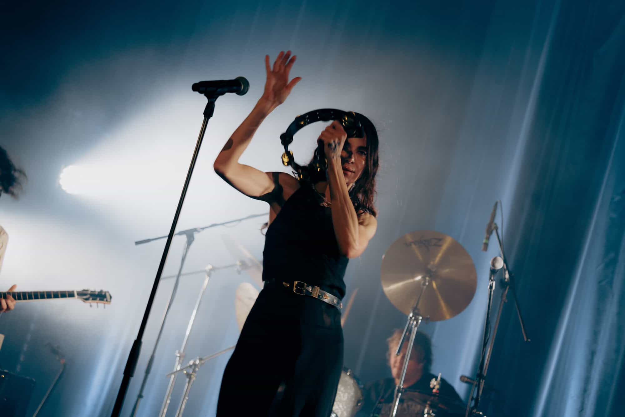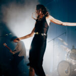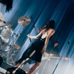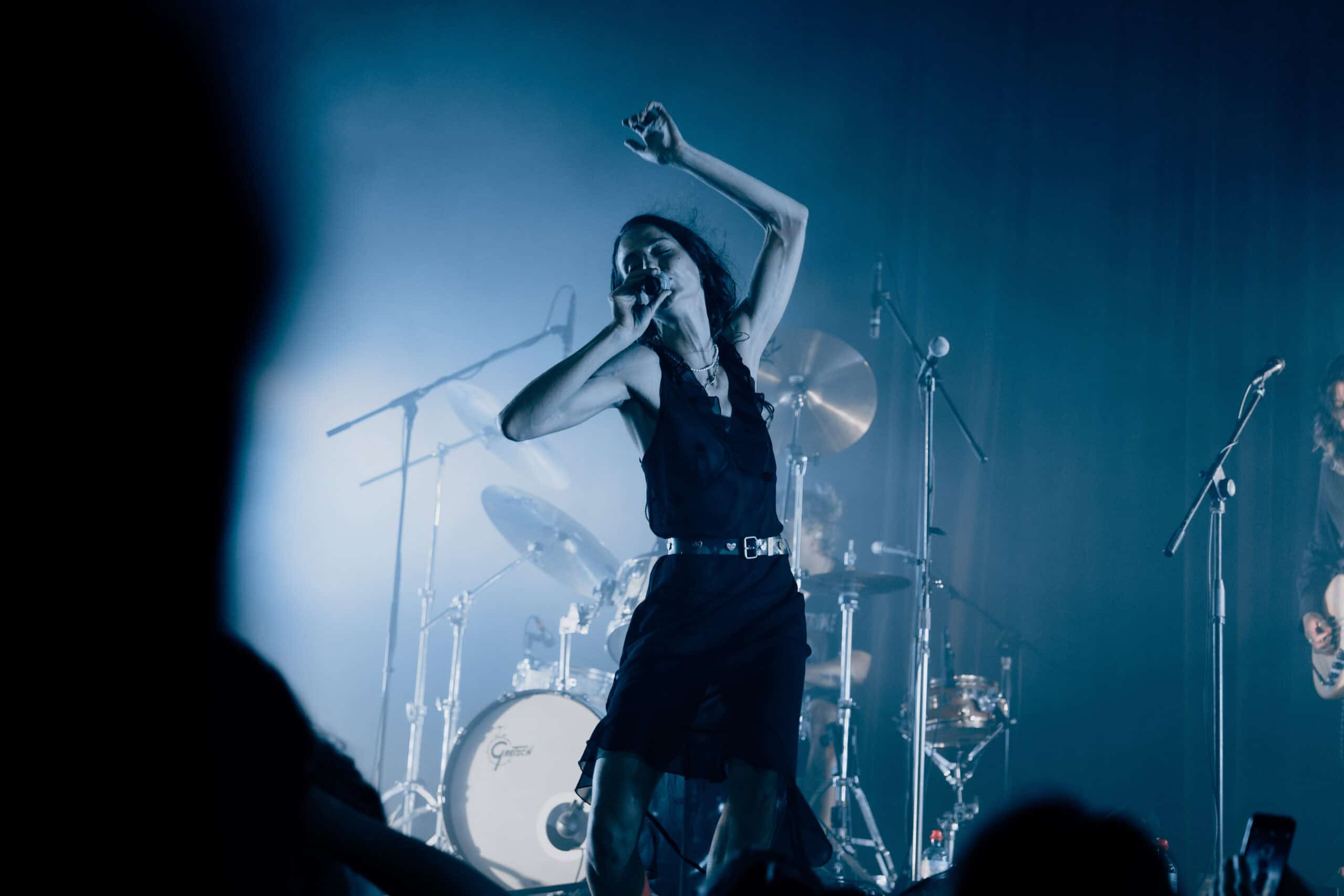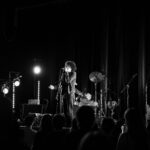 I was at their July 2024 show at Neck of the Woods, and I wasn’t sated. A five-piece again tonight (different bassist?), they’ve got a lot more room onstage this time, The Hollywood is a definite step up. Nina Cristante is wearing vintage Karangahape Road, shall I say a black 70’s style cocktail party dress, that flows and shimmers, it’s a contrast to their down-played image in 2024, tonight’s show is already feeling like a concert experience, rather than a club date.