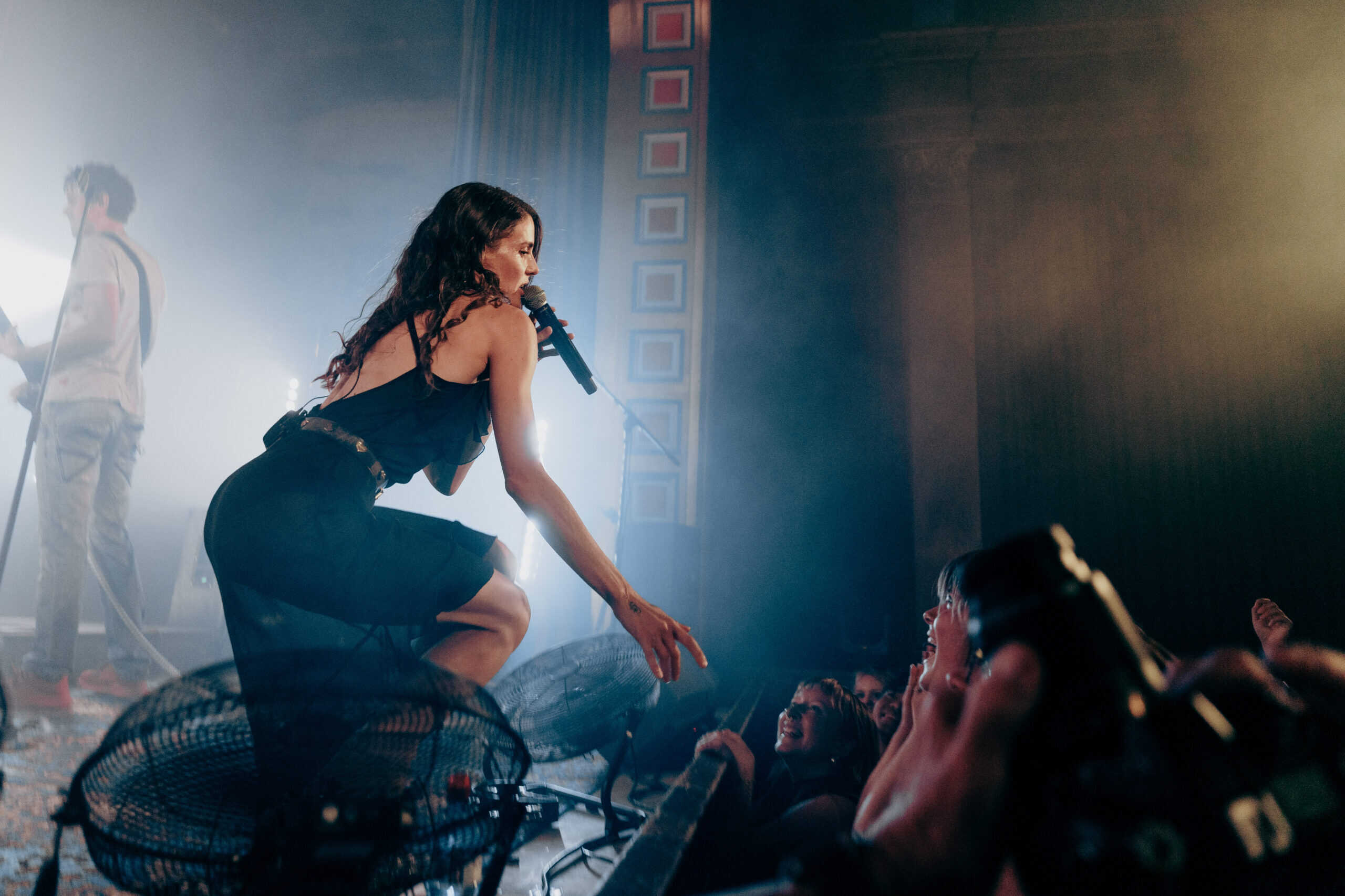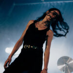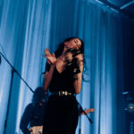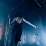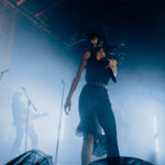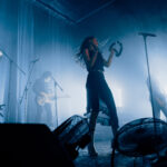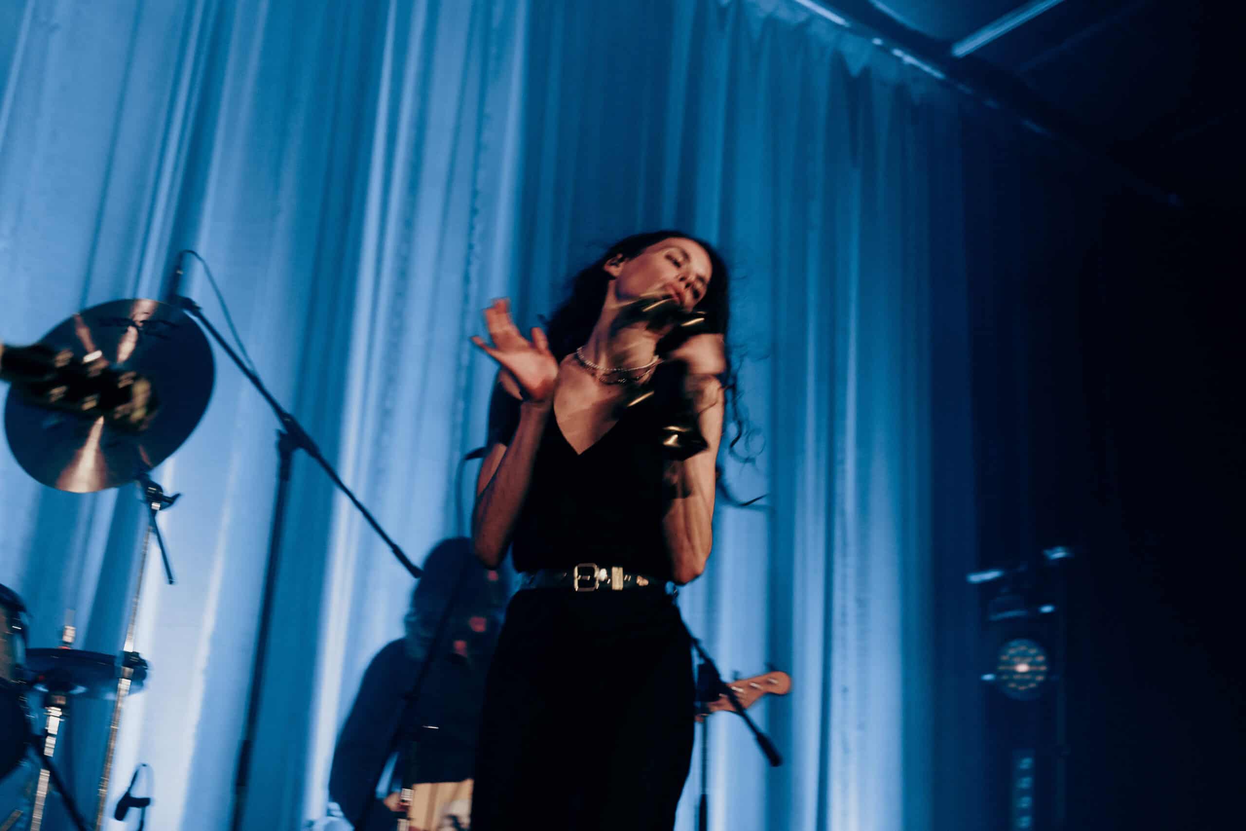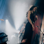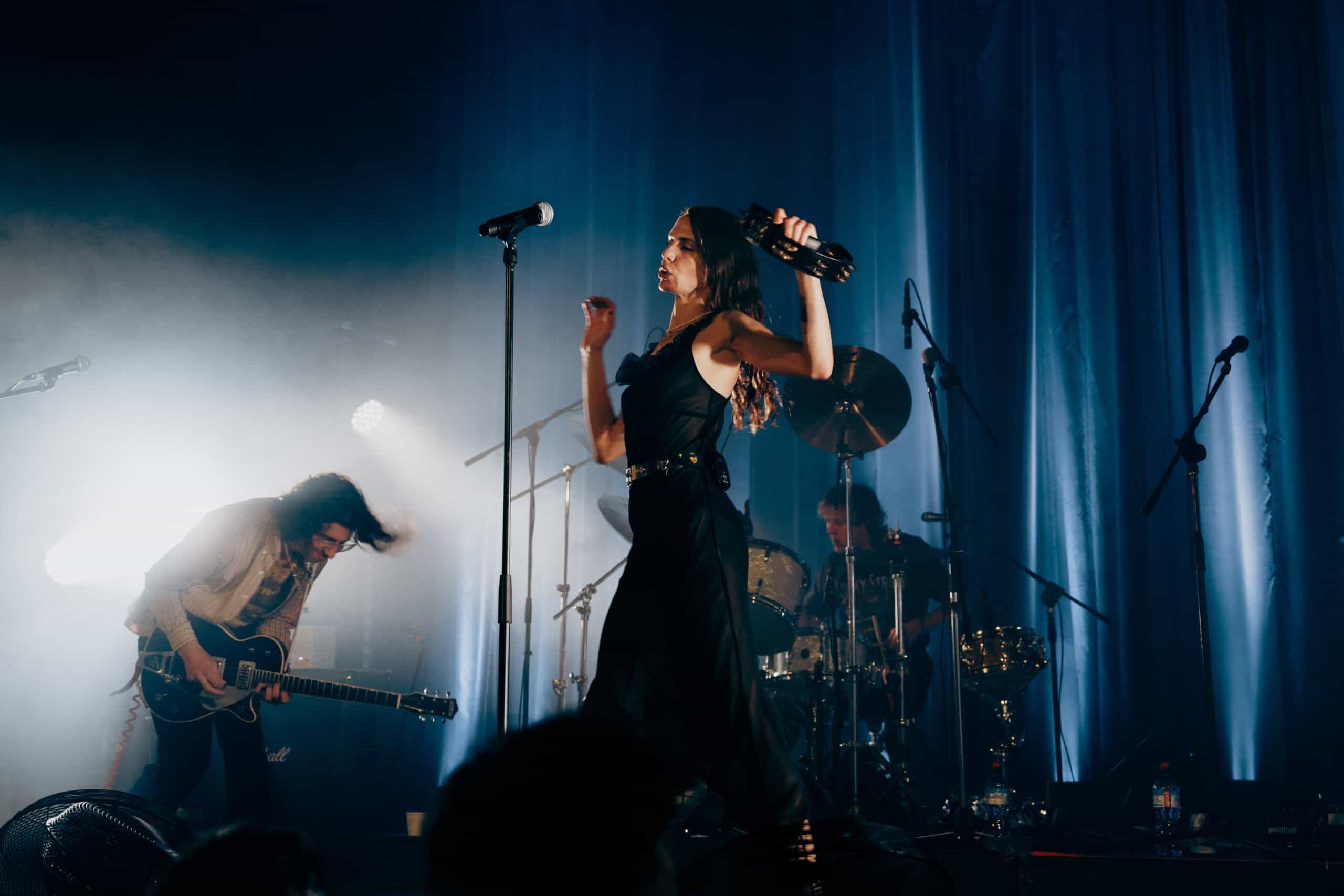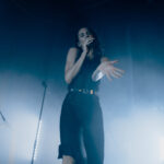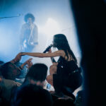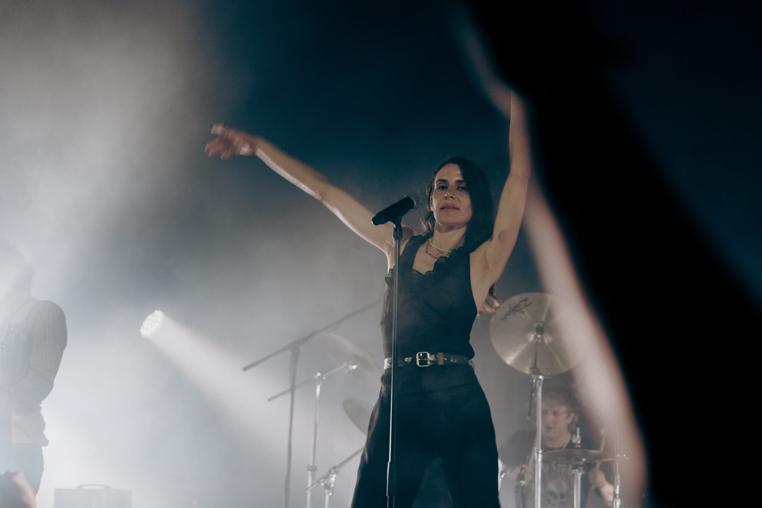 I was at their July 2024 show at Neck of the Woods, and I wasn’t sated. A five-piece again tonight (different bassist?), they’ve got a lot more room onstage this time, The Hollywood is a definite step up. Nina Cristante is wearing vintage Karangahape Road, shall I say a black 70’s style cocktail party dress, that flows and shimmers, it’s a contrast to their down-played image in 2024, tonight’s show is already feeling like a concert experience, rather than a club date.