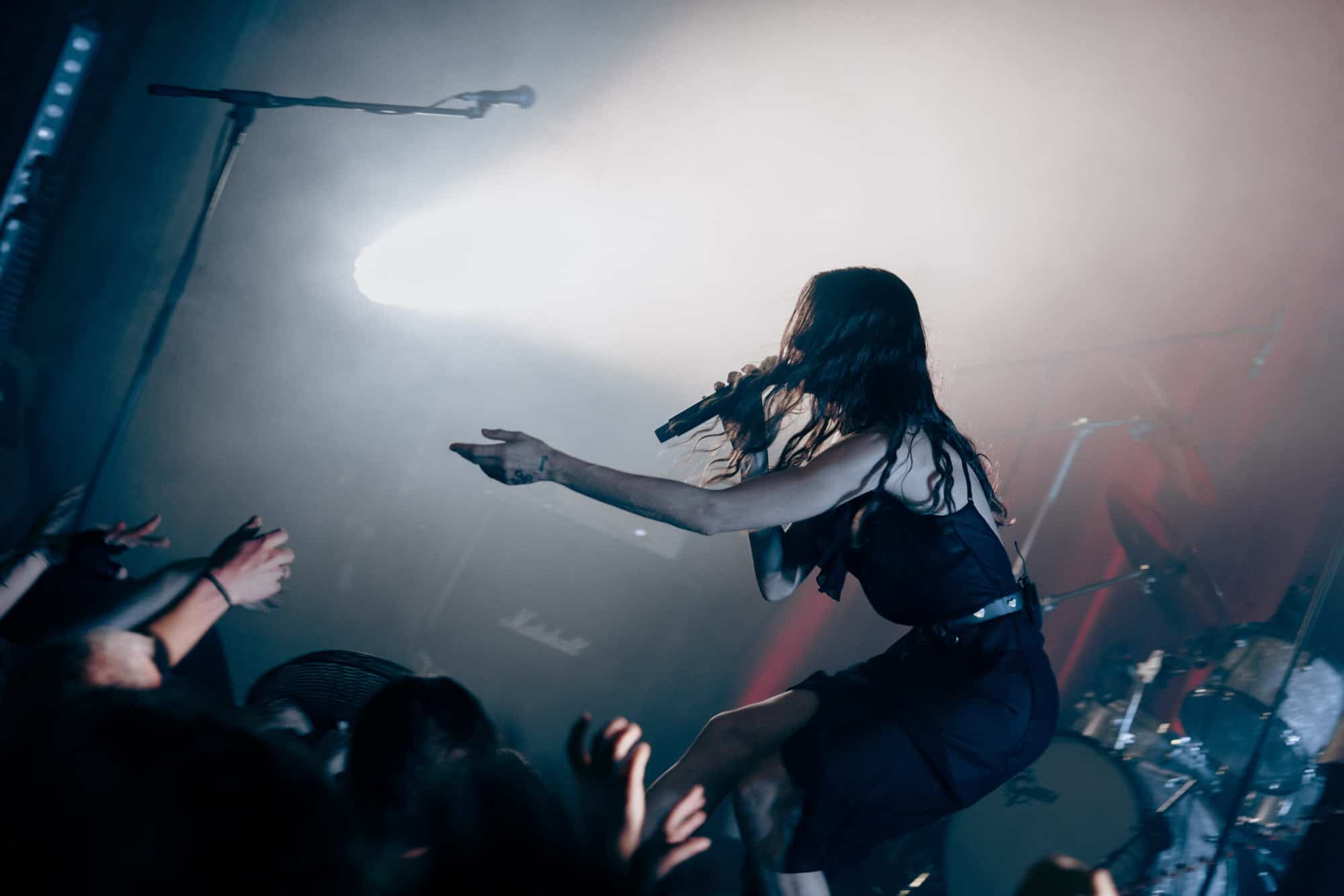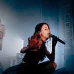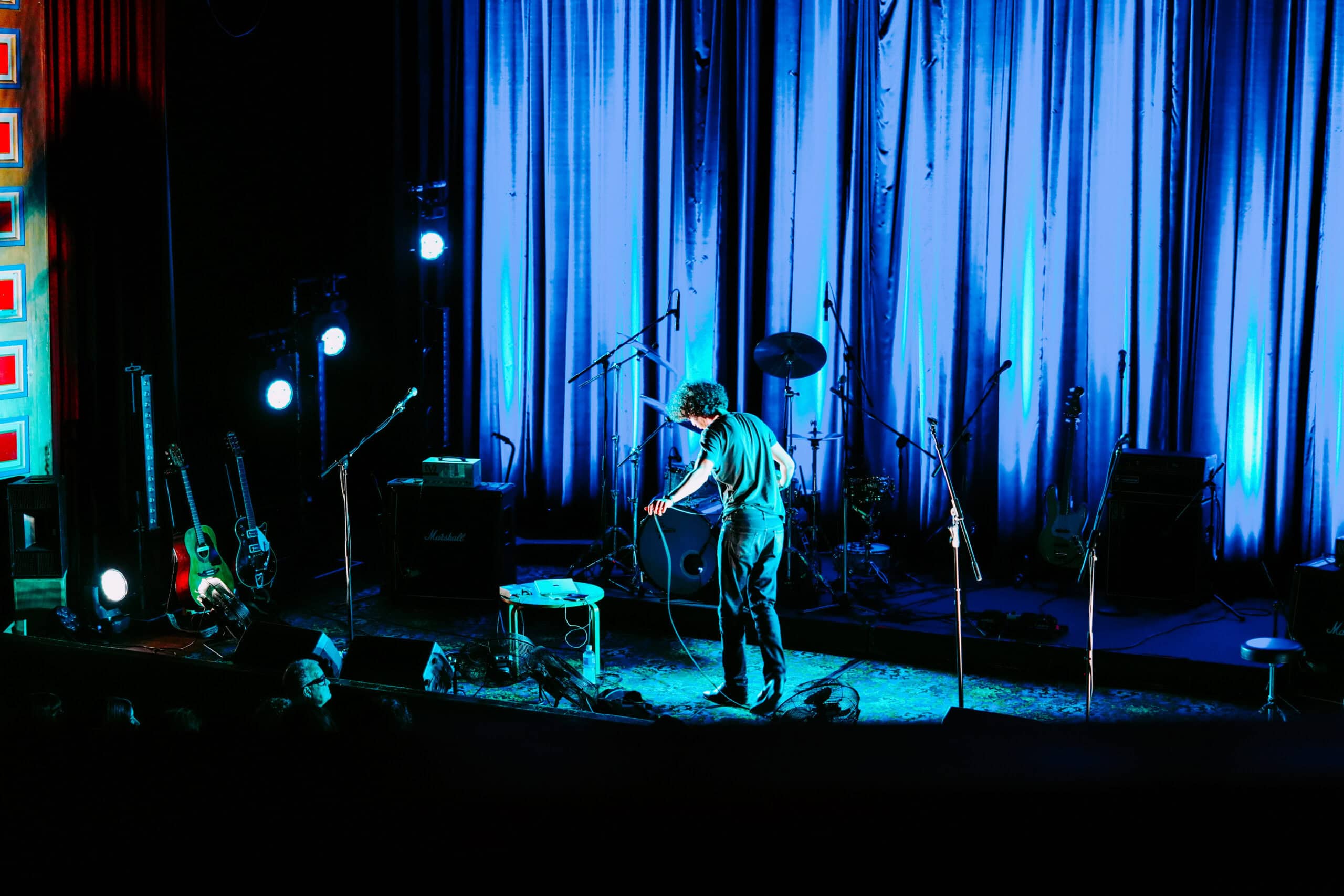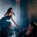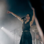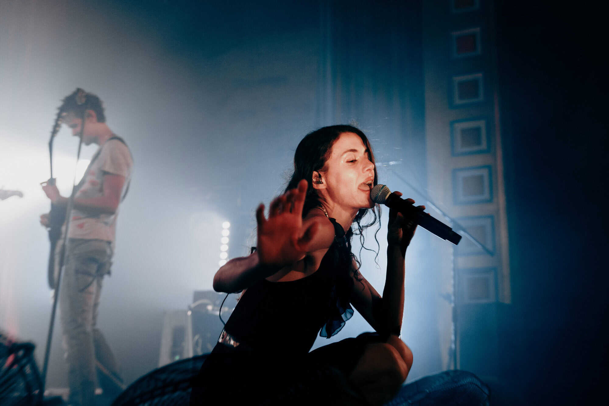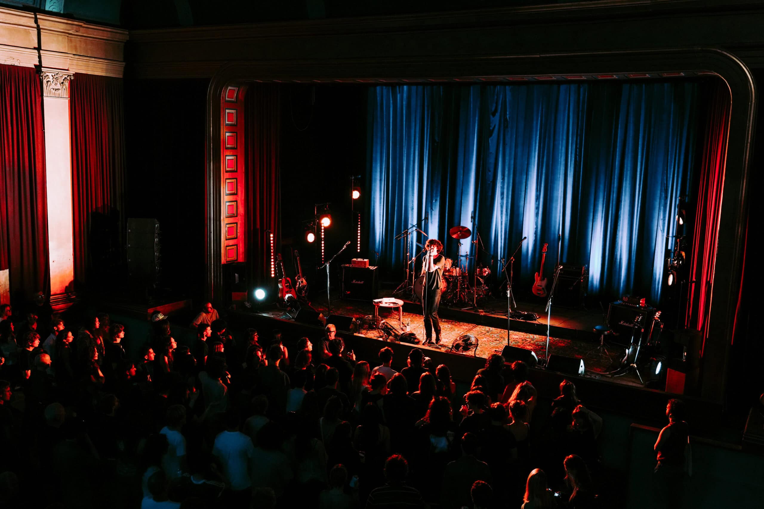 I was at their July 2024 show at Neck of the Woods, and I wasn’t sated. A five-piece again tonight (different bassist?), they’ve got a lot more room onstage this time, The Hollywood is a definite step up. Nina Cristante is wearing vintage Karangahape Road, shall I say a black 70’s style cocktail party dress, that flows and shimmers, it’s a contrast to their down-played image in 2024, tonight’s show is already feeling like a concert experience, rather than a club date.