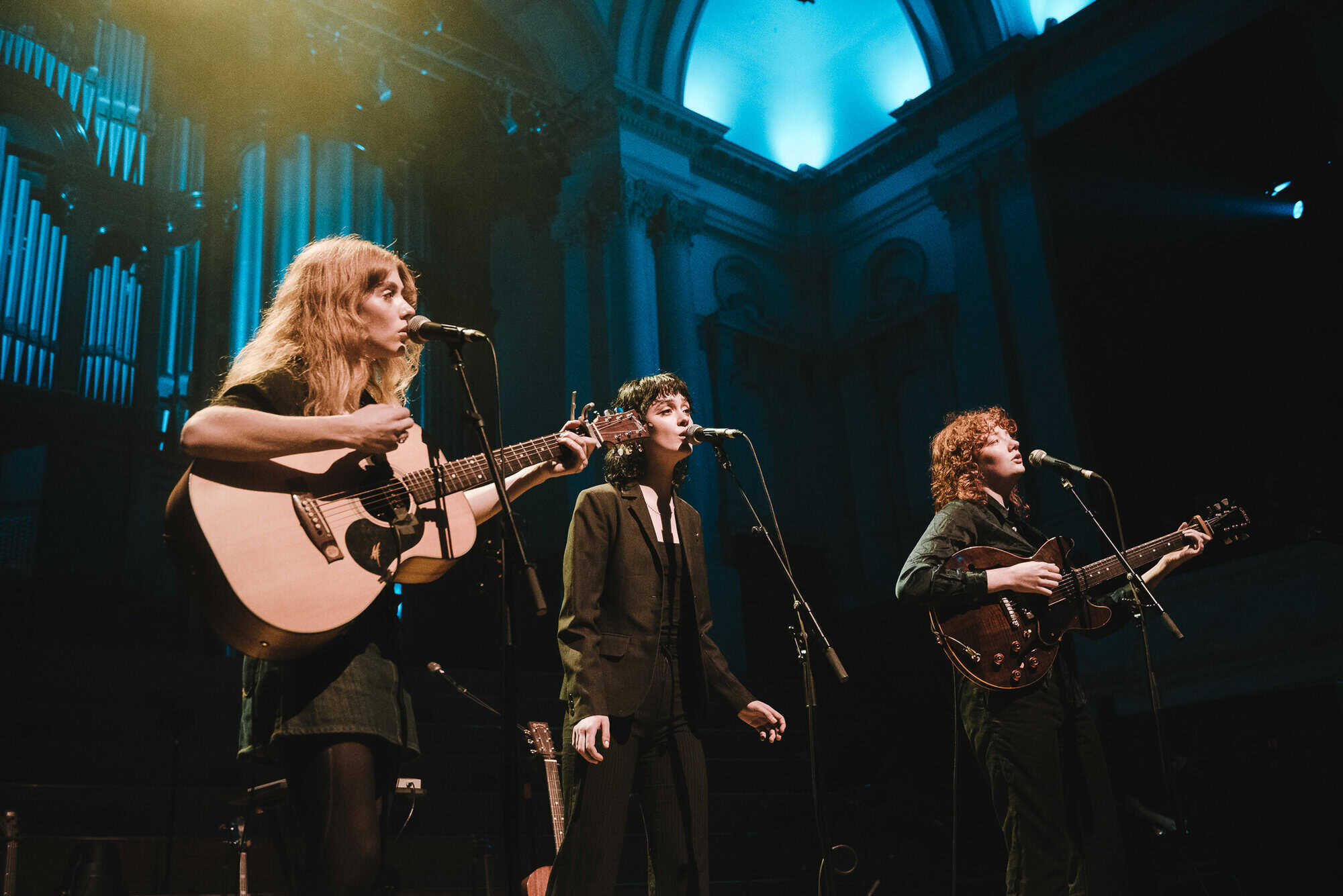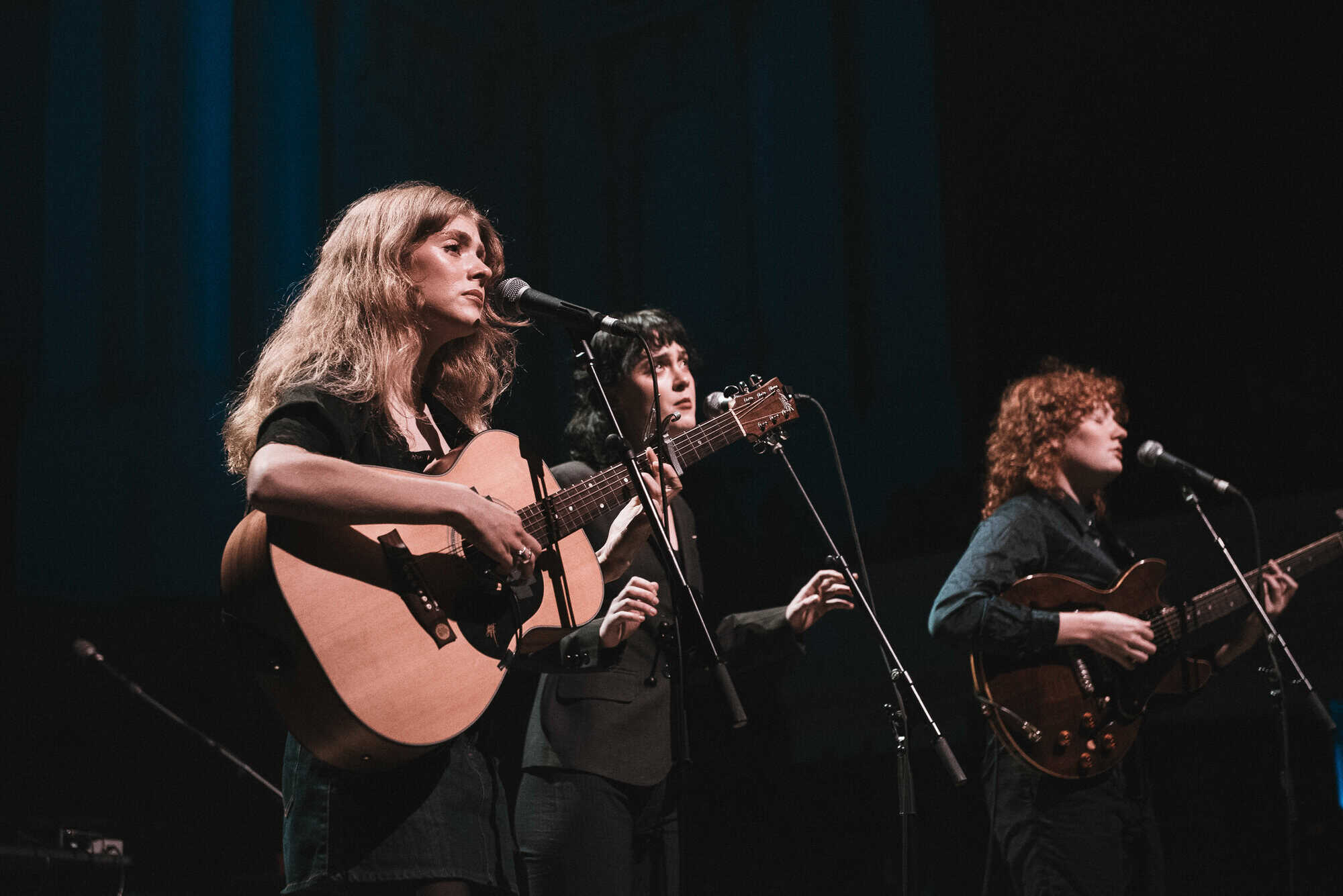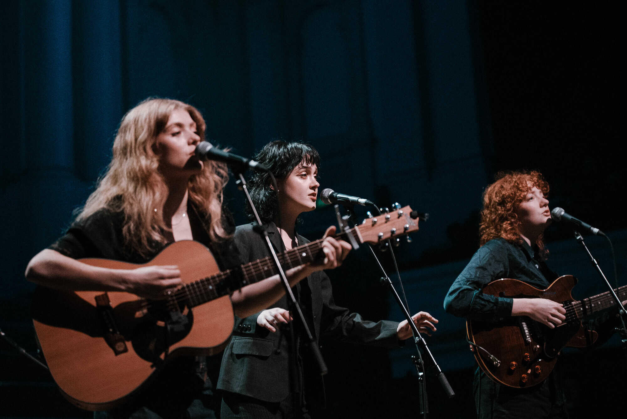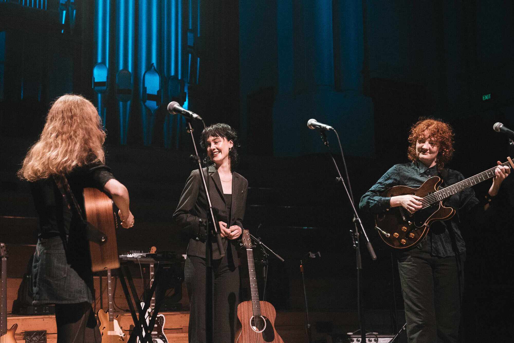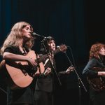 It was good to see the Town Hall filling up early with almost a full house ready to take in the three women who call themselves Folk Bitch Trio. They are Heide Peverelle, Jeanie Pilkington and Gracie Sinclair…one blonde, one brunette, one red head….kind of like the Mod Squad.