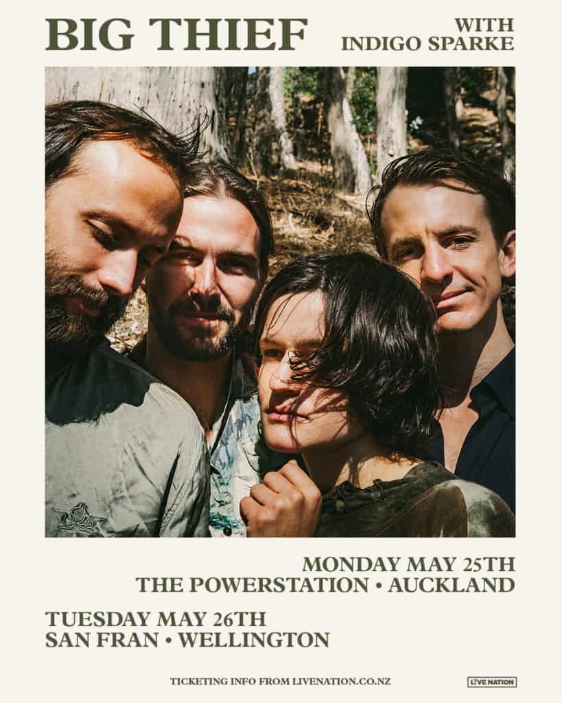Catch Big Thief live in Auckland (May 25 – Powerstation) and Wellington (26 May – San Fran) as they celebrate the release of U.F.O.F. and Two Hands, both albums are out now on 4AD. The band will be supported by folk pop singer-songwriter INDIGO SPARKE on both dates.