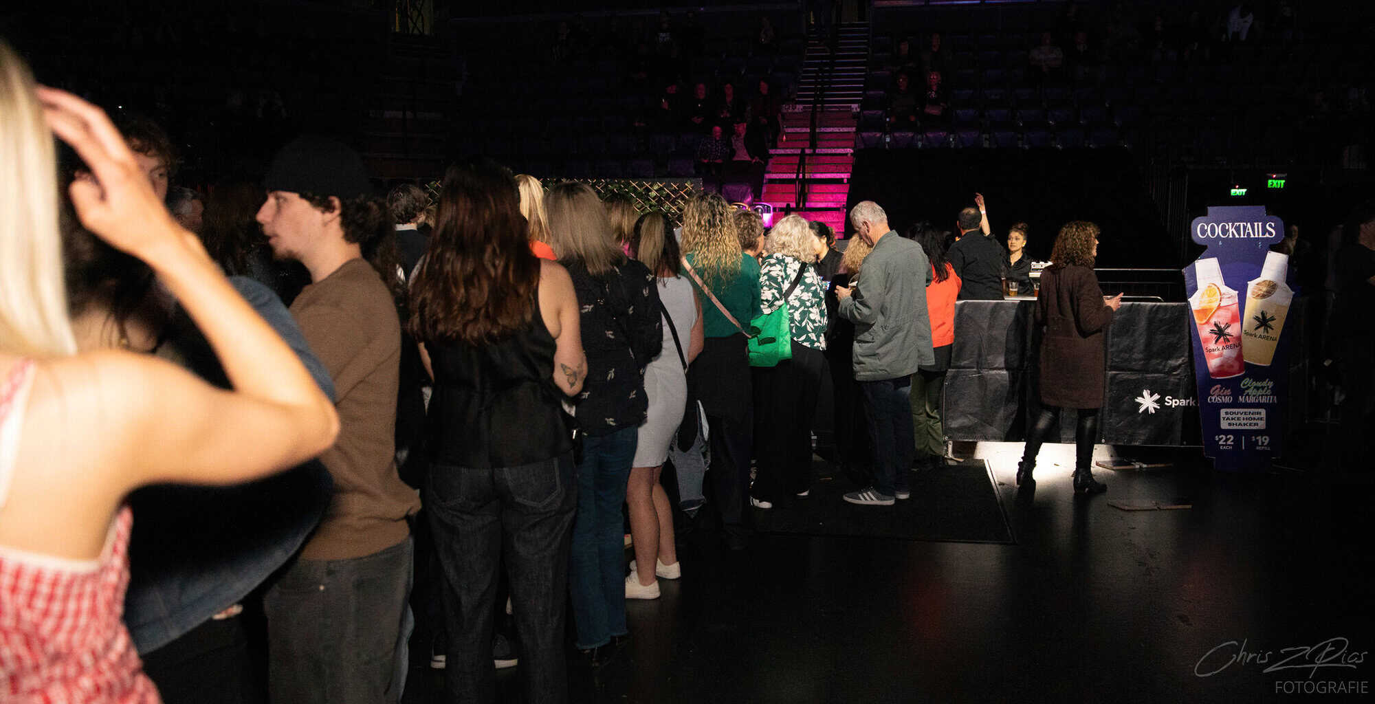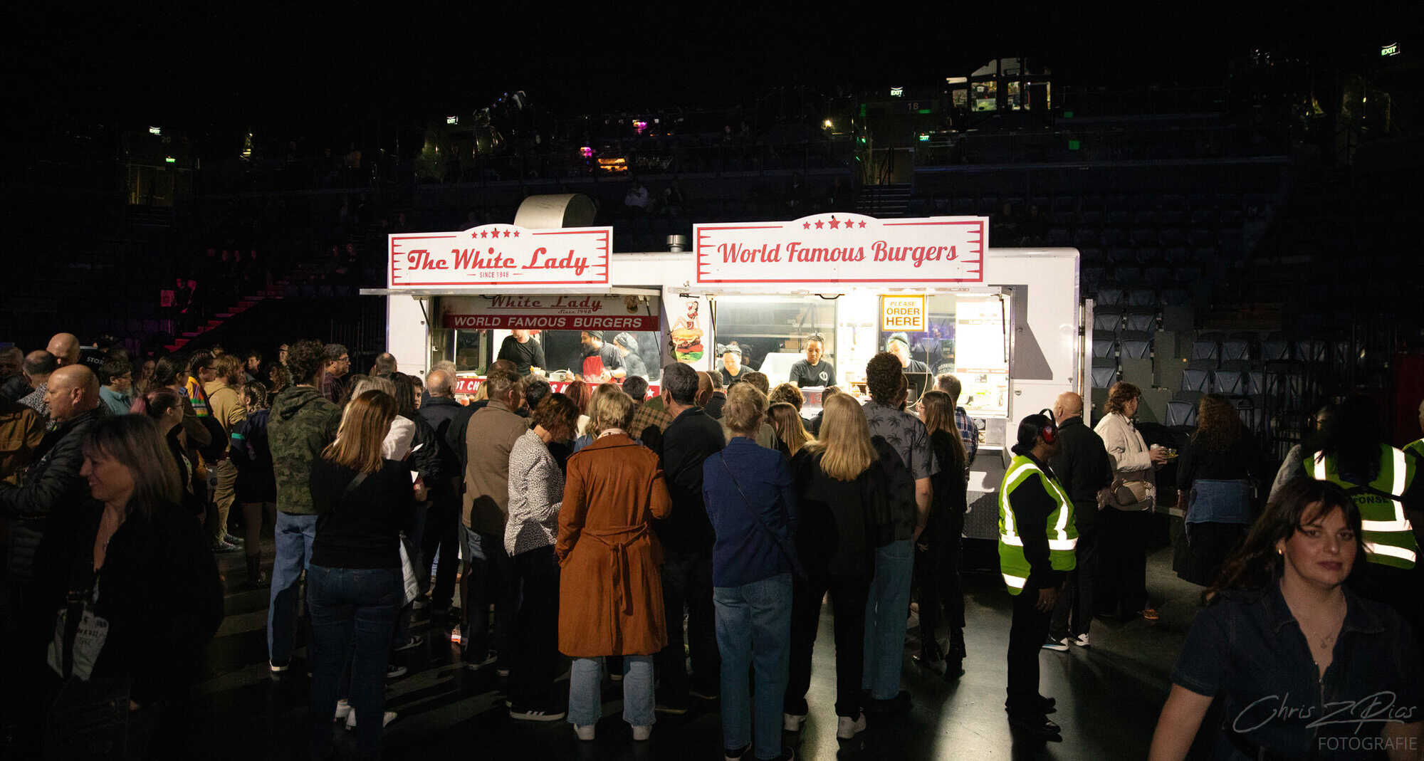 When the doors opened at 5:30pm, fans found the Spark Arena decked out with the good folks from The White Lady slinging burgers and fries, while beer was on tap and The Sound DJs cranked out hits by ZZ Top and Midnight Oil.