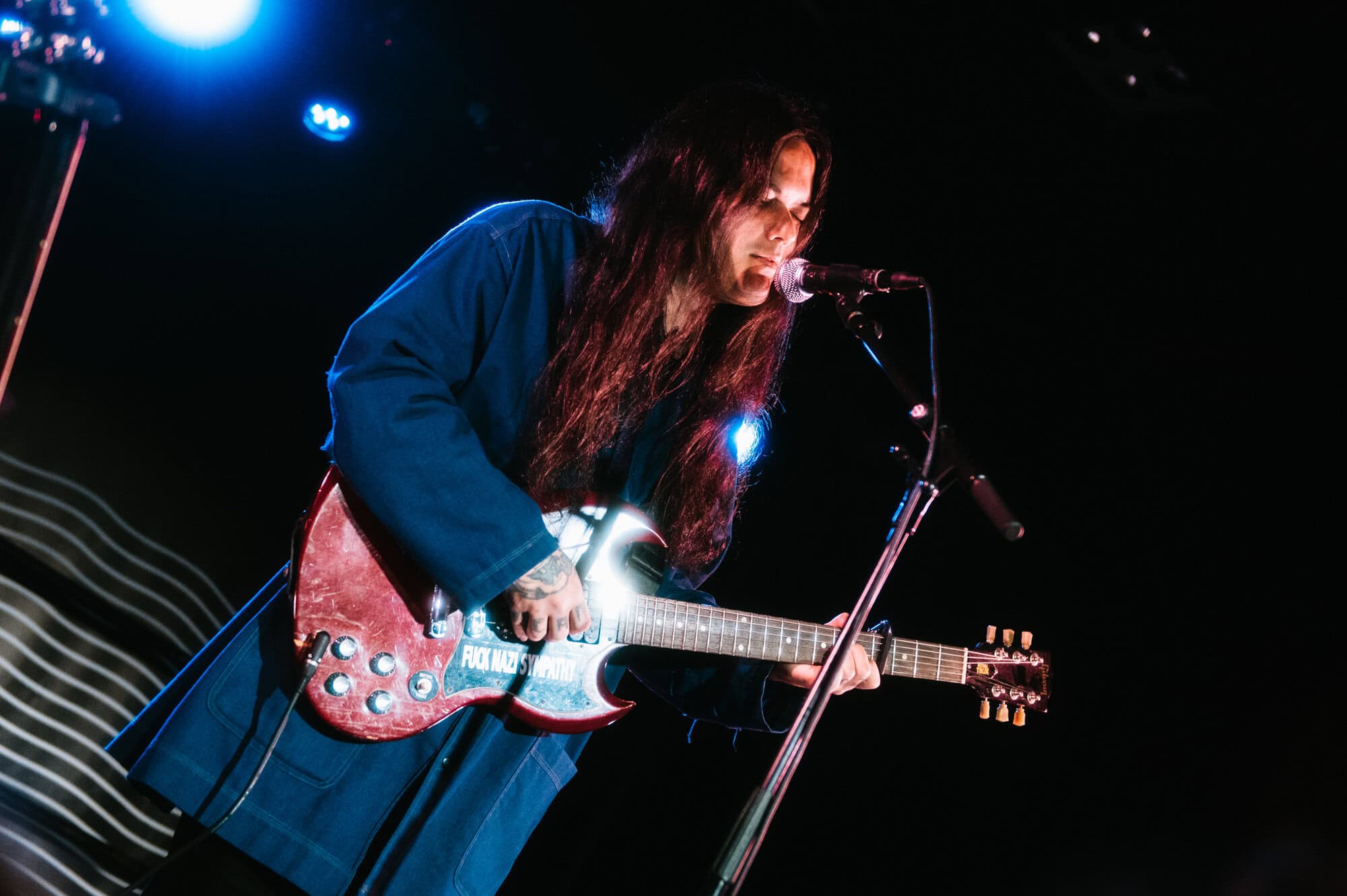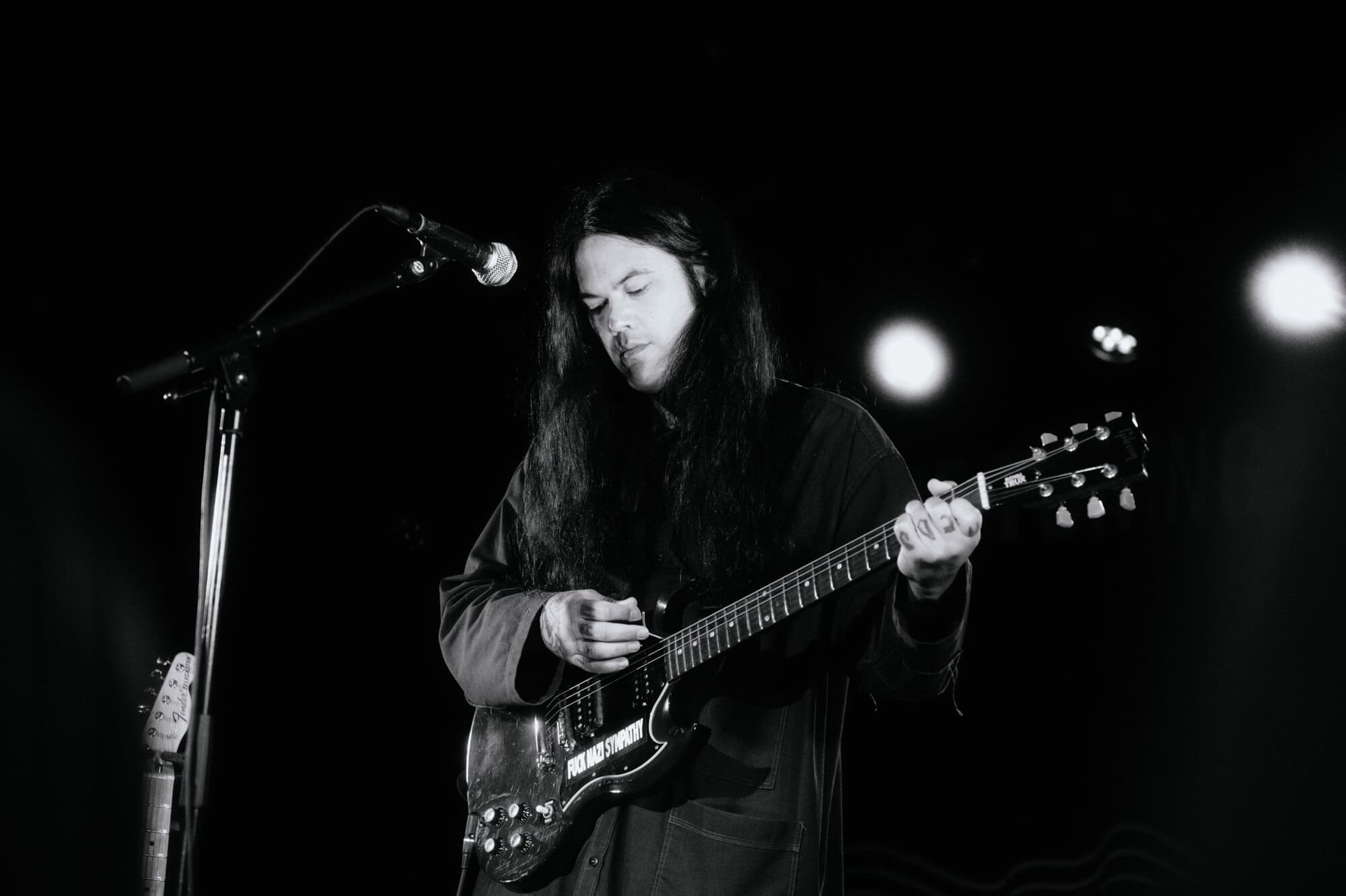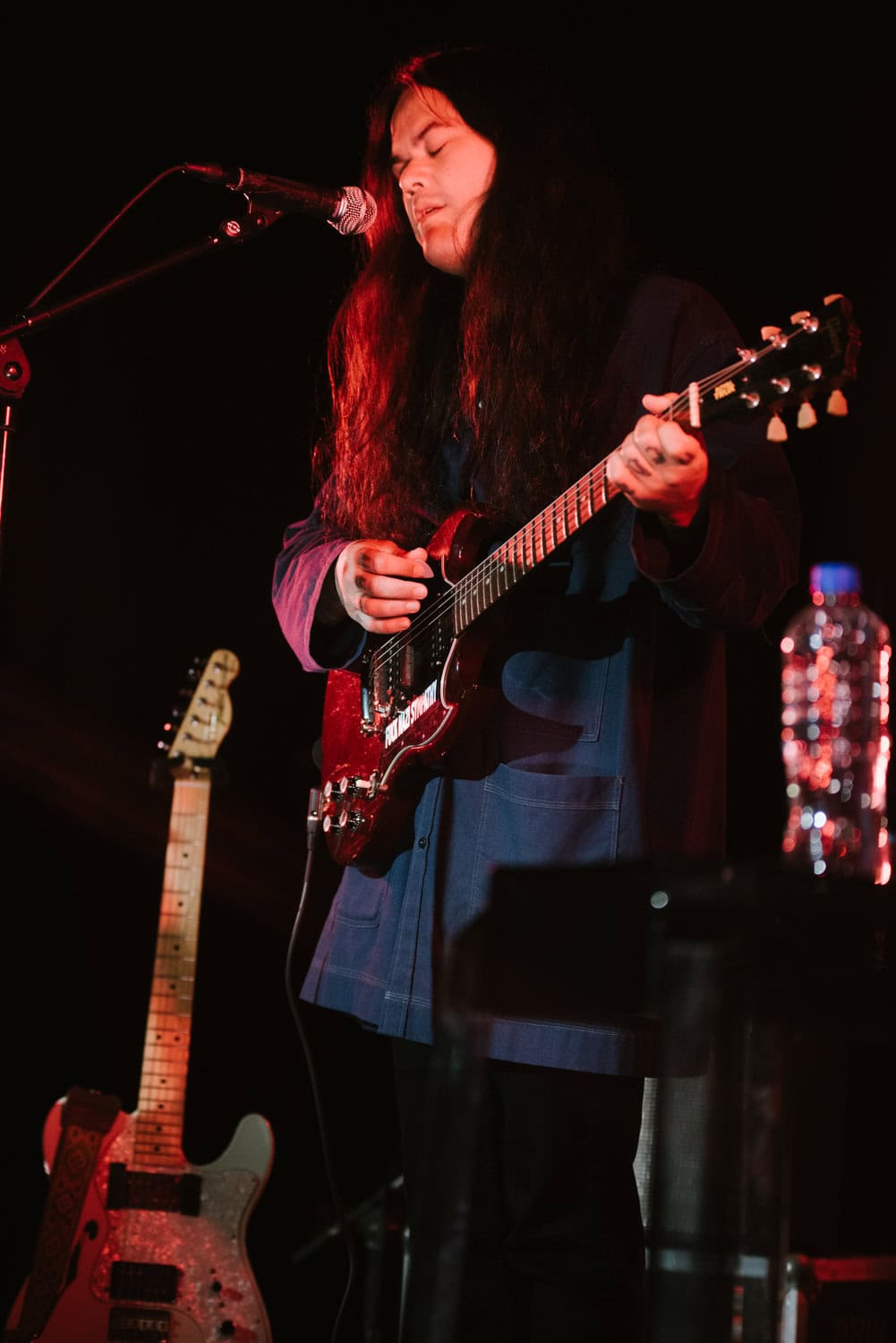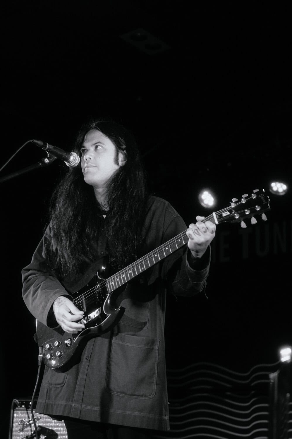 Even though it’s a warm summer night, Irwin is wearing a jacket, his long black hair obscuring his face as he stares down at the stage while strumming his guitar…he seems to take the shoegaze thing quite literally.
