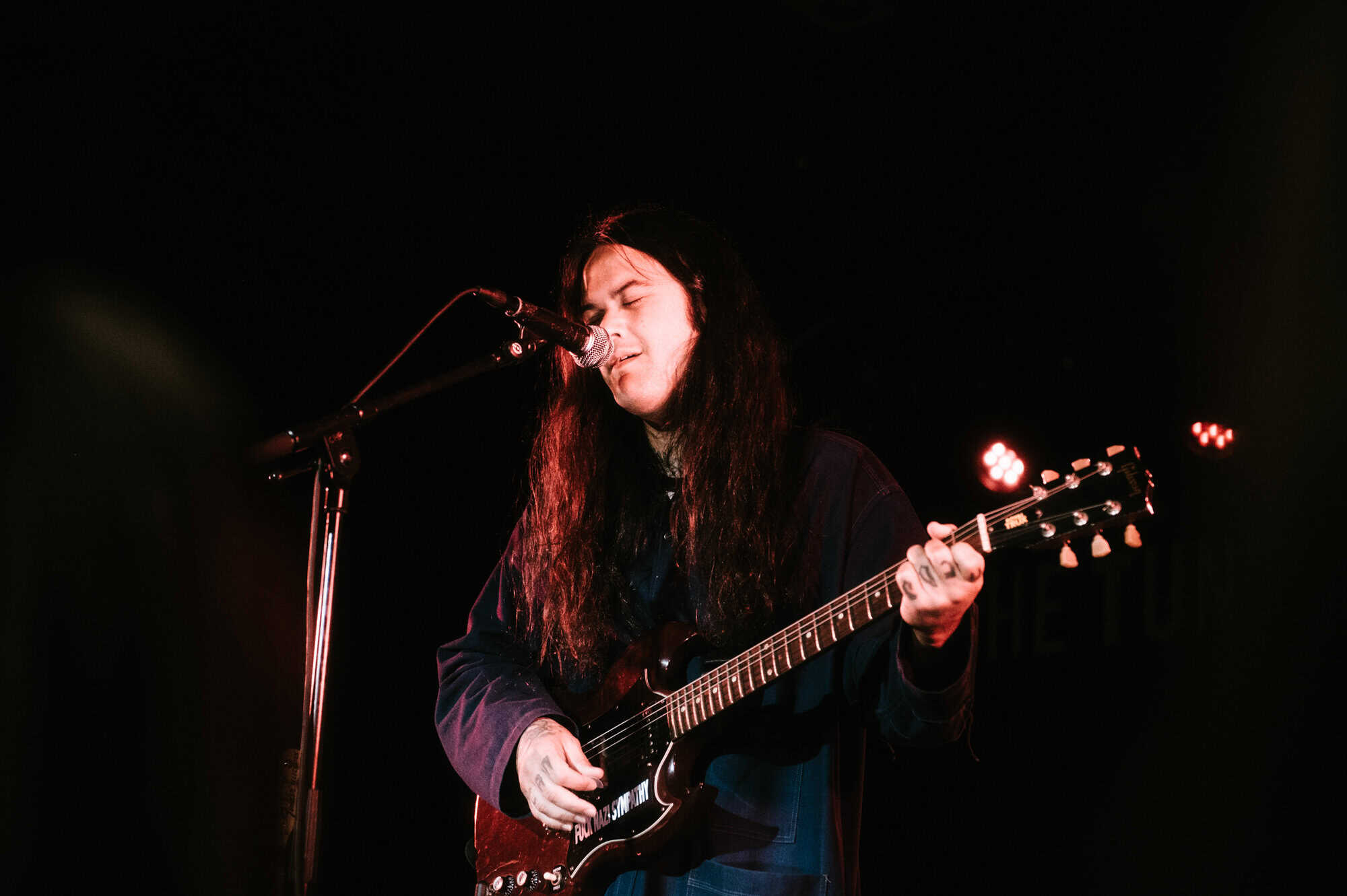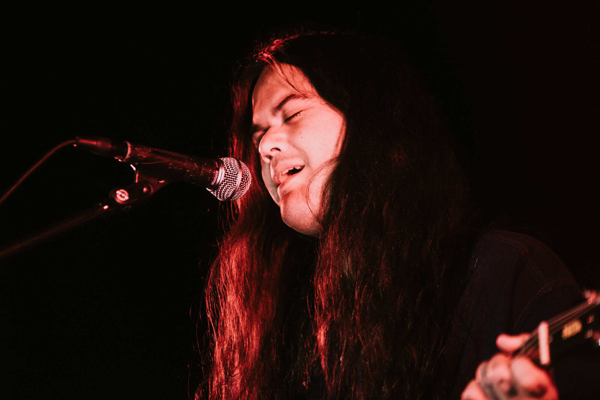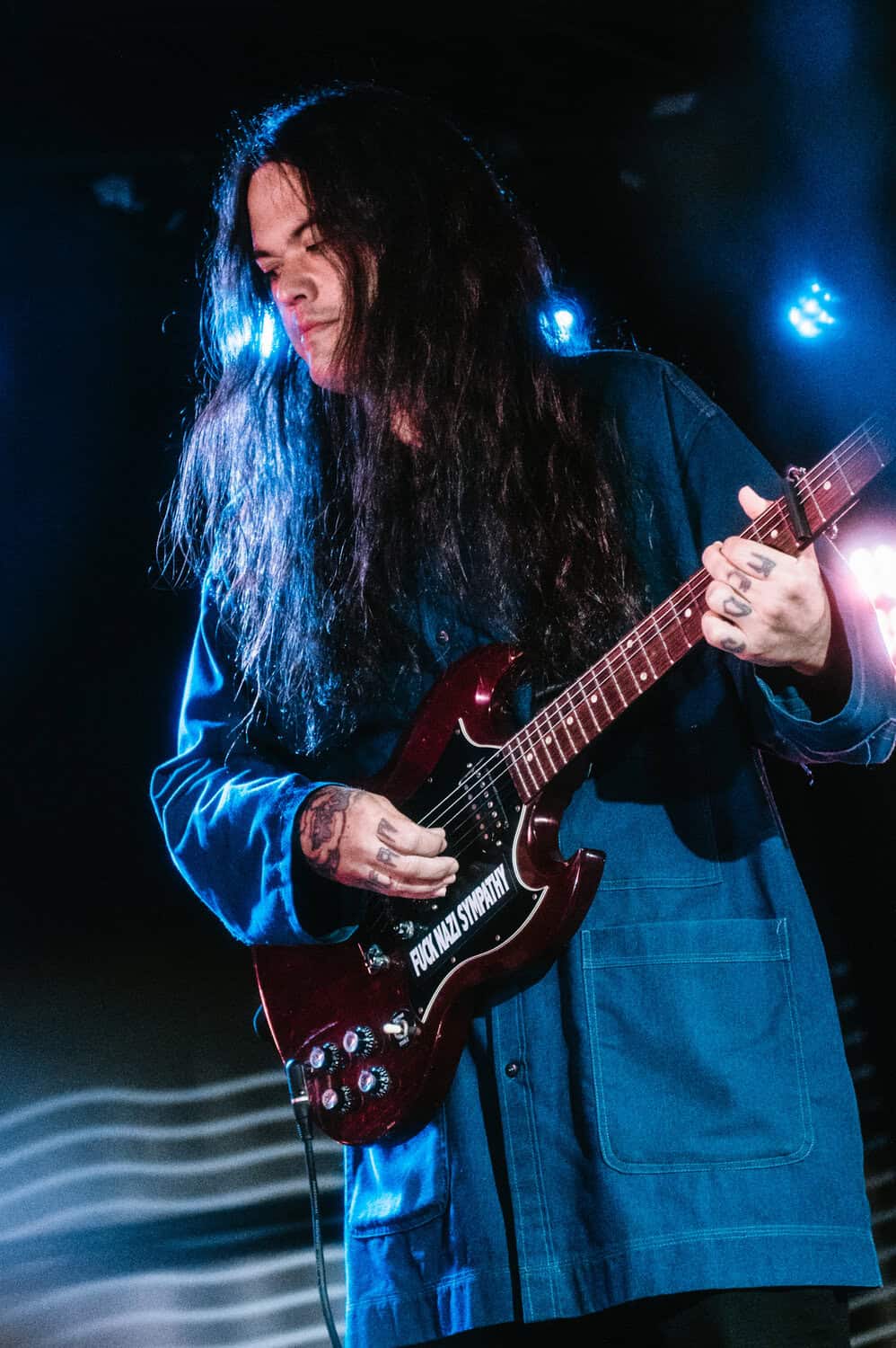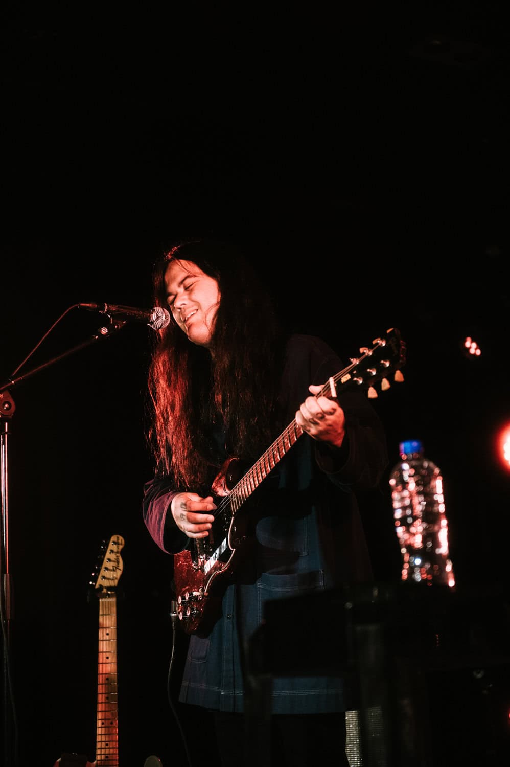 Even though it’s a warm summer night, Irwin is wearing a jacket, his long black hair obscuring his face as he stares down at the stage while strumming his guitar…he seems to take the shoegaze thing quite literally.
