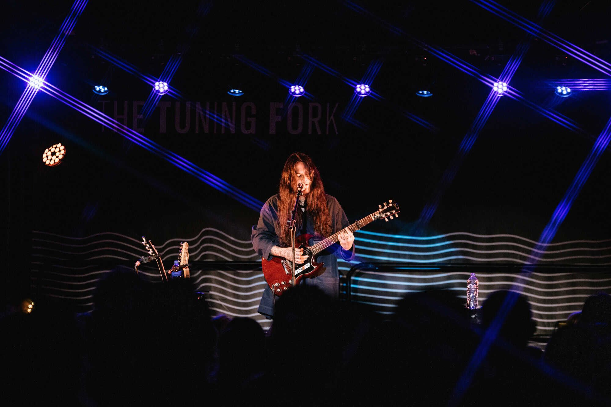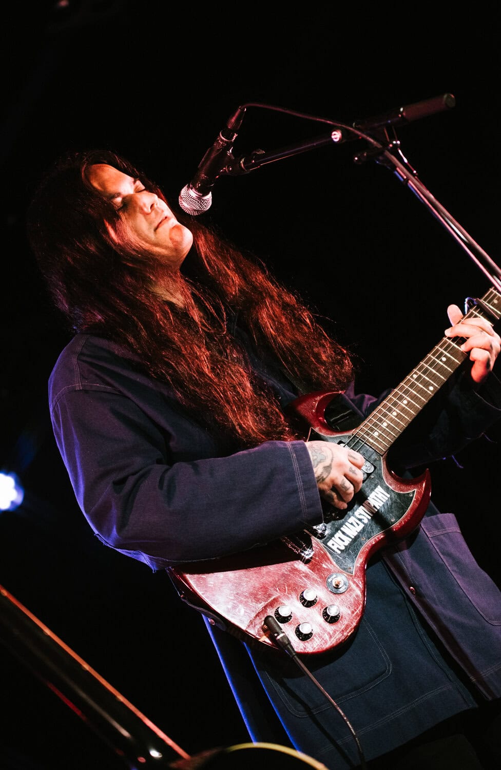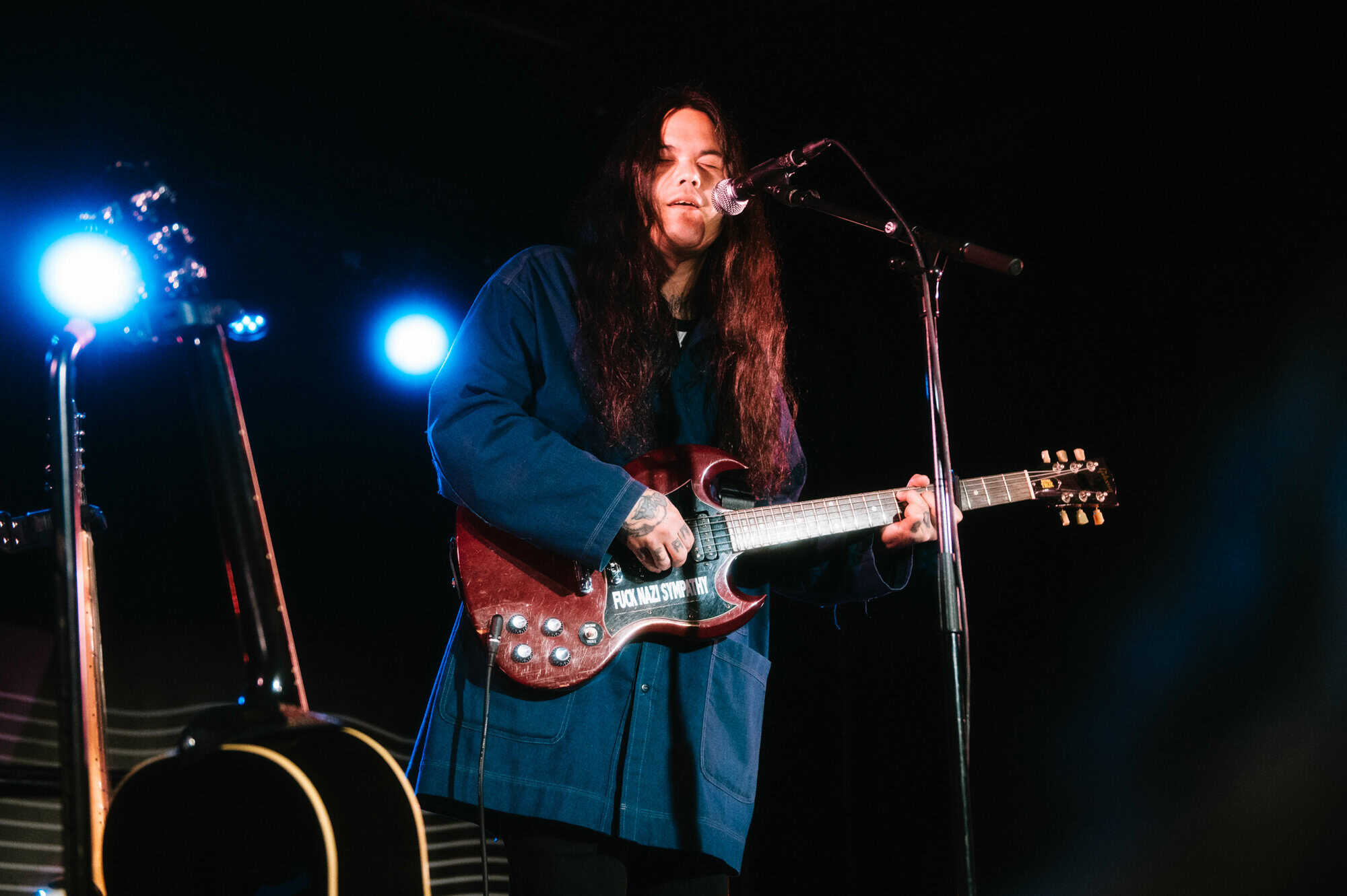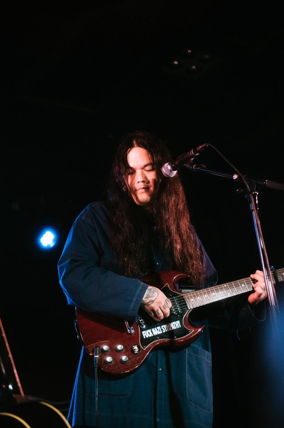 Even though it’s a warm summer night, Irwin is wearing a jacket, his long black hair obscuring his face as he stares down at the stage while strumming his guitar…he seems to take the shoegaze thing quite literally.