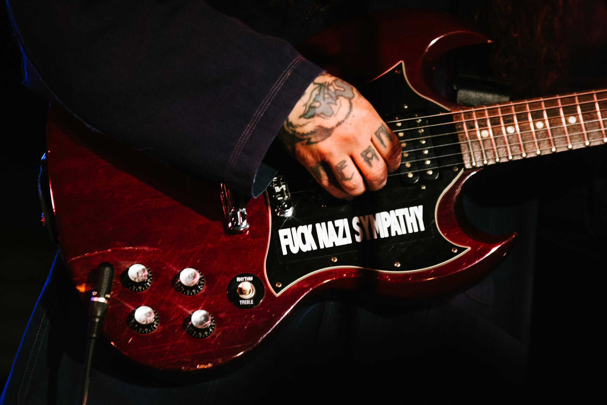 Billie discards the stool…”It didn’t feel right”, and is handed an electric guitar by her “roadie” who, I’m pretty sure is her partner Will Taylor of the band Flyte. Will makes several appearances, adjusting mics, swapping guitars, finding capos and at one dramatic point, retrieving a guitar strap.
