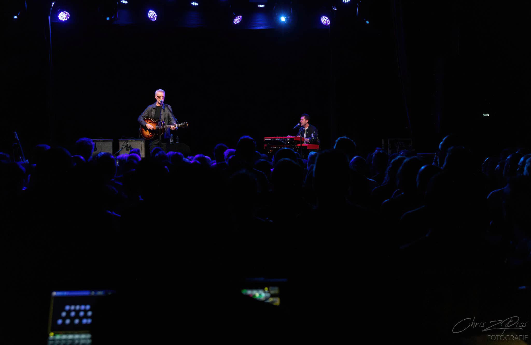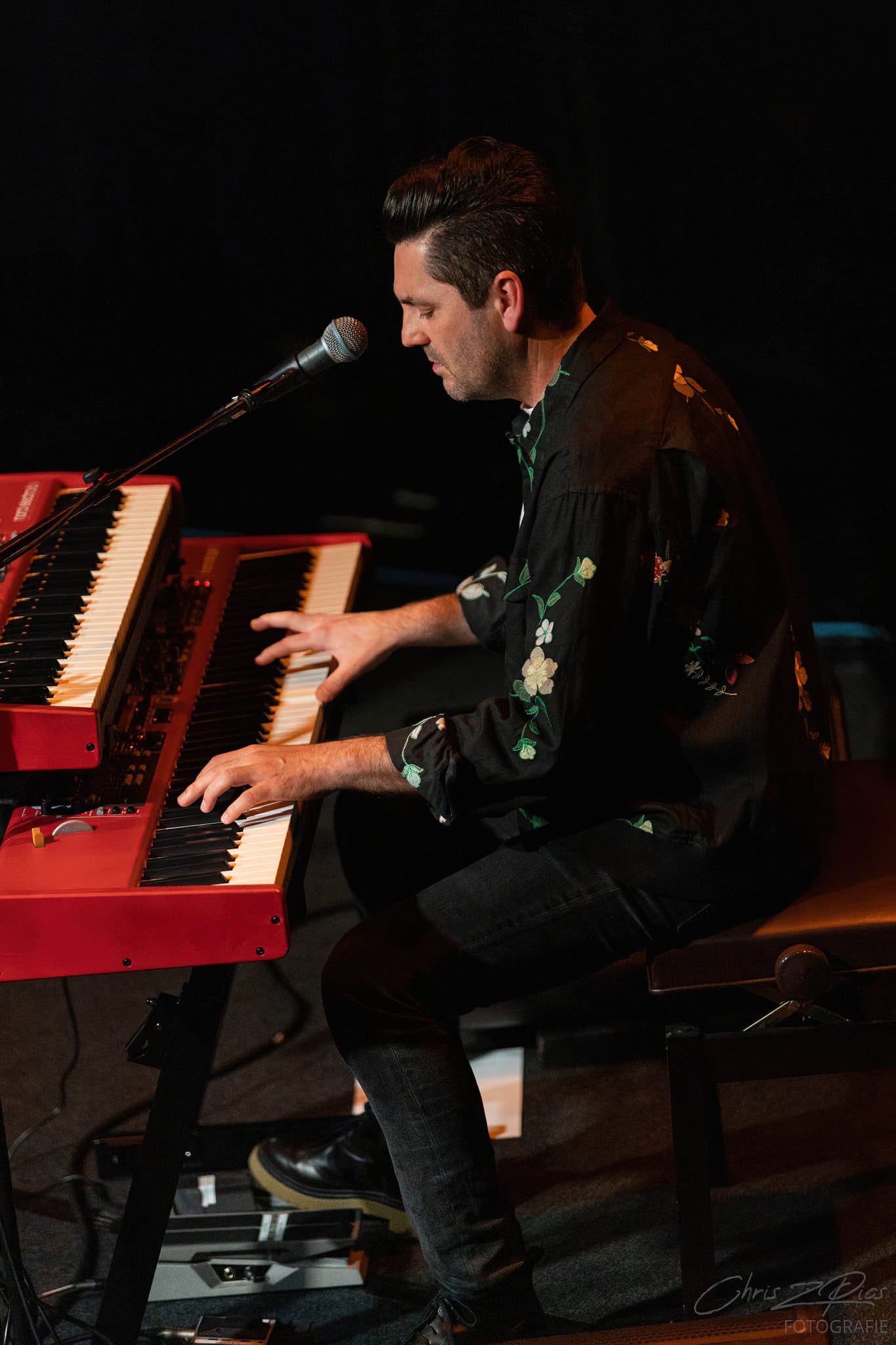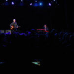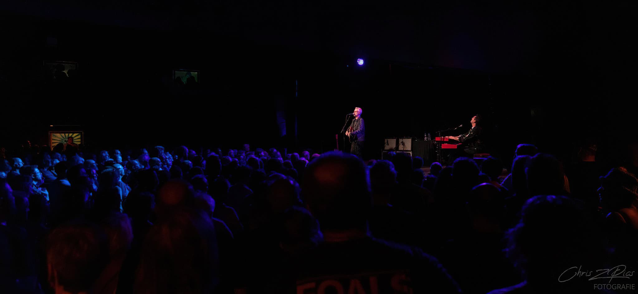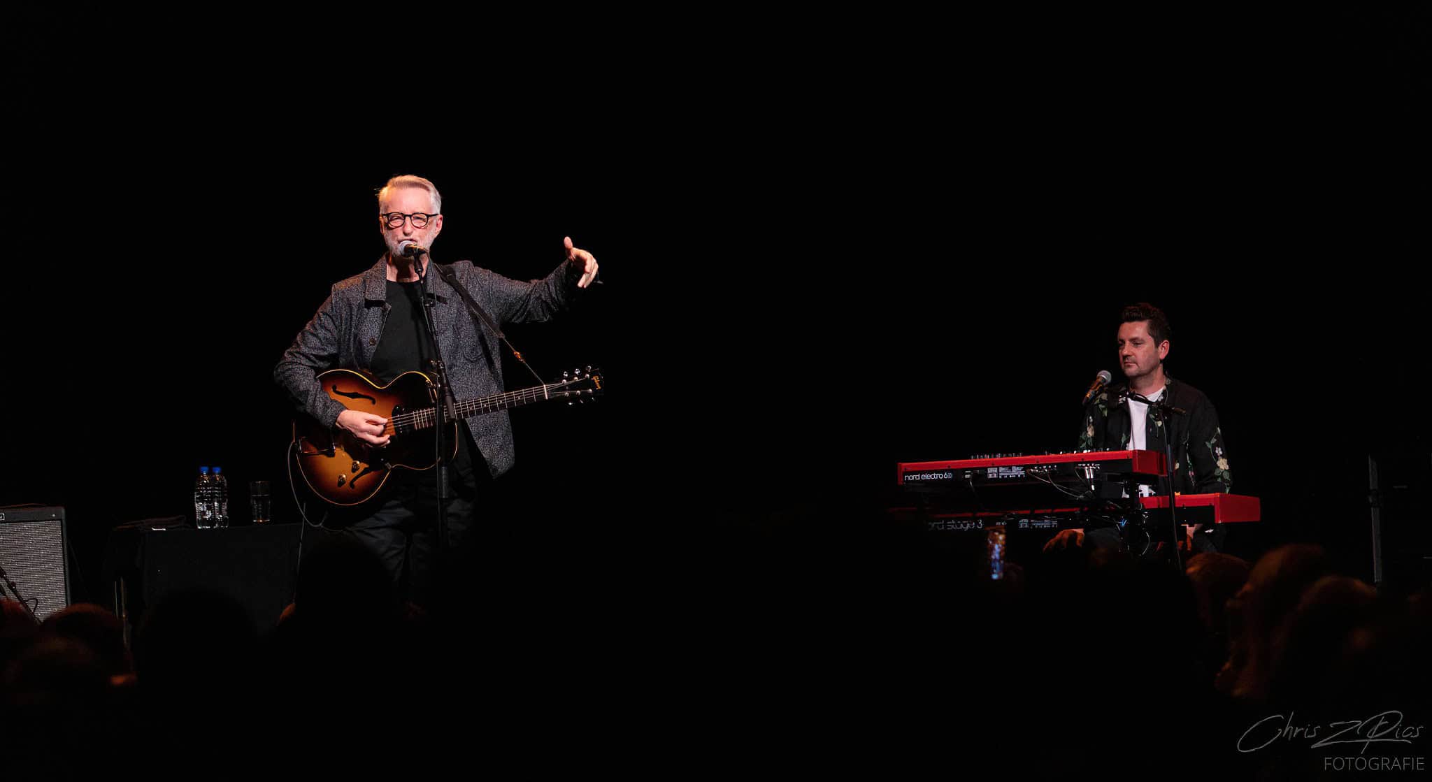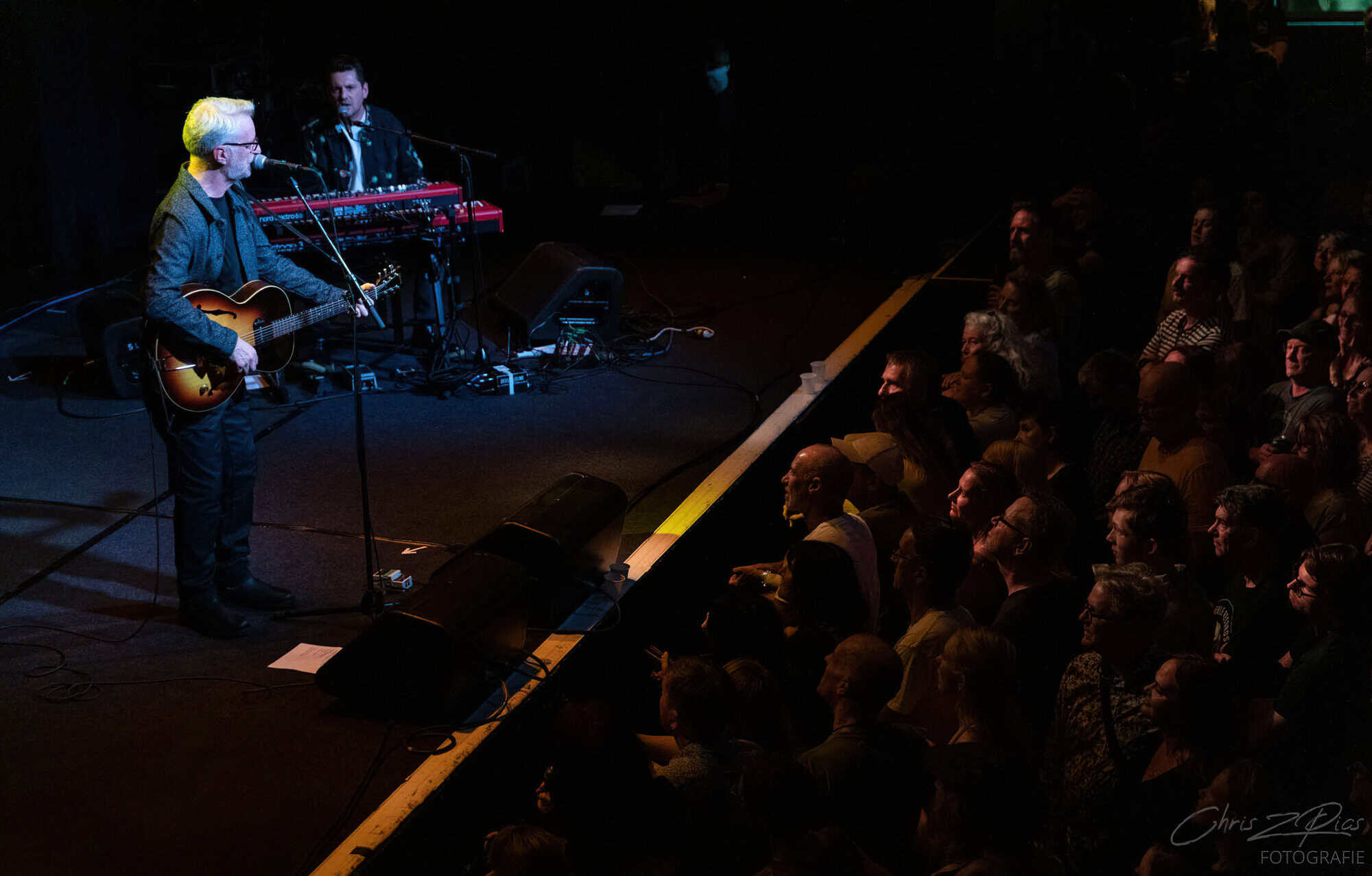 His casual style and London accent easily disguise the razor-sharp intellect of this regular writer in The Guardian and author of a number of books. He swaps between two guitars (a “spit amp set up”) and played such that it feels there’s a an entire band on stage. In a sense there is: a band of two. He’s joined by Neil Anderson on keyboards. A generation junior to Bragg and with slicked back hair, he could have had a bit part in Grease. Fittingly, Billy quips there should be a disco section of his set.