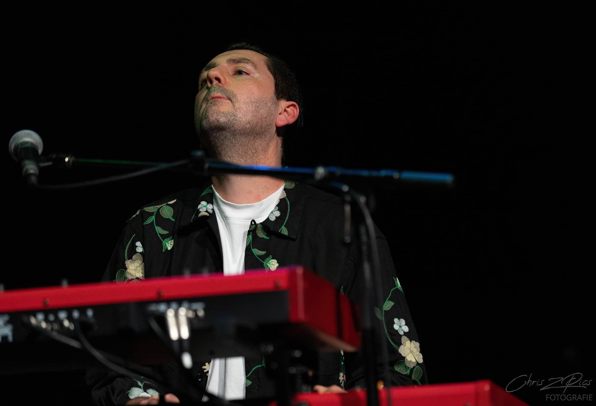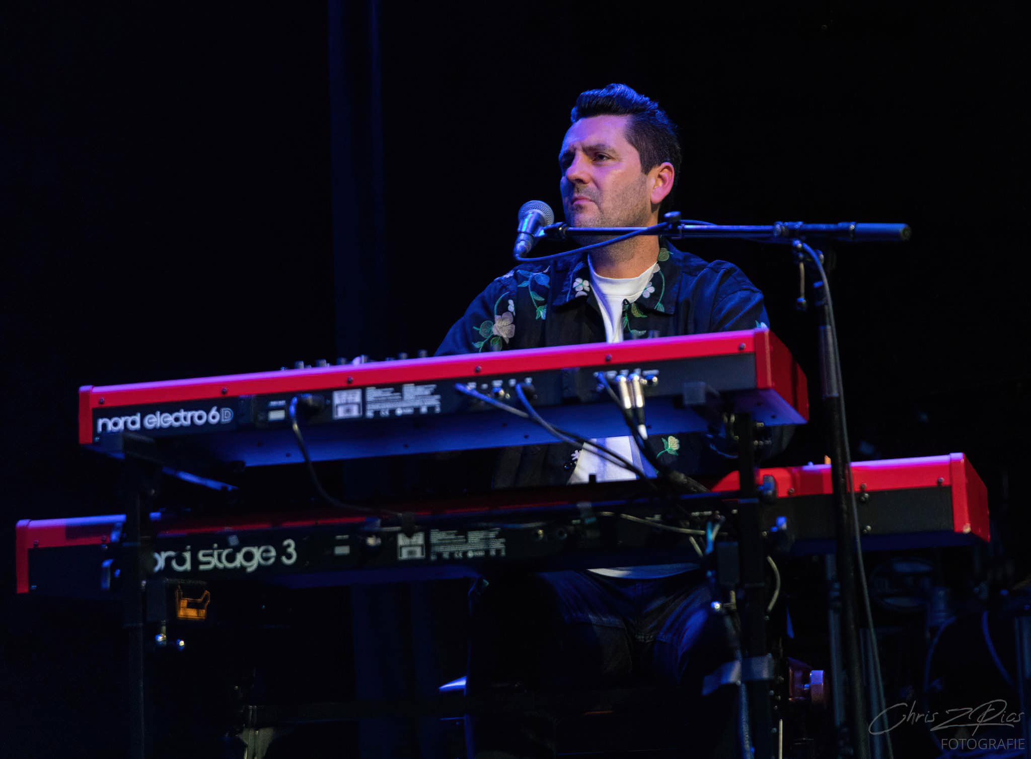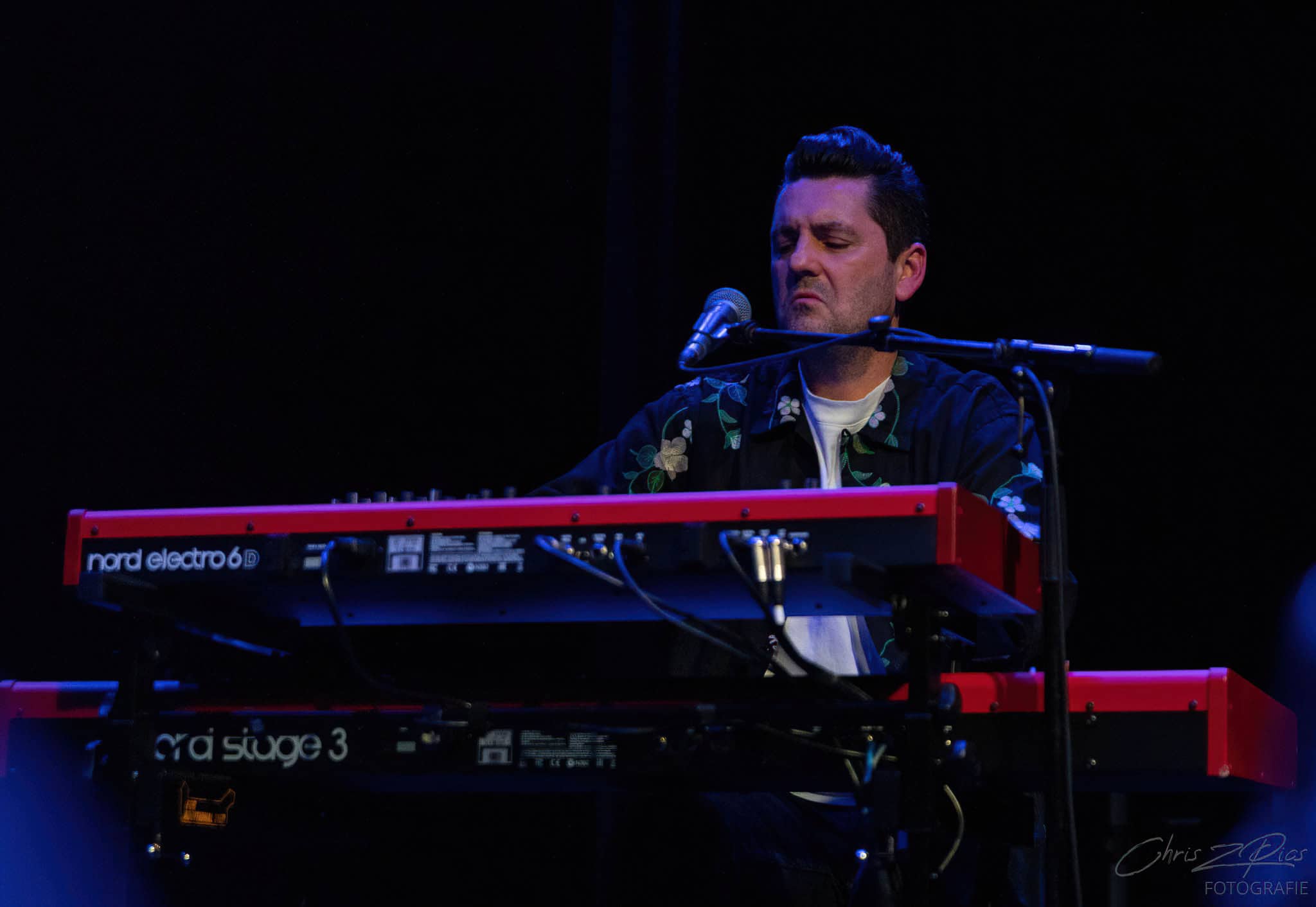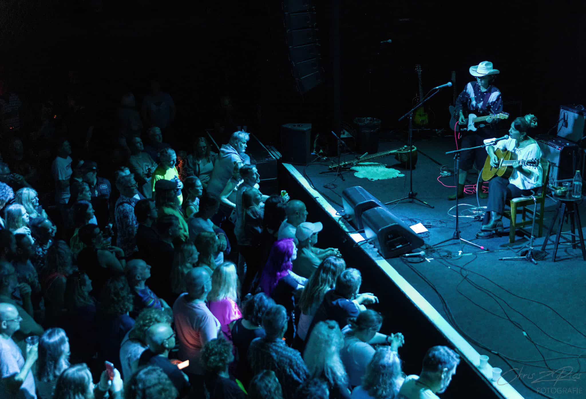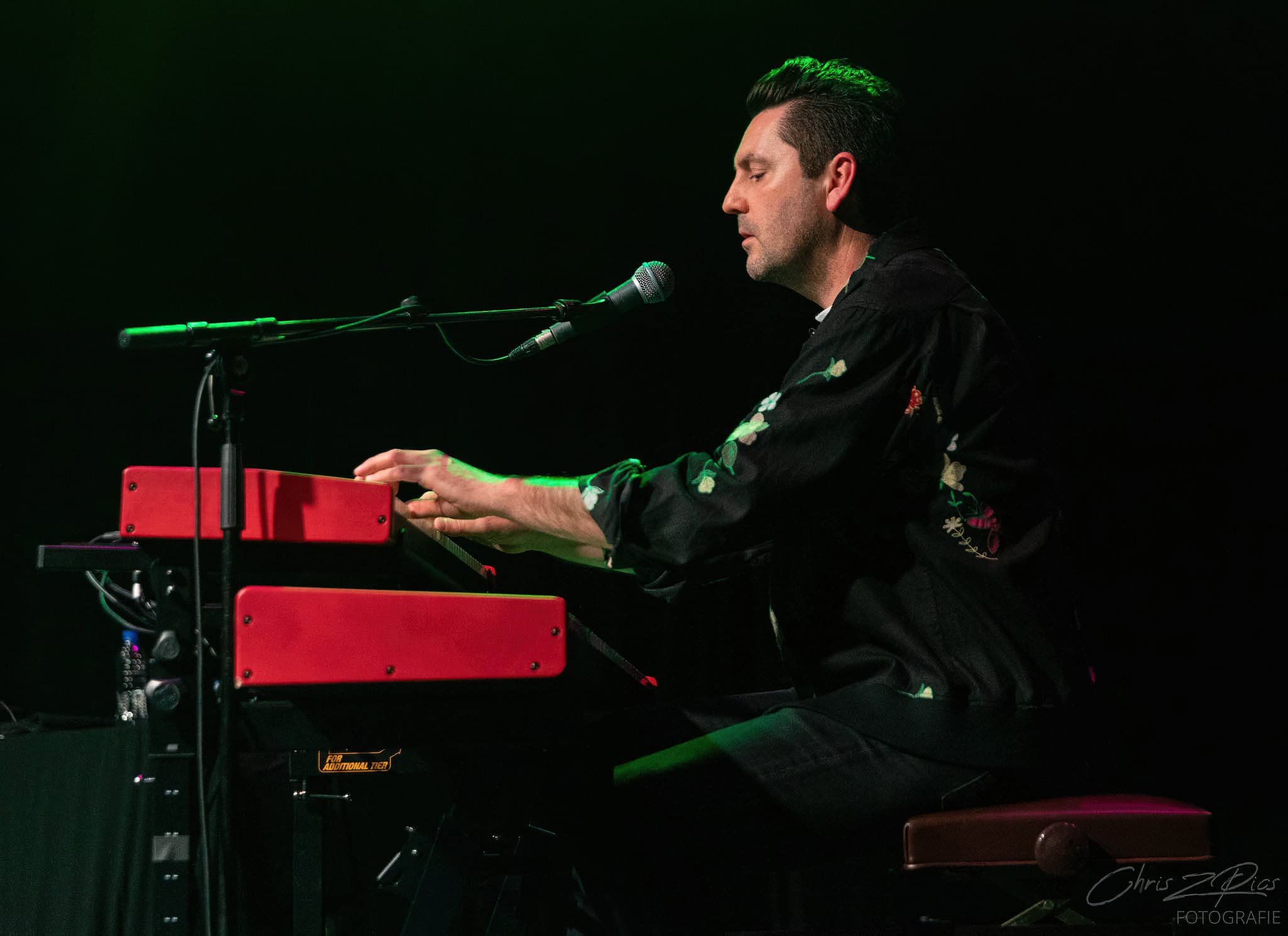 His casual style and London accent easily disguise the razor-sharp intellect of this regular writer in The Guardian and author of a number of books. He swaps between two guitars (a “spit amp set up”) and played such that it feels there’s a an entire band on stage. In a sense there is: a band of two. He’s joined by Neil Anderson on keyboards. A generation junior to Bragg and with slicked back hair, he could have had a bit part in Grease. Fittingly, Billy quips there should be a disco section of his set.