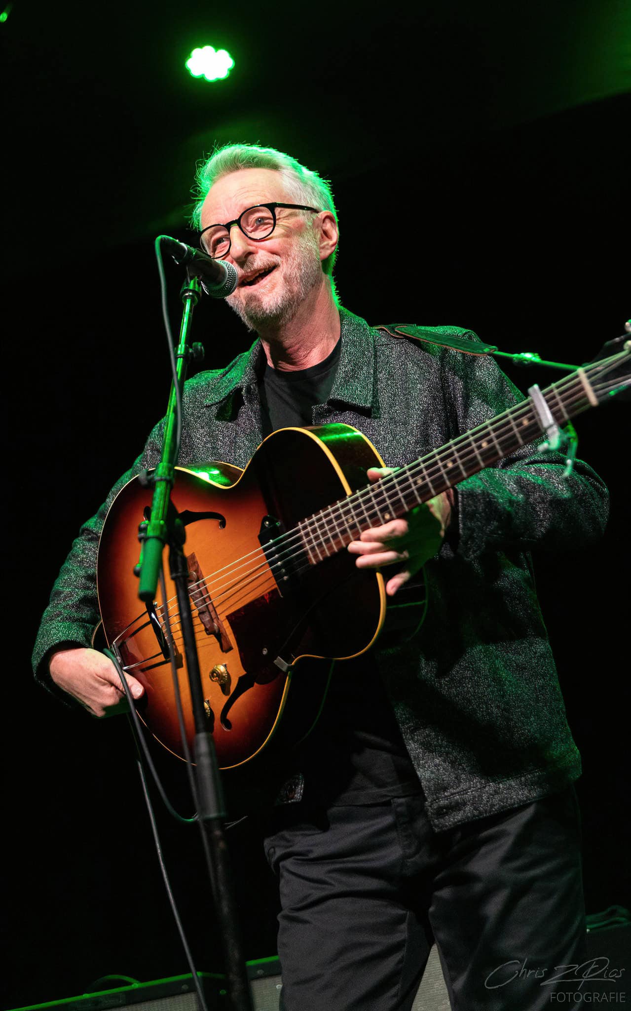 It’s an evening of acknowledging those who had walked before him: Woody Guthrie and Rambling Jack Elliott were imaginatively beamed in from a retirement home at Lake Tahoe, two of the former’s songs making the setlist. Kirsty McColl was remembered for her version of A New England.