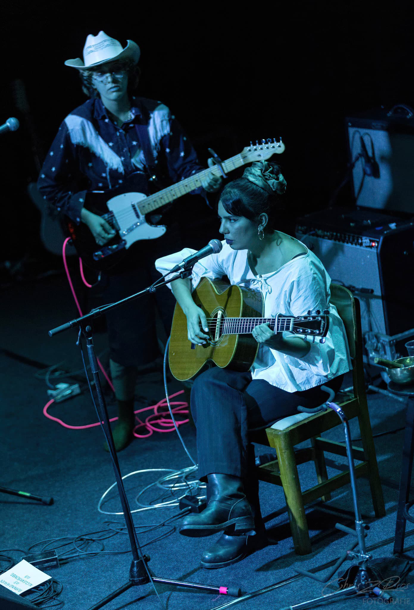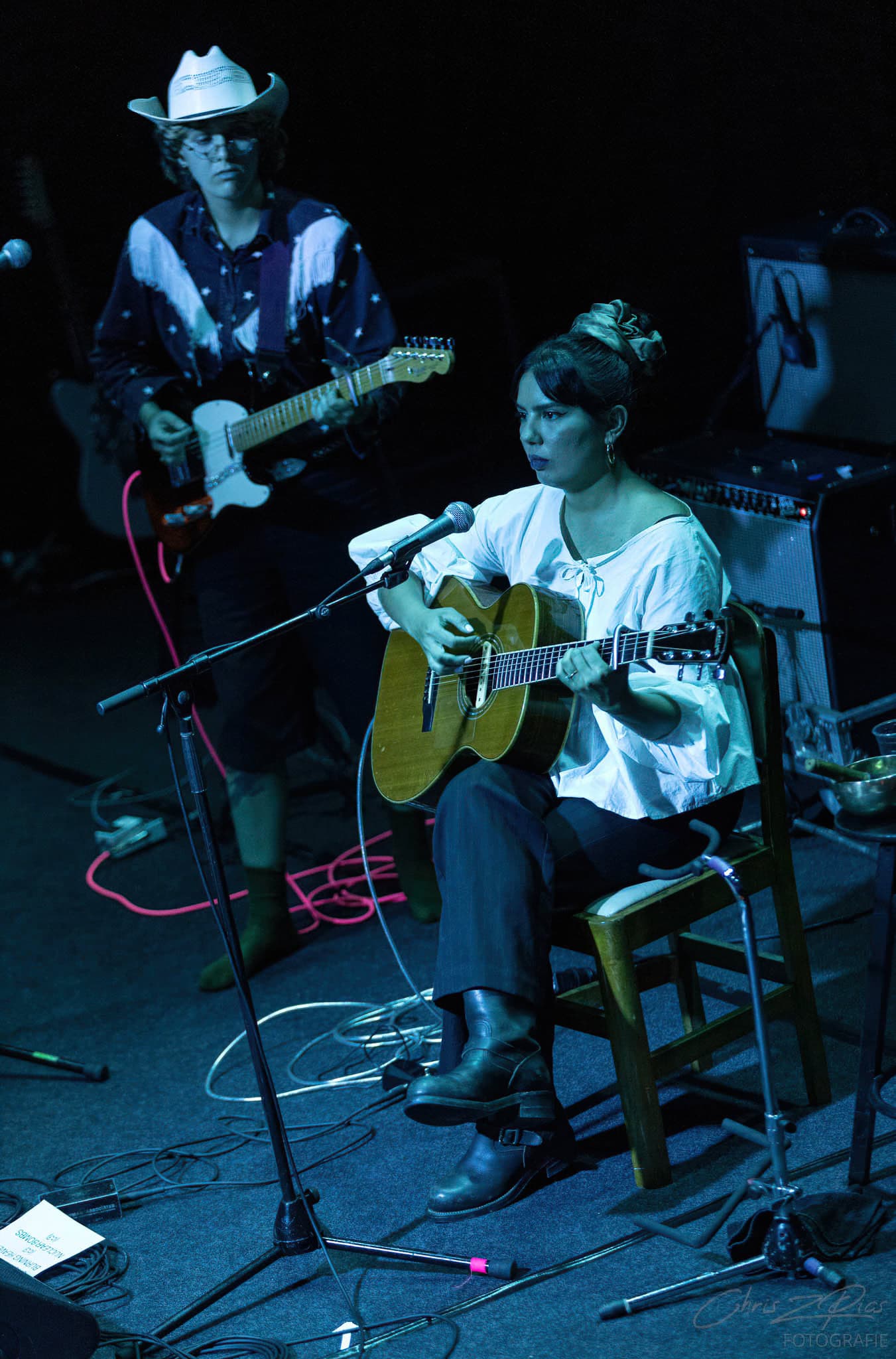 Belle shared the stage with a Tiare Kelly who played able sitar and bass guitar. The former instrument’s atmospherics complemented Erny’ voice beautifully. Or as much as was discernible amid the plague of loud talking. Inventive use of a prayer bowl gong added atmospherics.