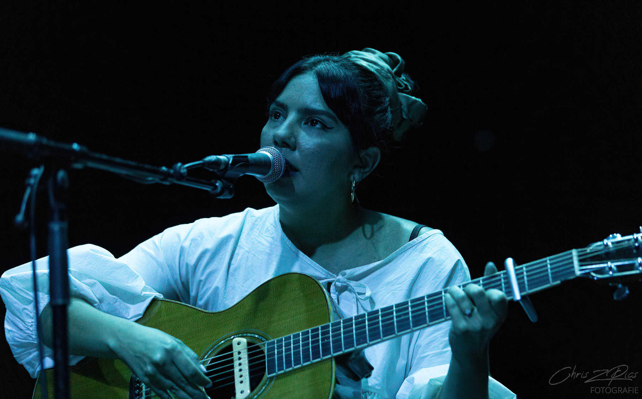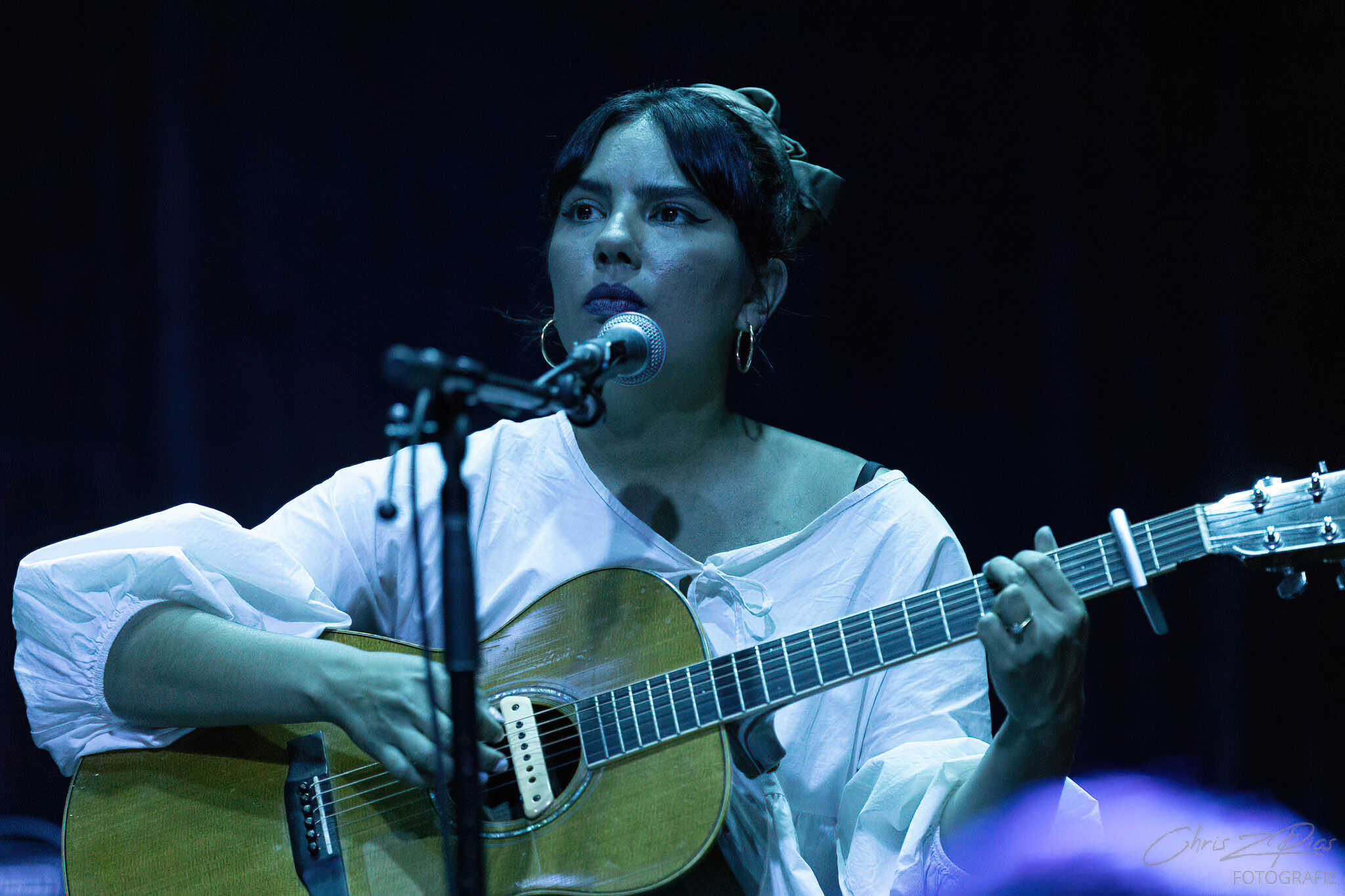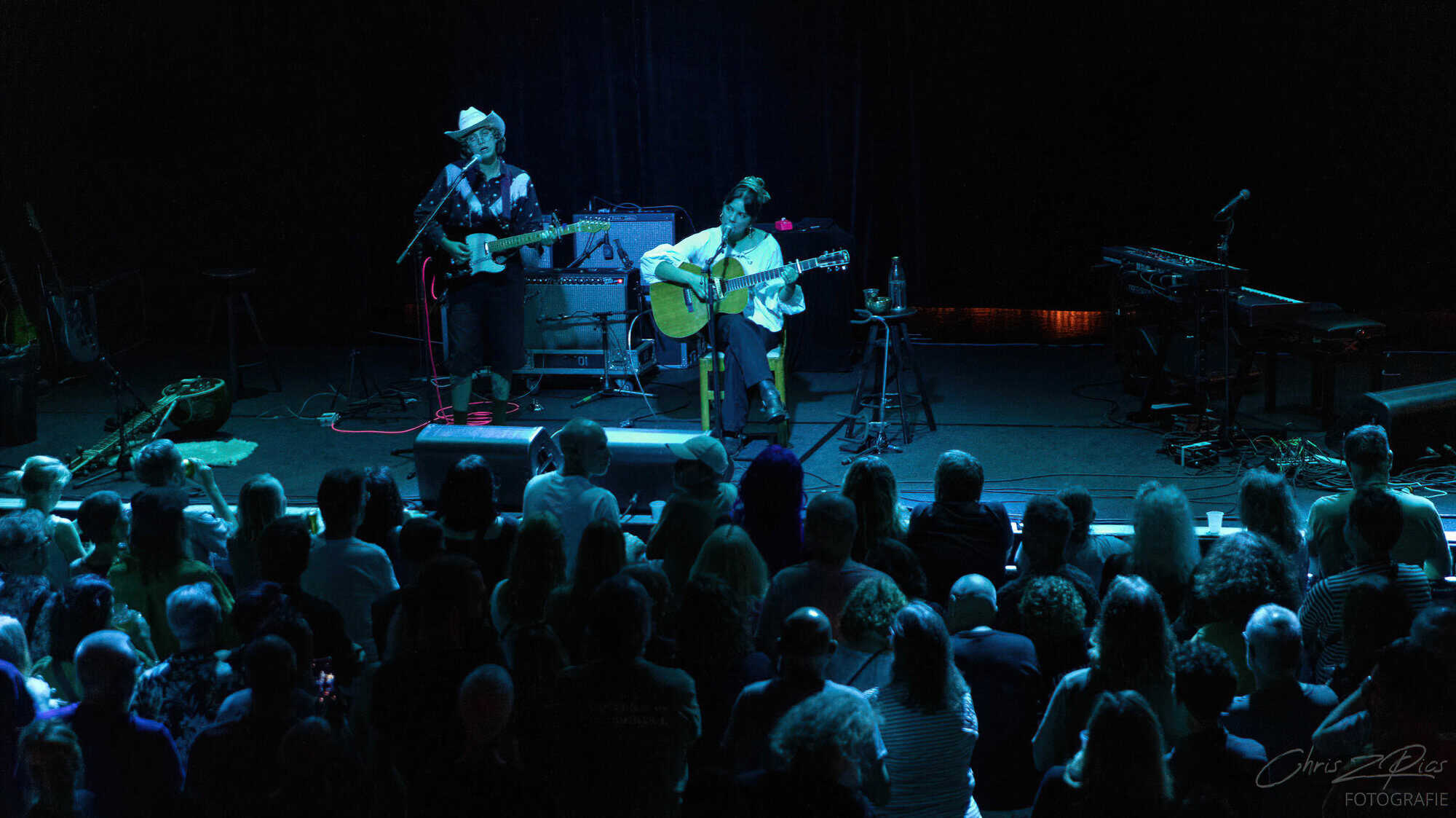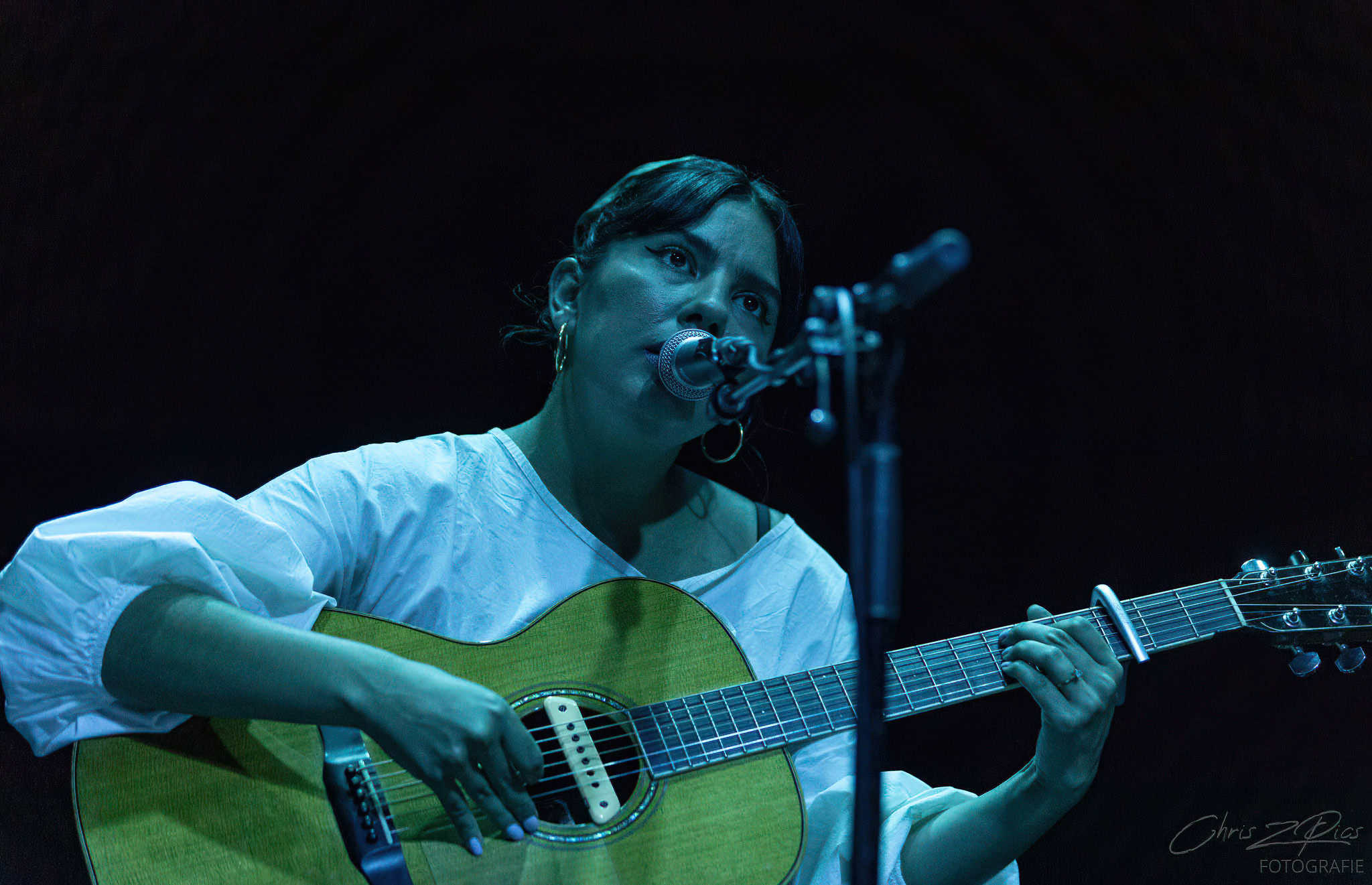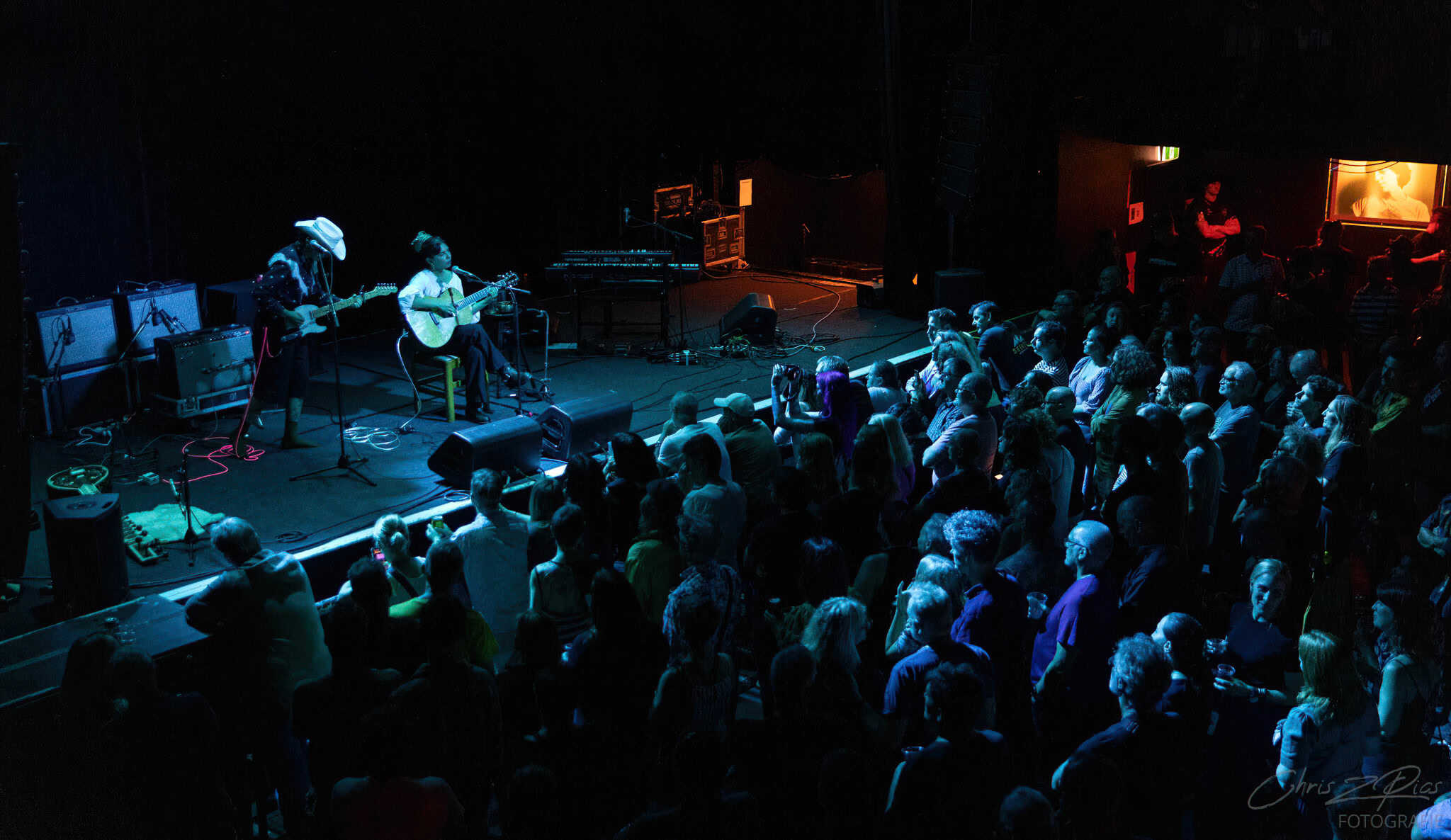 Erny Belle (Aimee Renata, Ngāpuhi) released her album Venus is Home in early 2022. She valiantly took the stage amid the clamour of expectant fans awaiting the main act and presented eight songs mainly from that debut release. Her voice wavers between delicate and strong and at times was a little reminiscent of Nadia Reid. Her delivery seemed a little emotionally flat, possibly related to the challenge of connecting to a less than engaged audience.