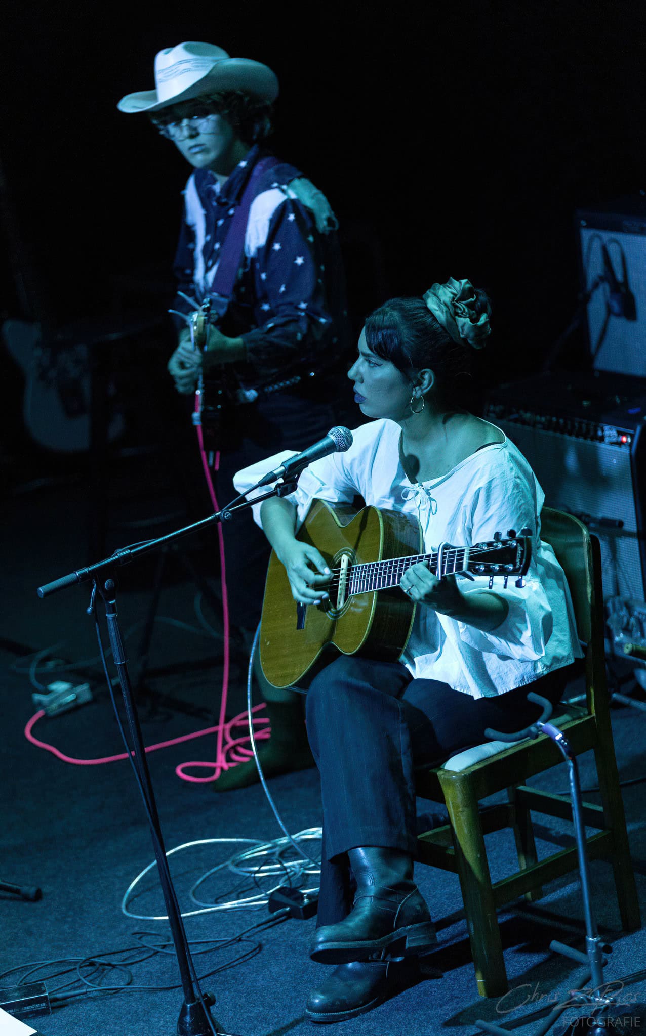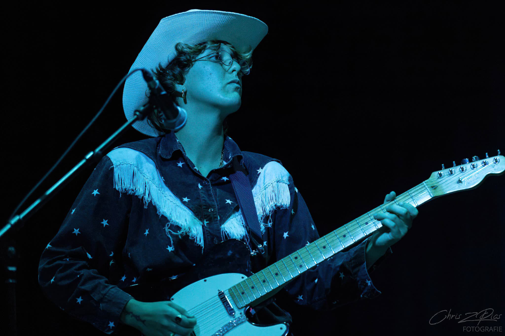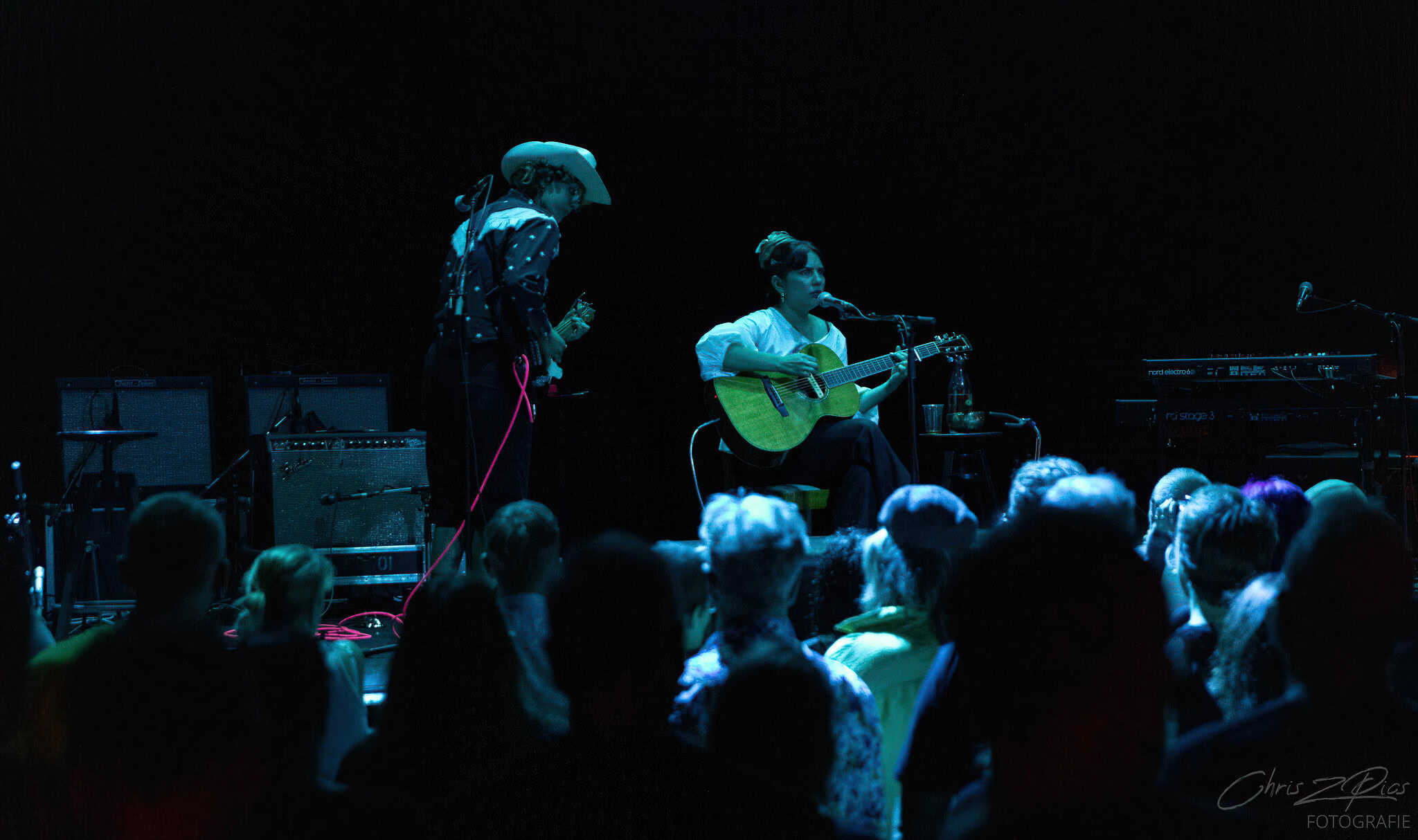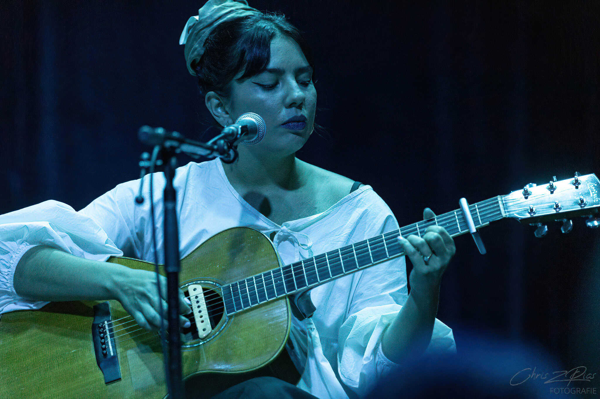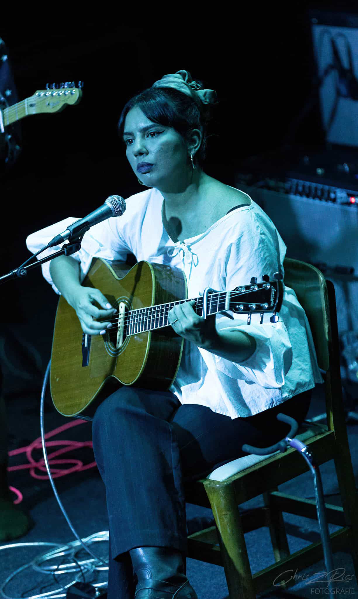 Erny Belle (Aimee Renata, Ngāpuhi) released her album Venus is Home in early 2022. She valiantly took the stage amid the clamour of expectant fans awaiting the main act and presented eight songs mainly from that debut release. Her voice wavers between delicate and strong and at times was a little reminiscent of Nadia Reid. Her delivery seemed a little emotionally flat, possibly related to the challenge of connecting to a less than engaged audience.