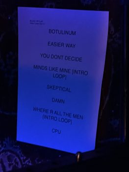 First song up is something called Botulinum; also called “miracle poison’, it is one of the most poisonous biological substances known (thank you Google)…but I have a feeling Blake has someone in mind here, not something.