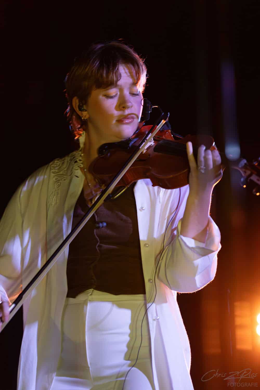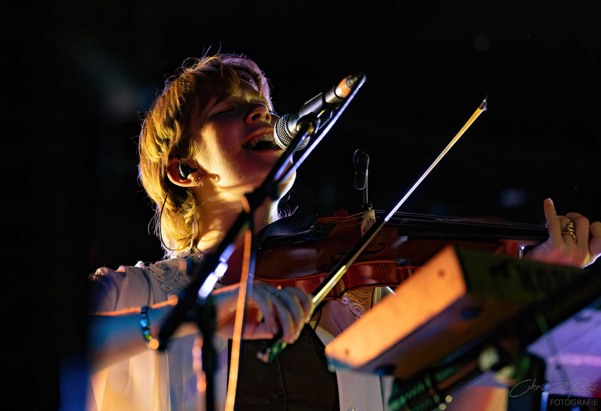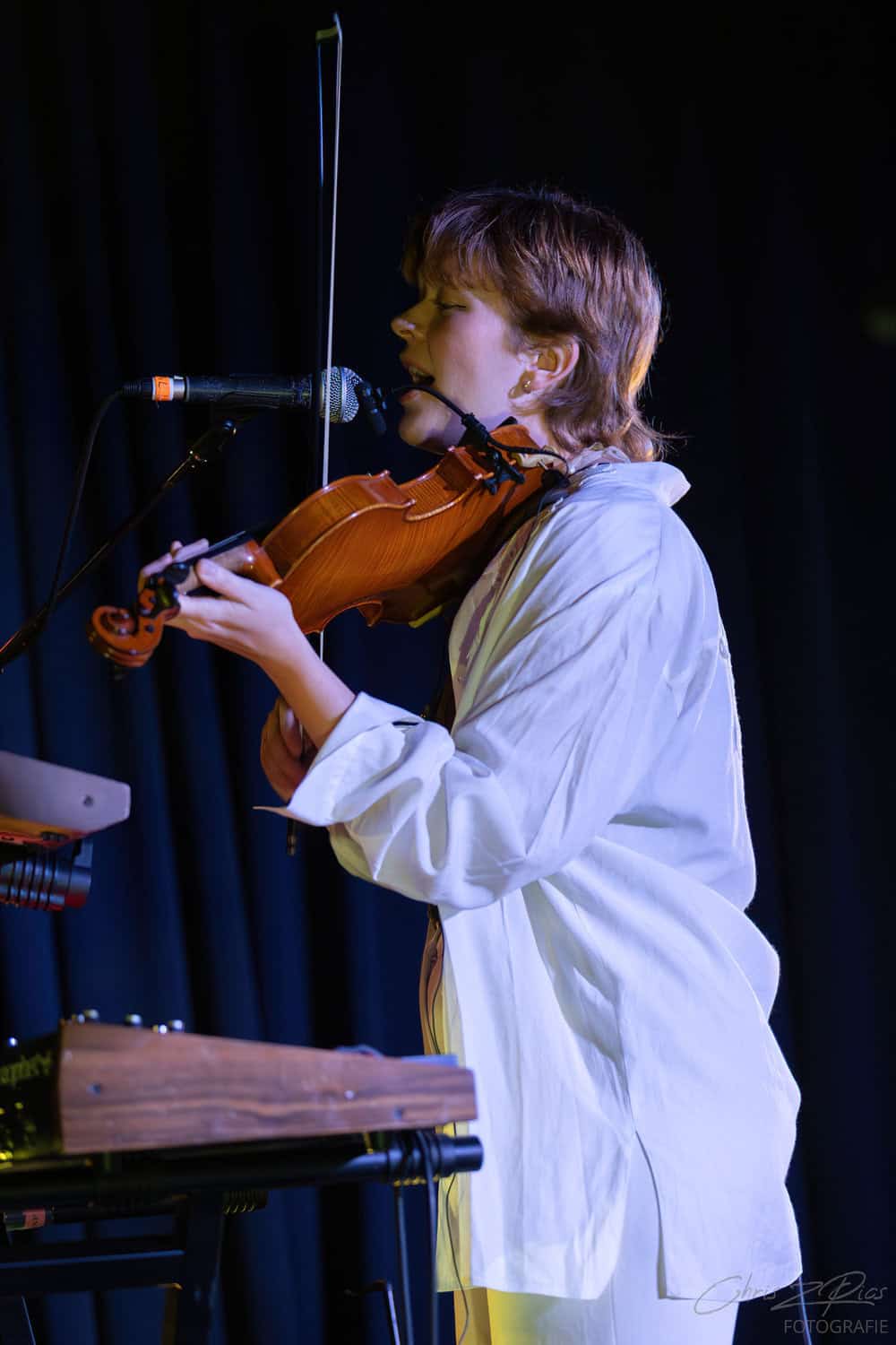 Blanco White took the stage just after 9pm, although the dim lighting made it difficult to make out the three shadowy figures. But Charlotte Shnurr’s violin playing reached out like a beacon as they began the set with Colder Heavens, an upbeat number from their 2017 E.P. of the same name. The crowd responds enthusiastically, clearly BEXY has warmed them up sufficiently.