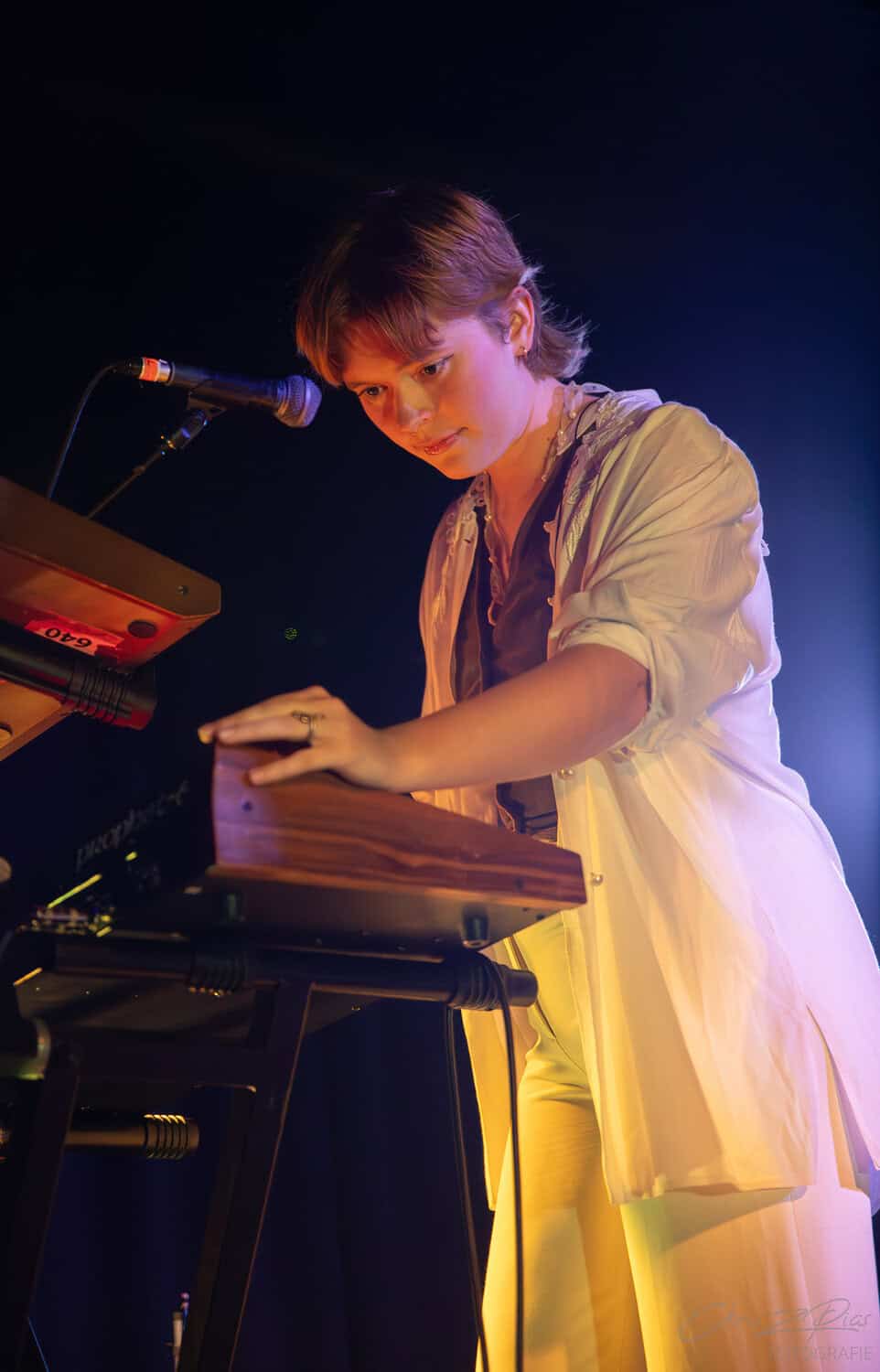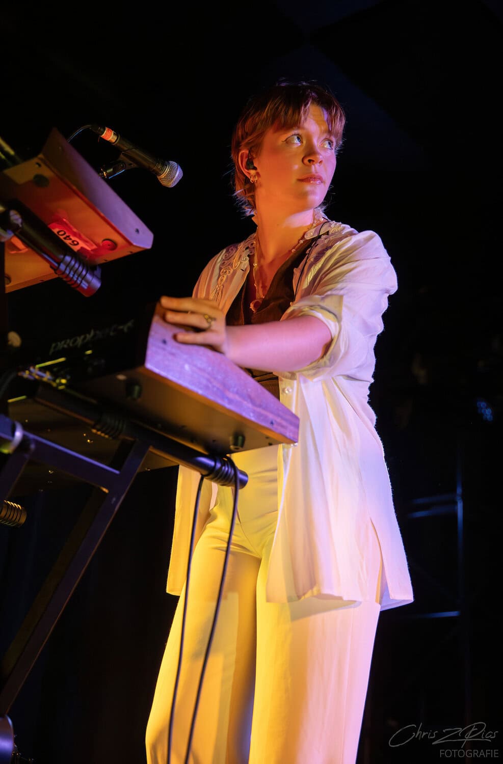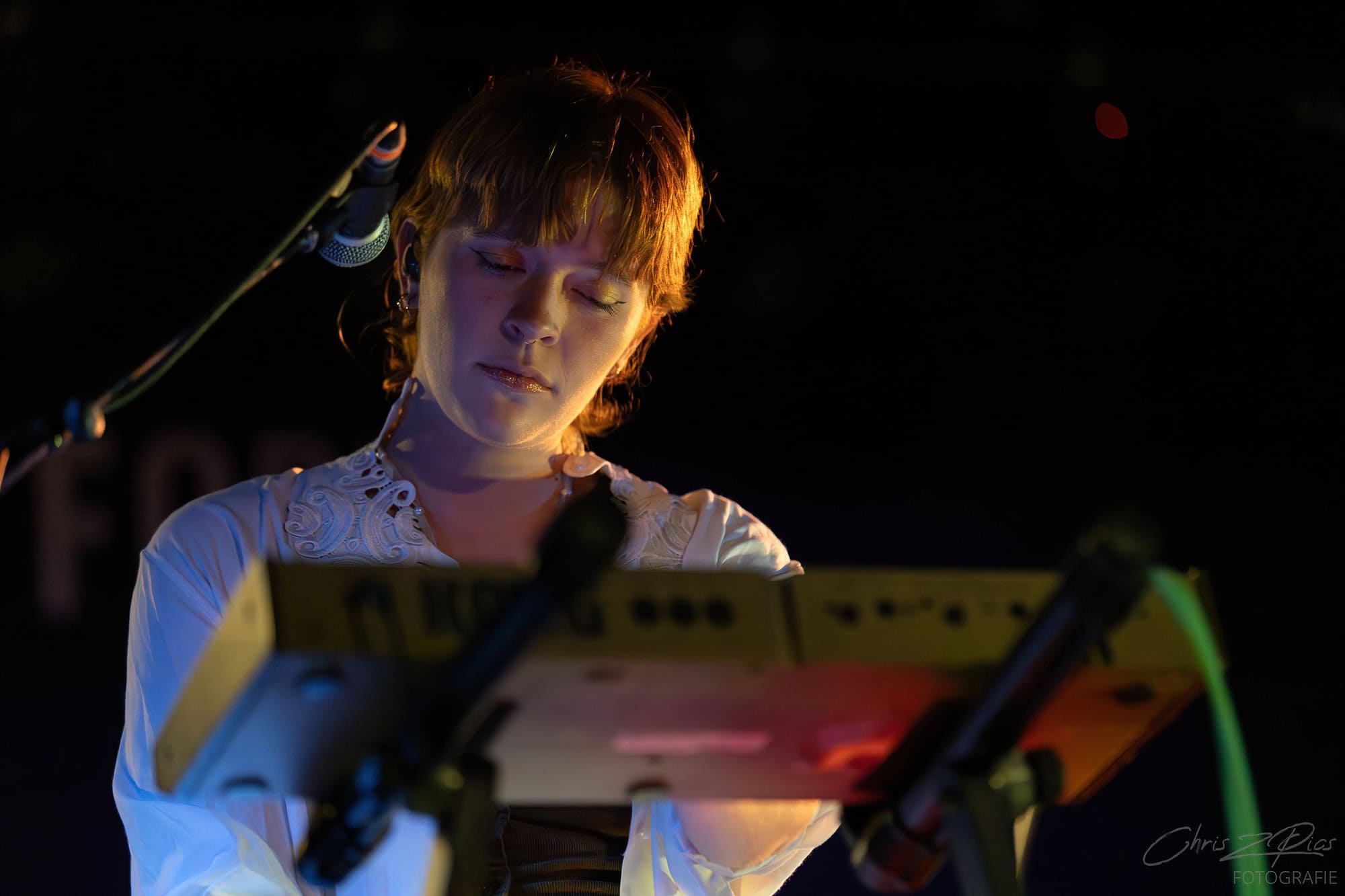 Blanco White took the stage just after 9pm, although the dim lighting made it difficult to make out the three shadowy figures. But Charlotte Shnurr’s violin playing reached out like a beacon as they began the set with Colder Heavens, an upbeat number from their 2017 E.P. of the same name. The crowd responds enthusiastically, clearly BEXY has warmed them up sufficiently.
