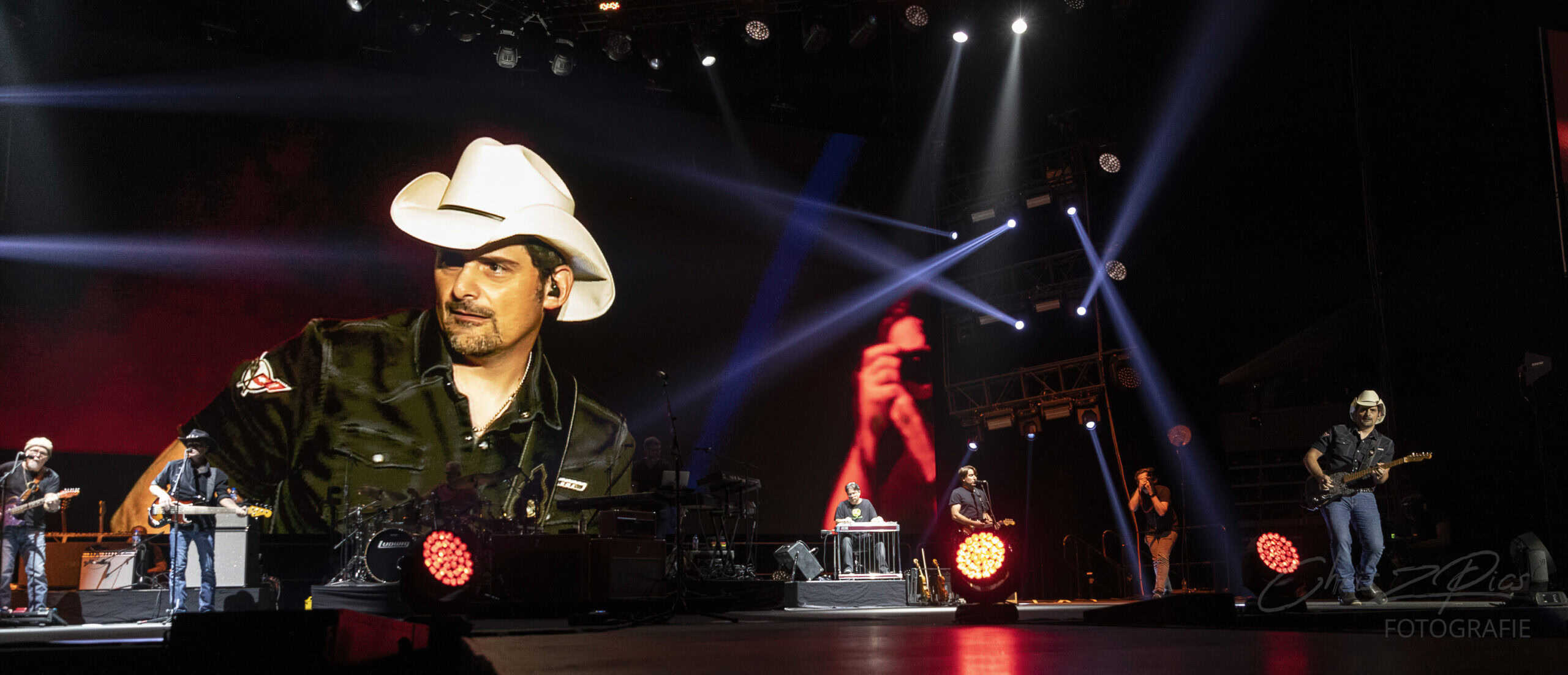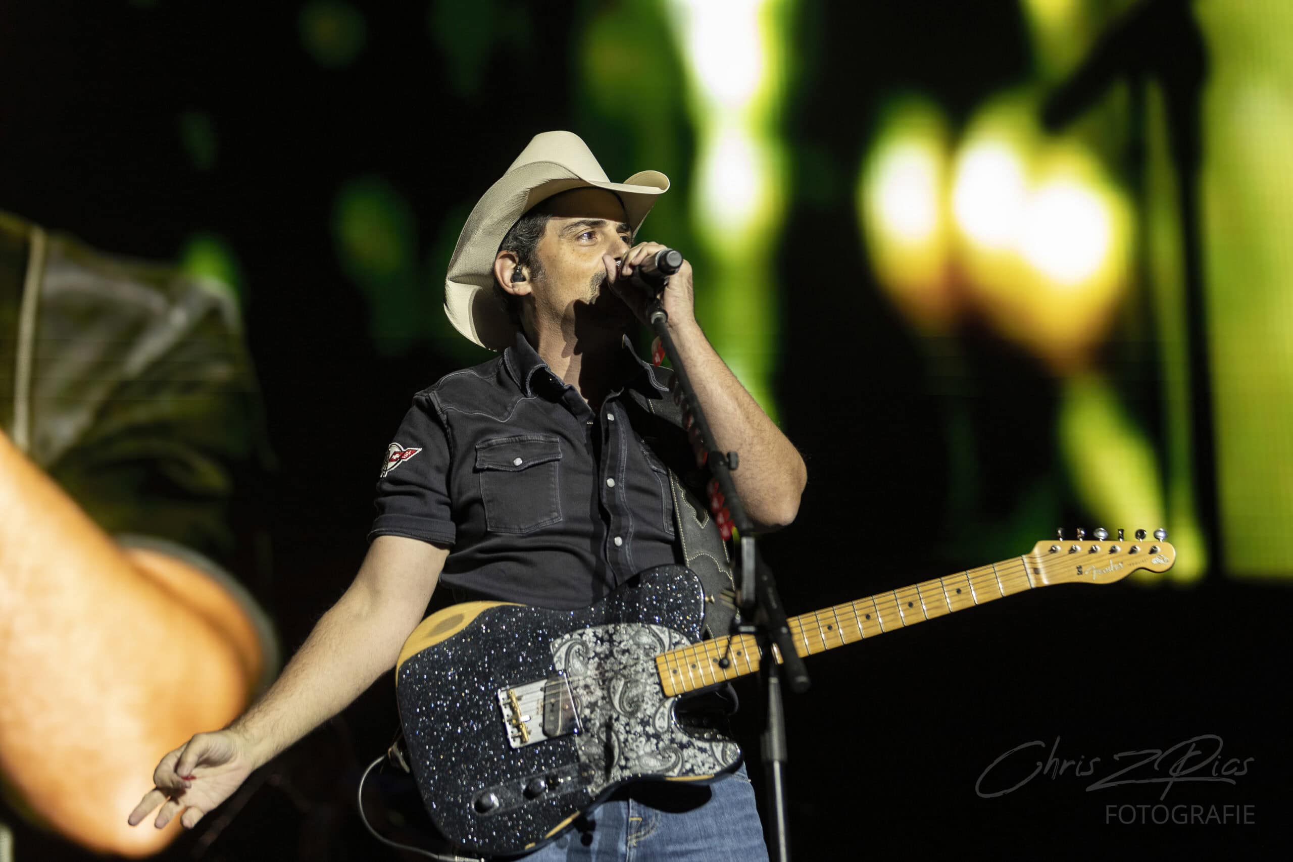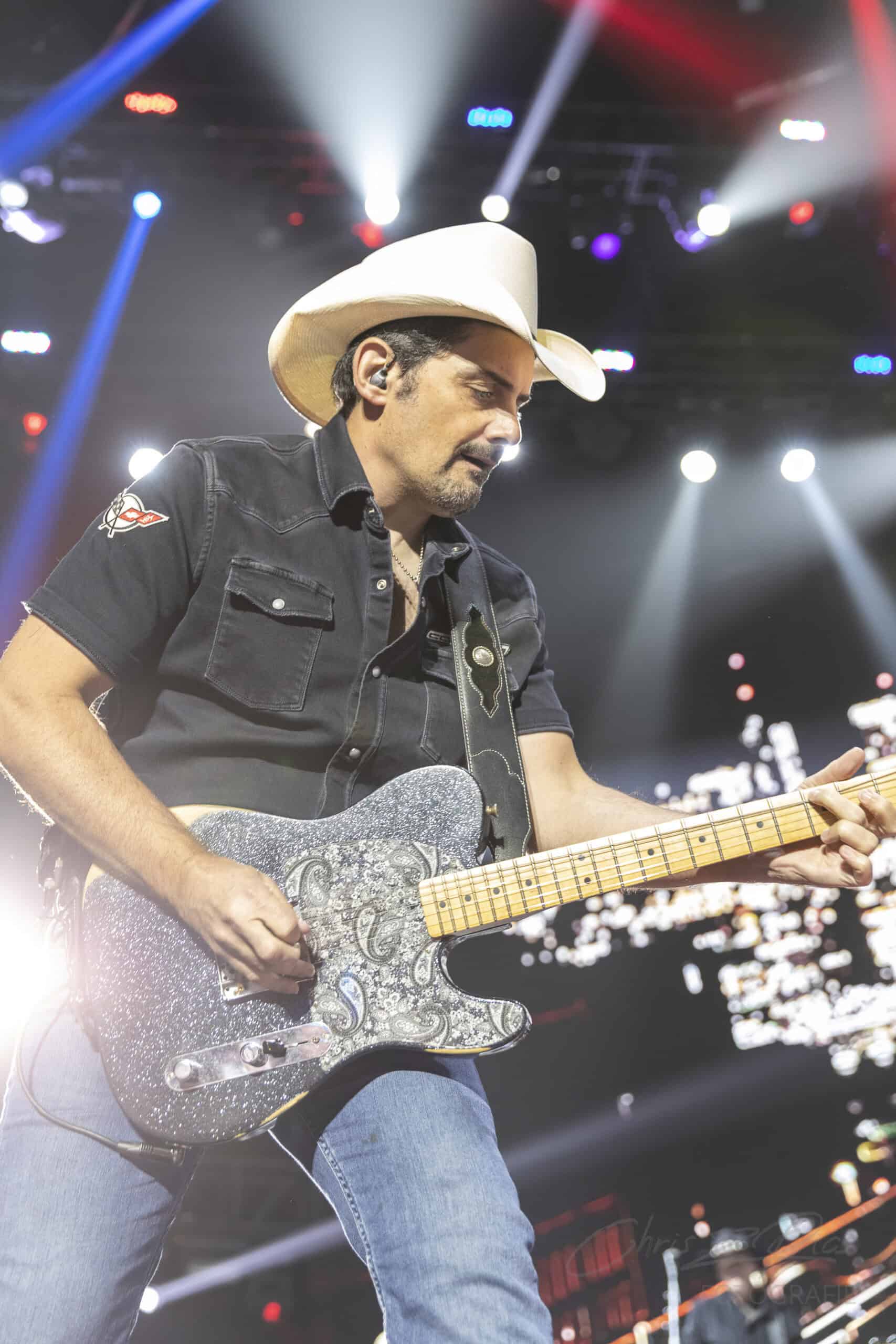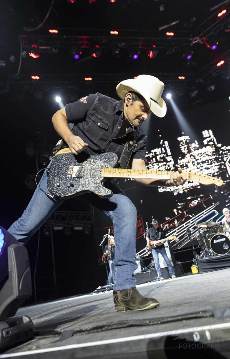 Brad Paisley closed out his World Tour at Auckland’s Spark Arena proving that his is not your father’s country music concert…integrating riffs from Prince and Van Halen, and featuring a water-skiing squirrel and a surprise marriage proposal.