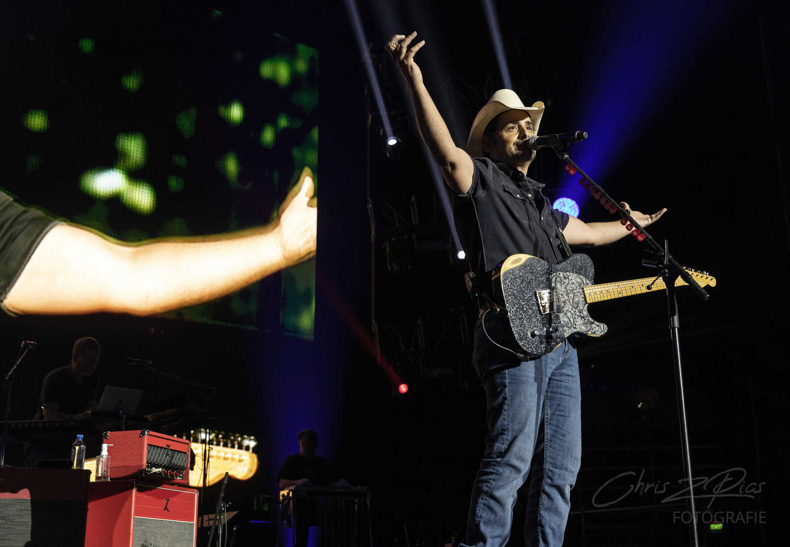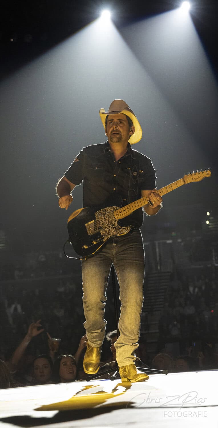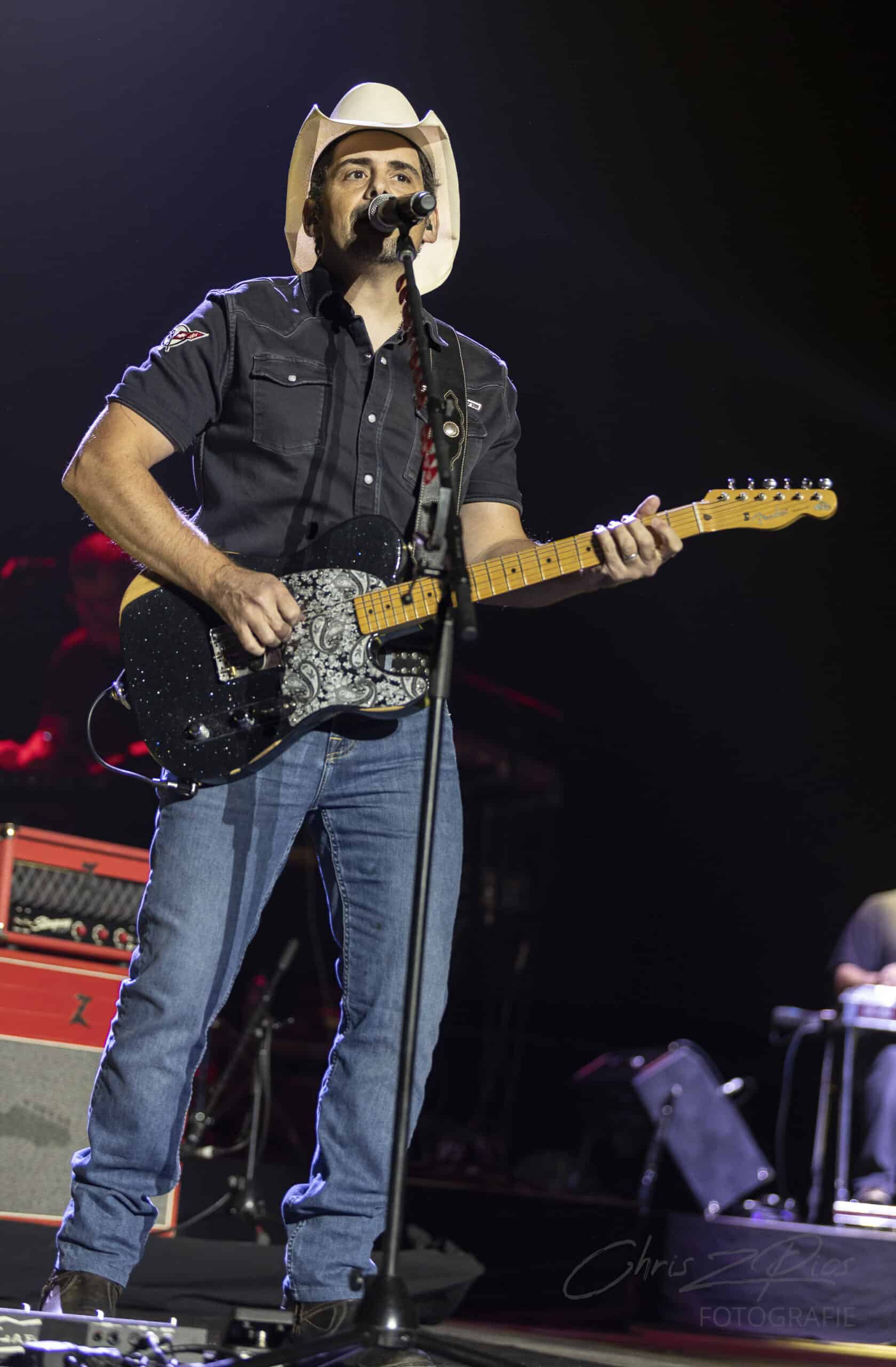 Brad Paisley closed out his World Tour at Auckland’s Spark Arena proving that his is not your father’s country music concert…integrating riffs from Prince and Van Halen, and featuring a water-skiing squirrel and a surprise marriage proposal.