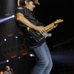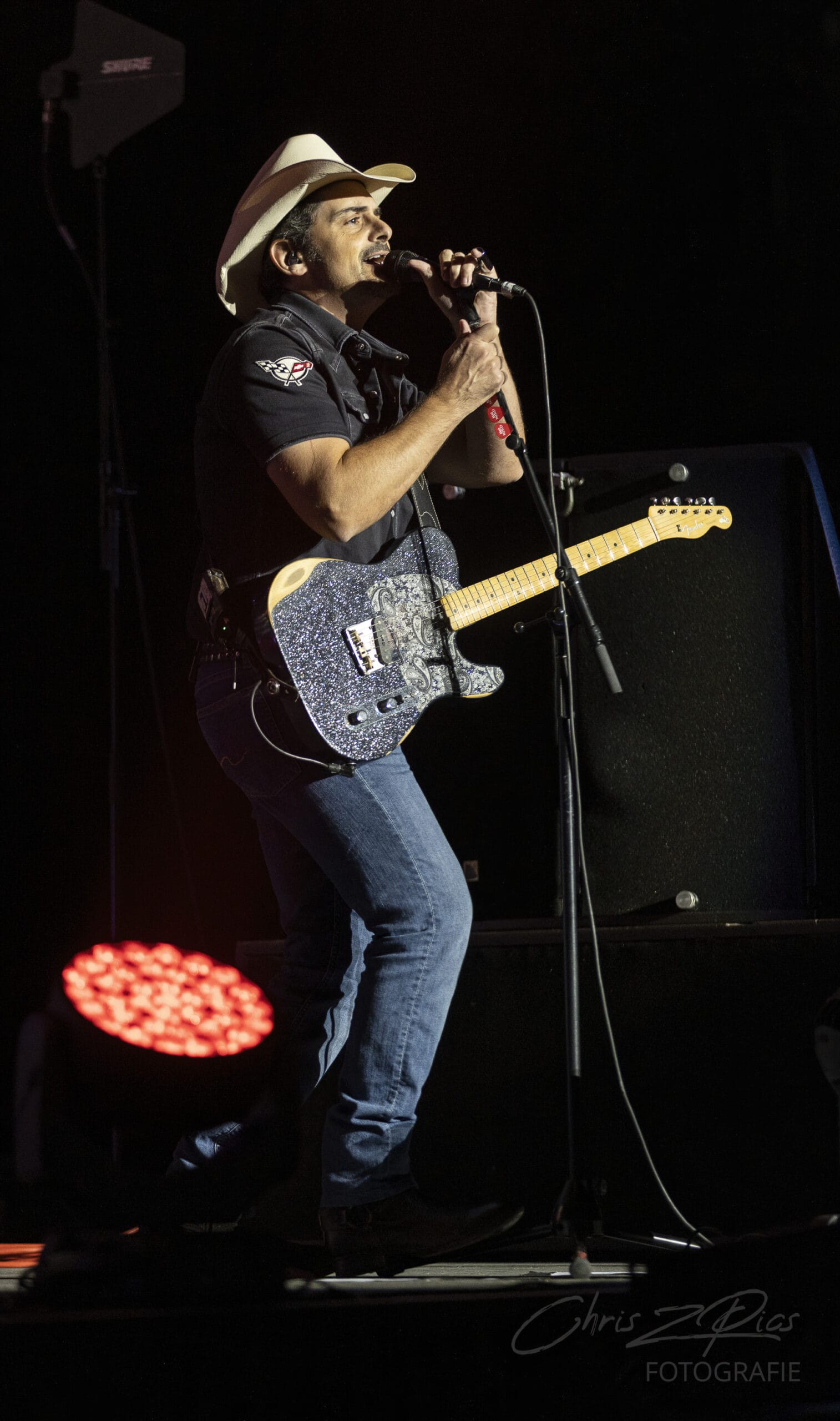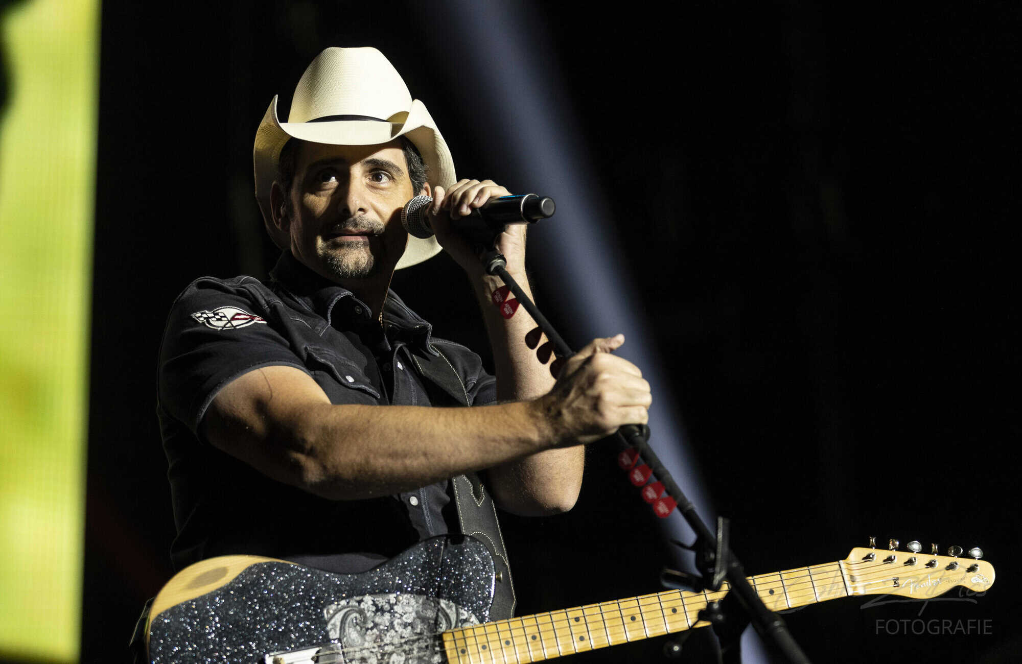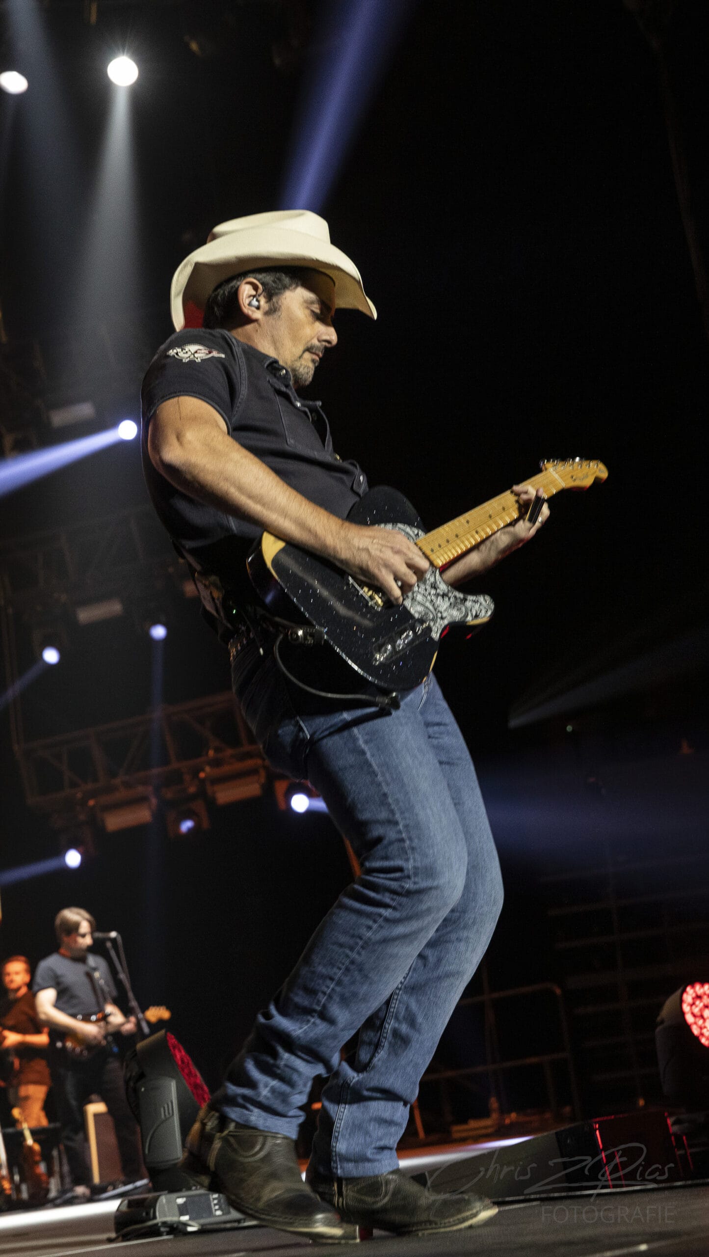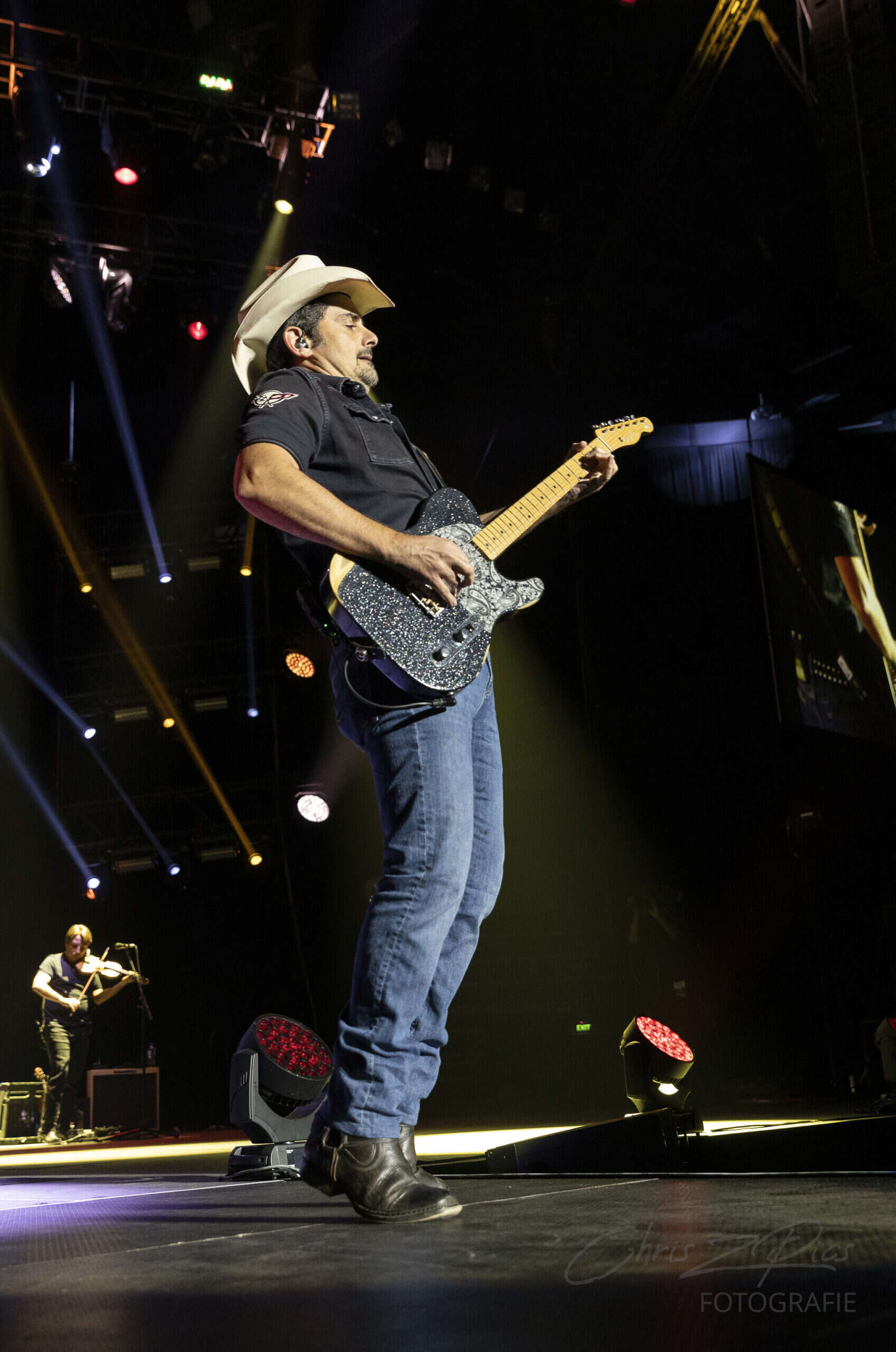 Brad Paisley closed out his World Tour at Auckland’s Spark Arena proving that his is not your father’s country music concert…integrating riffs from Prince and Van Halen, and featuring a water-skiing squirrel and a surprise marriage proposal.