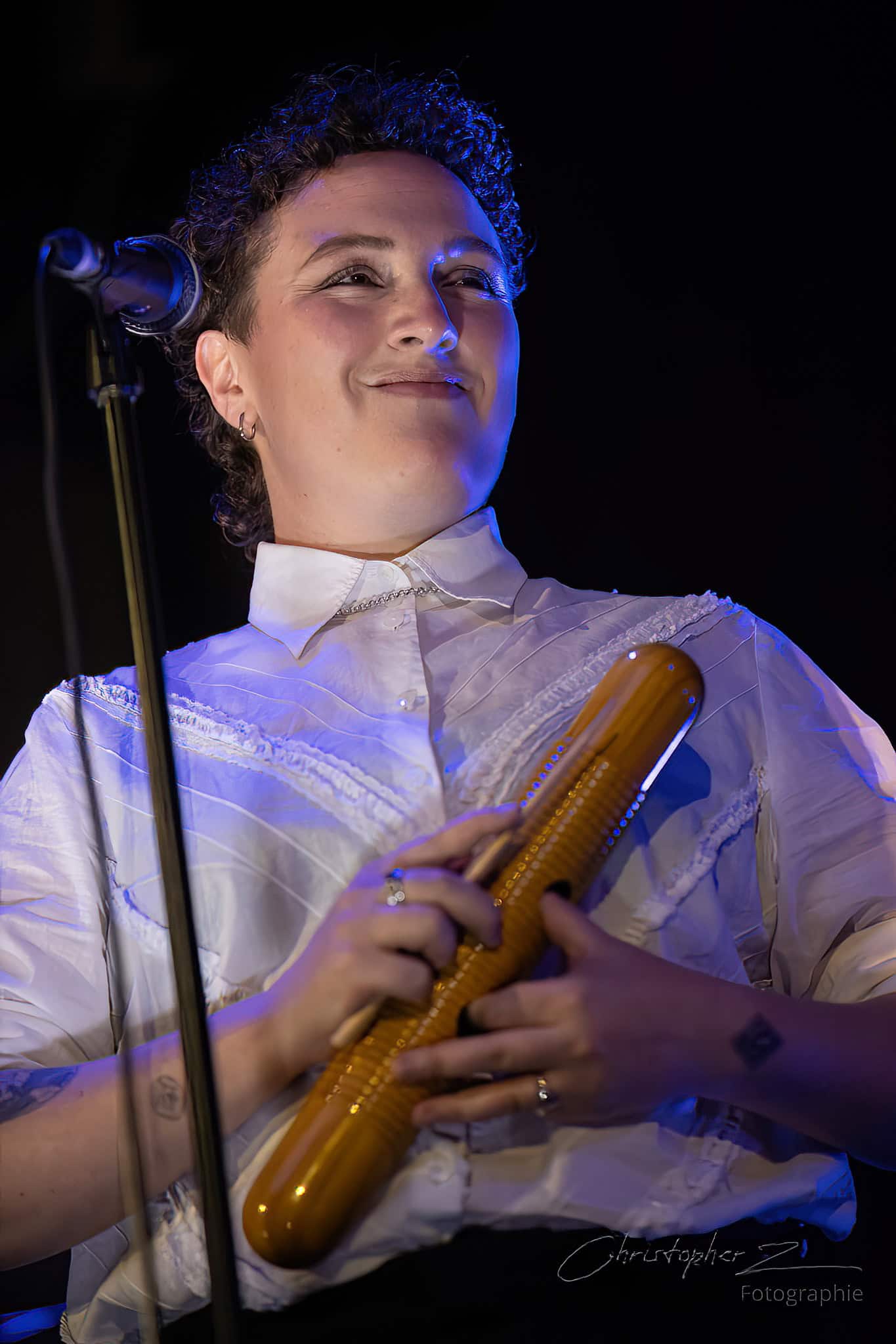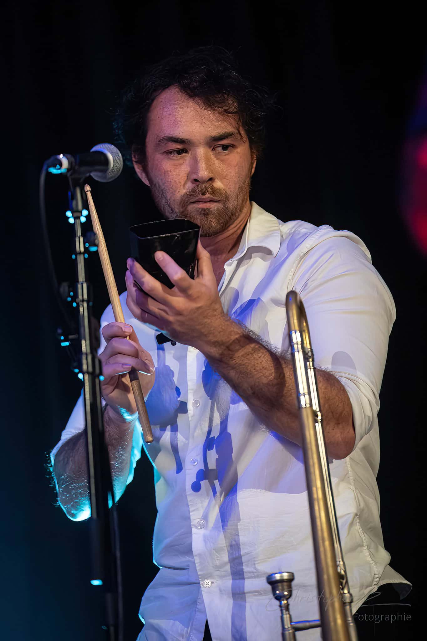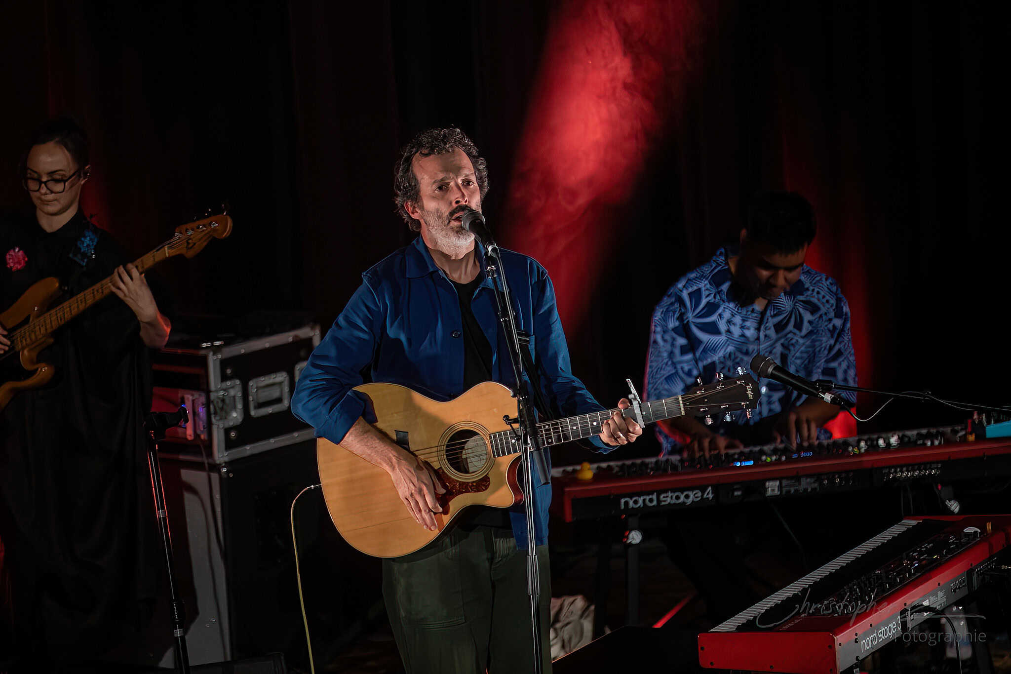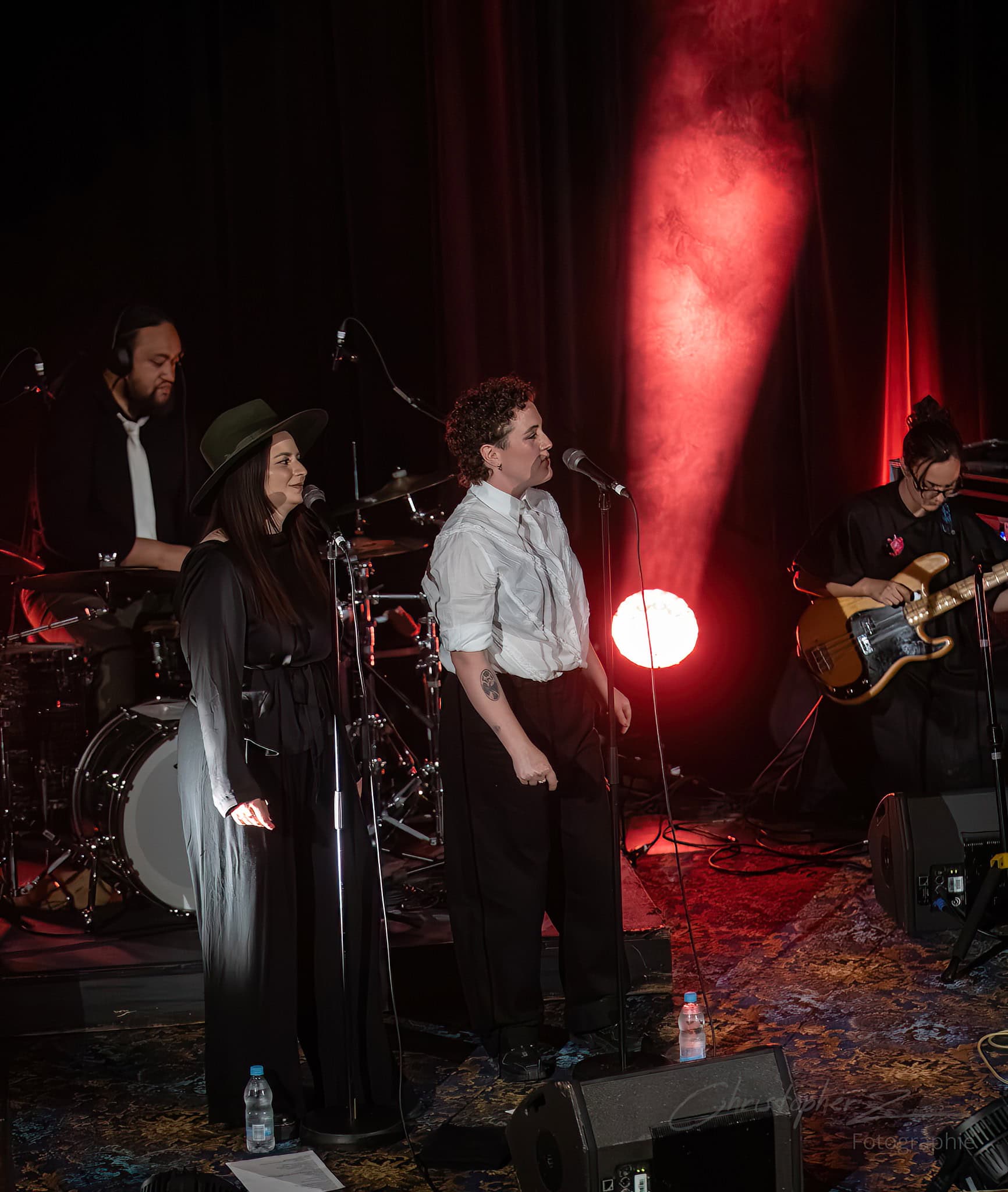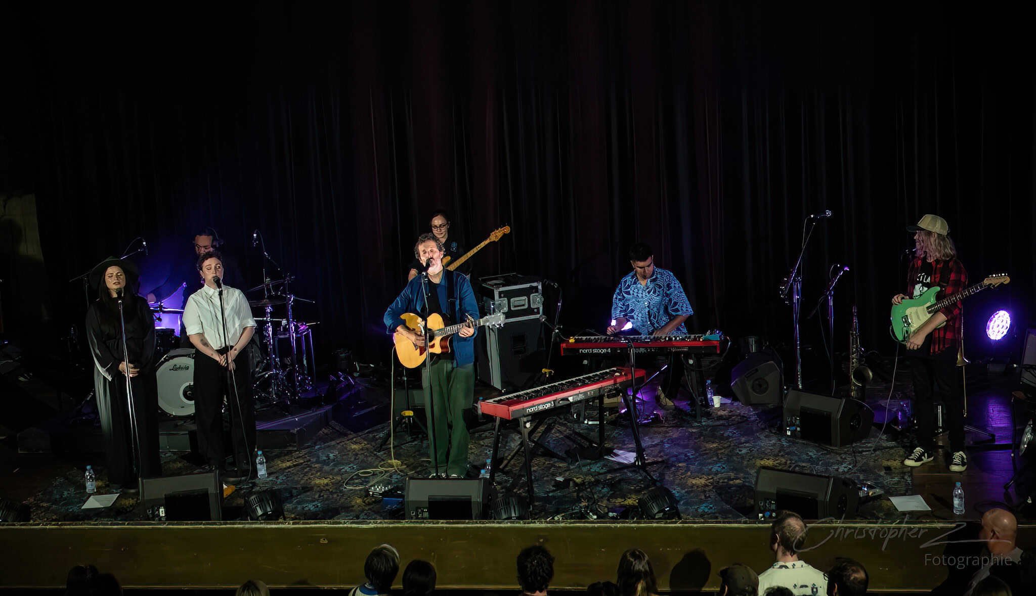 There were a few moments when I could have done with less schtick and more song…the Made Up Song and the volunteer actor bits tended to go on a bit long…but the momentum and energy picked up and by the time we got to The Most Beautiful Girl (In The Room) and Man Or Muppet, the place was buzzing…with Chris O’Connor…drummer for The Phoenix Foundation…adding some zing with his spoons.