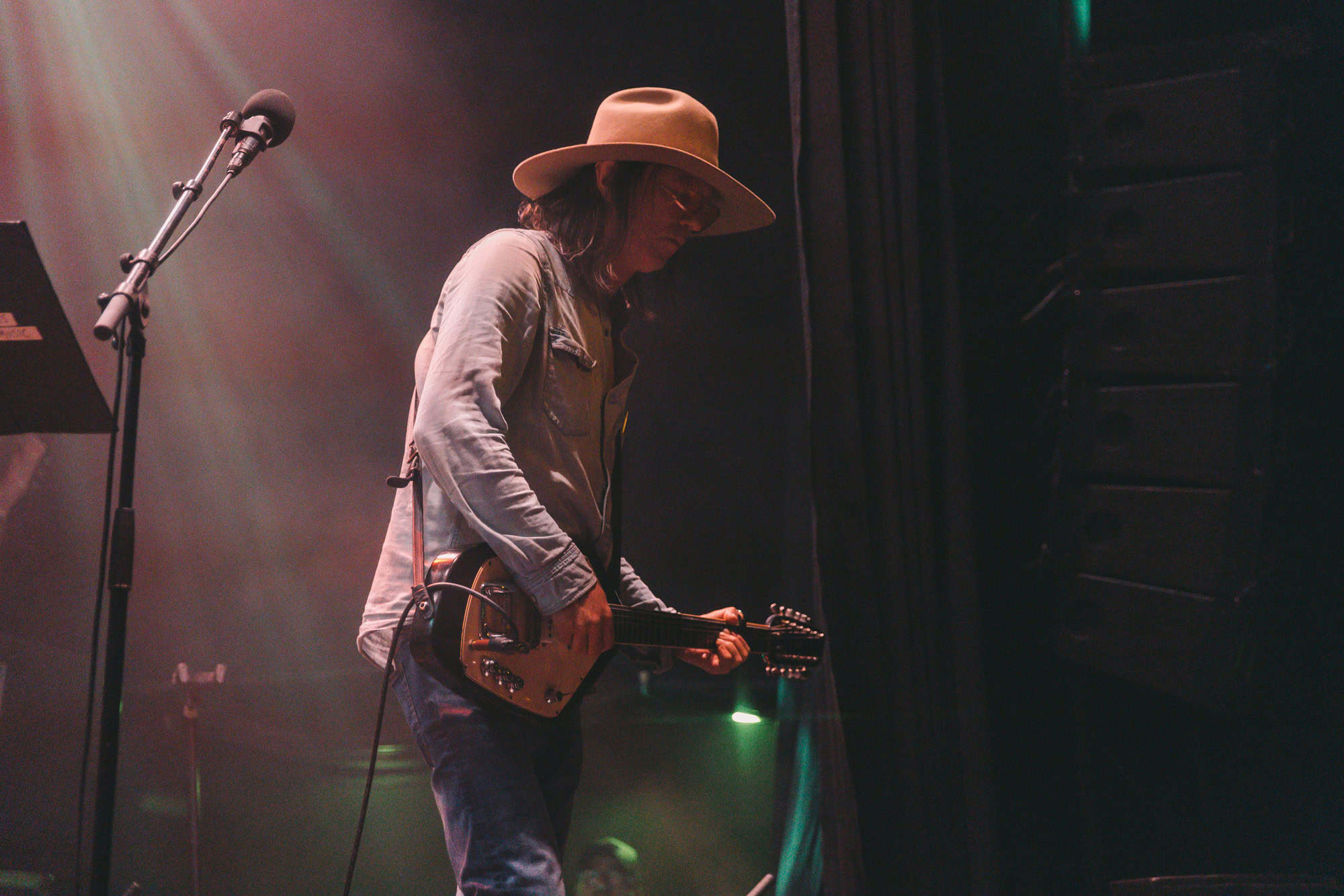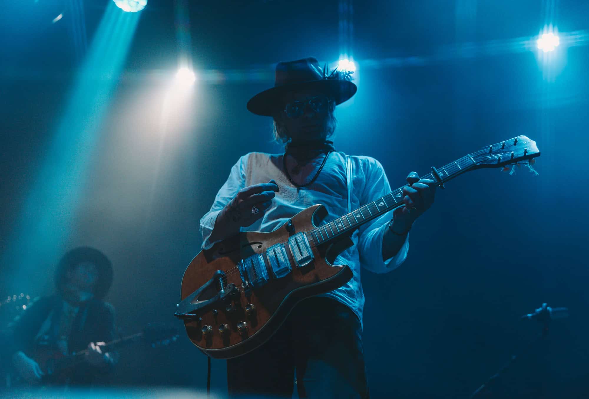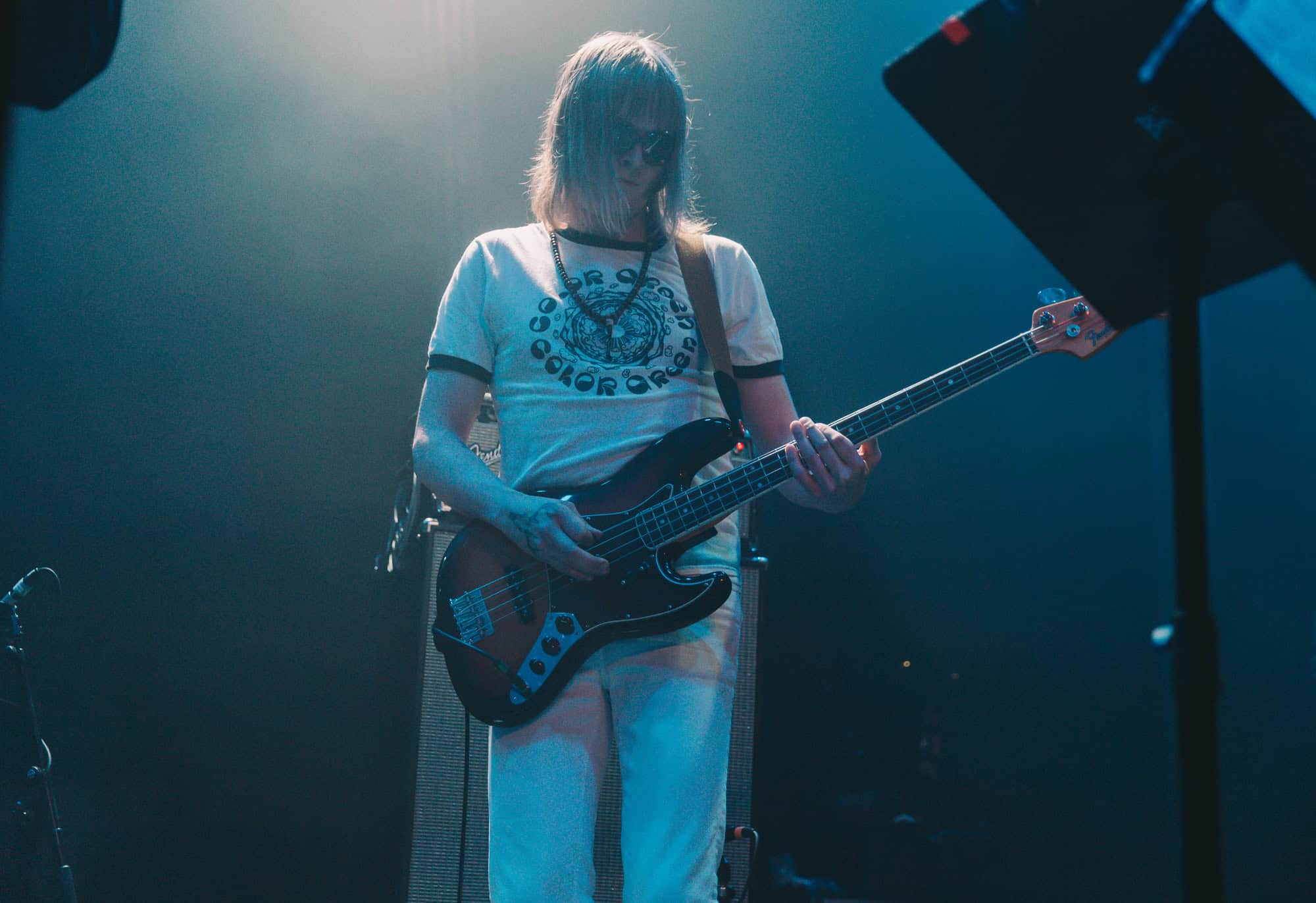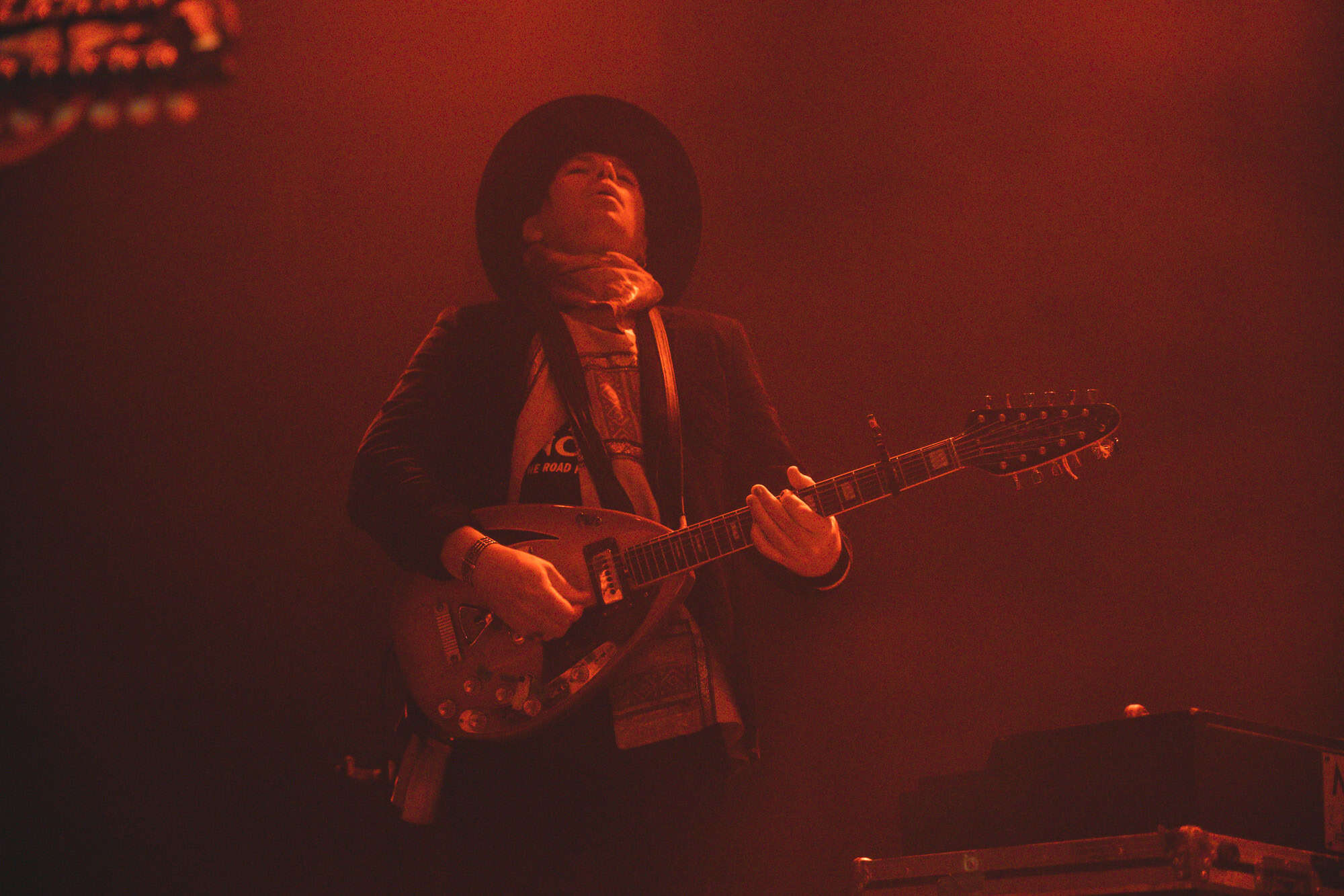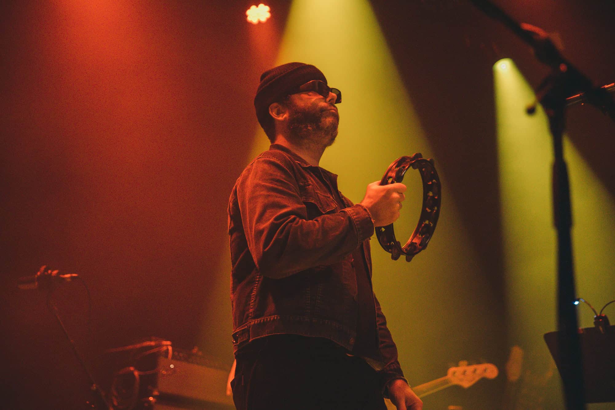 Mid-set, the sound is better, though Anton is flipping through his songbook and the setlist feels like it is in tatters, maybe they played my favourite from The Future Is Your Past, Your Mind Is My Cafe maybe they didn’t, or maybe it was a version. All throughout the night, Joel Gion (Mr Tambourine Man) is on and off stage. Somewhere about now, the maracas appear, later to be replaced by a dual tambourine and maraca combo, his presence is reassuring. As is the hugging, Anton, it seems is a hugger, and the bassist Hákon Aðalsteinsson is a recipient of much of Anton’s love, as is Anton’s guitar tech/personal assistant, he’s the one with the floppy Huggy Bear hat.