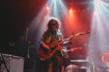 The Huggy Bear hatted one slings on a guitar and it’s now five guitars on stage for the final song Sailor, as the band leaves the stage, instruments are left onstage distorting, and turns into a jam session a drone of noise, with Anton Newcombe out of his safe space, mid-stage, back to the audience, in his element.