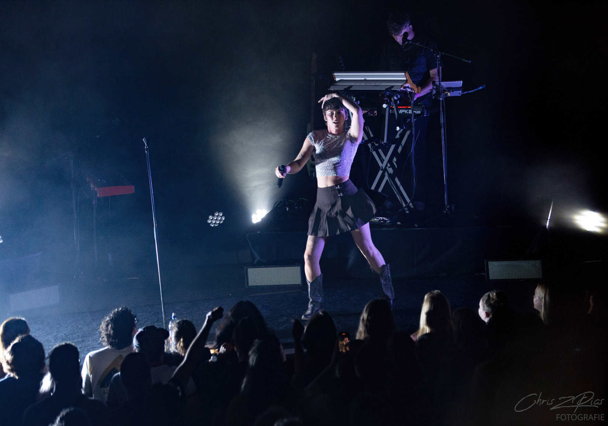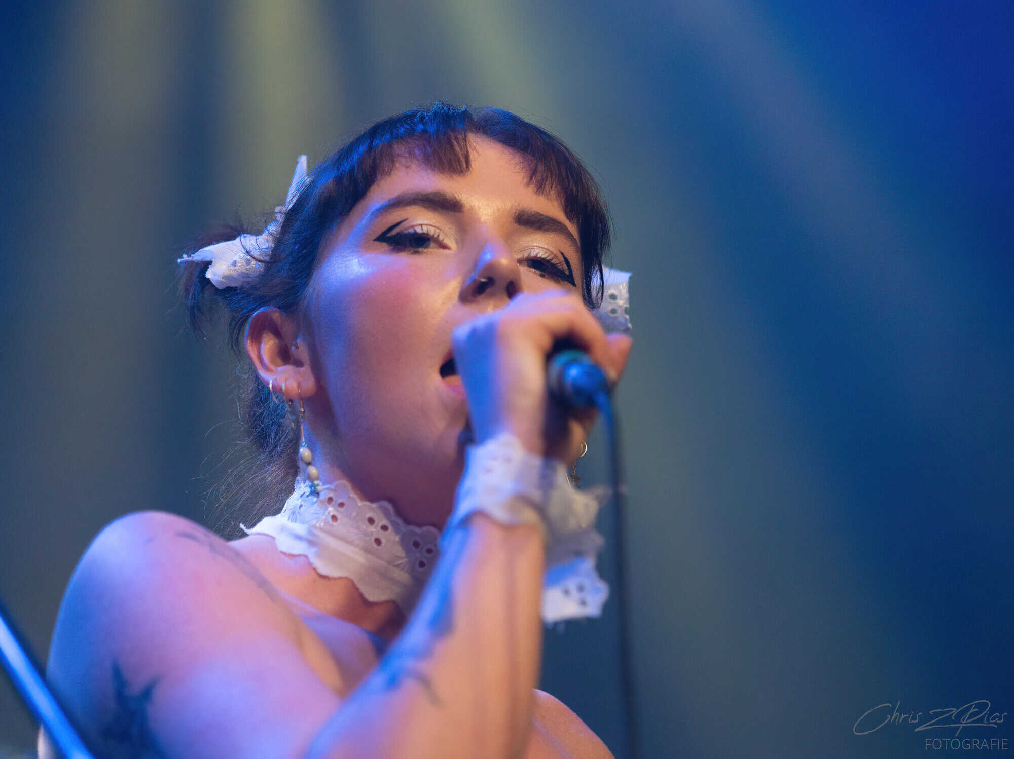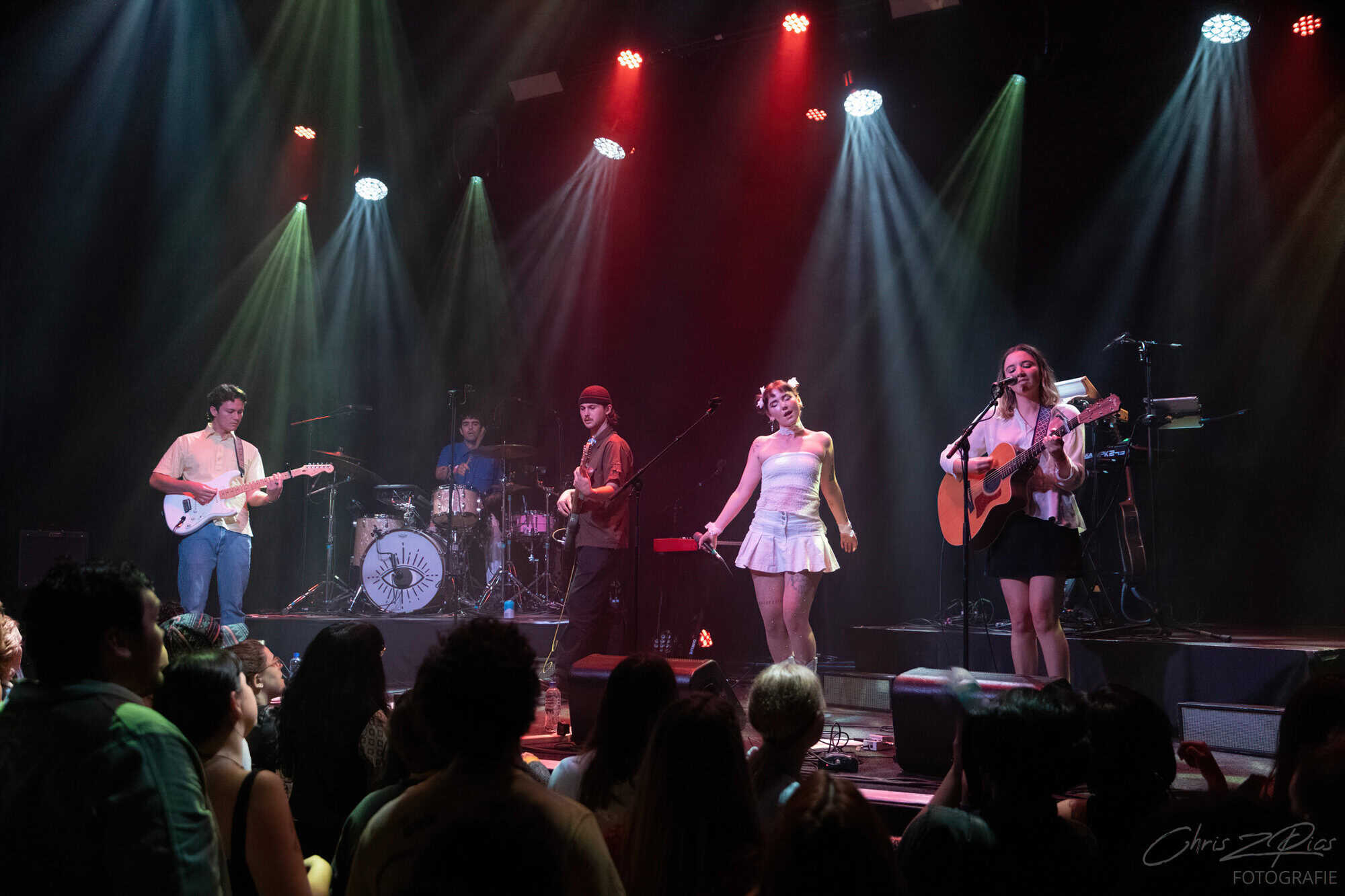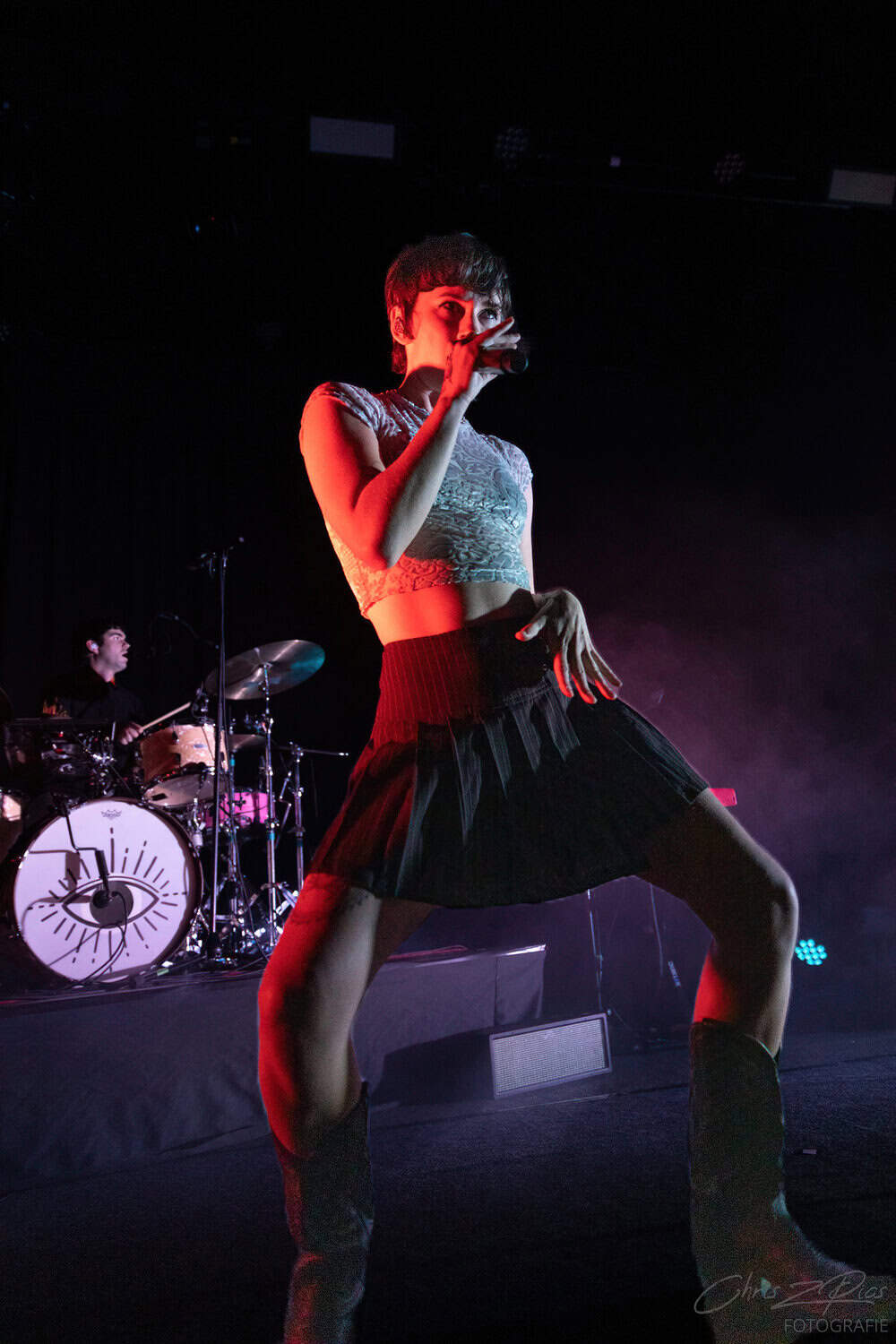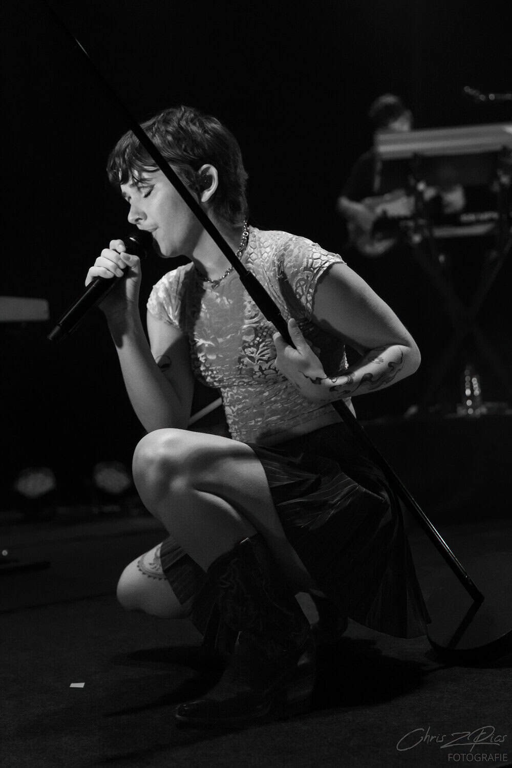 Even though she is young, she already has a brash and confident stage manner. Dressed in a tutu she has the presence of a Lolita. Eerily reminds me of seeing a young Benee on stage when she was fronting a teen band.
