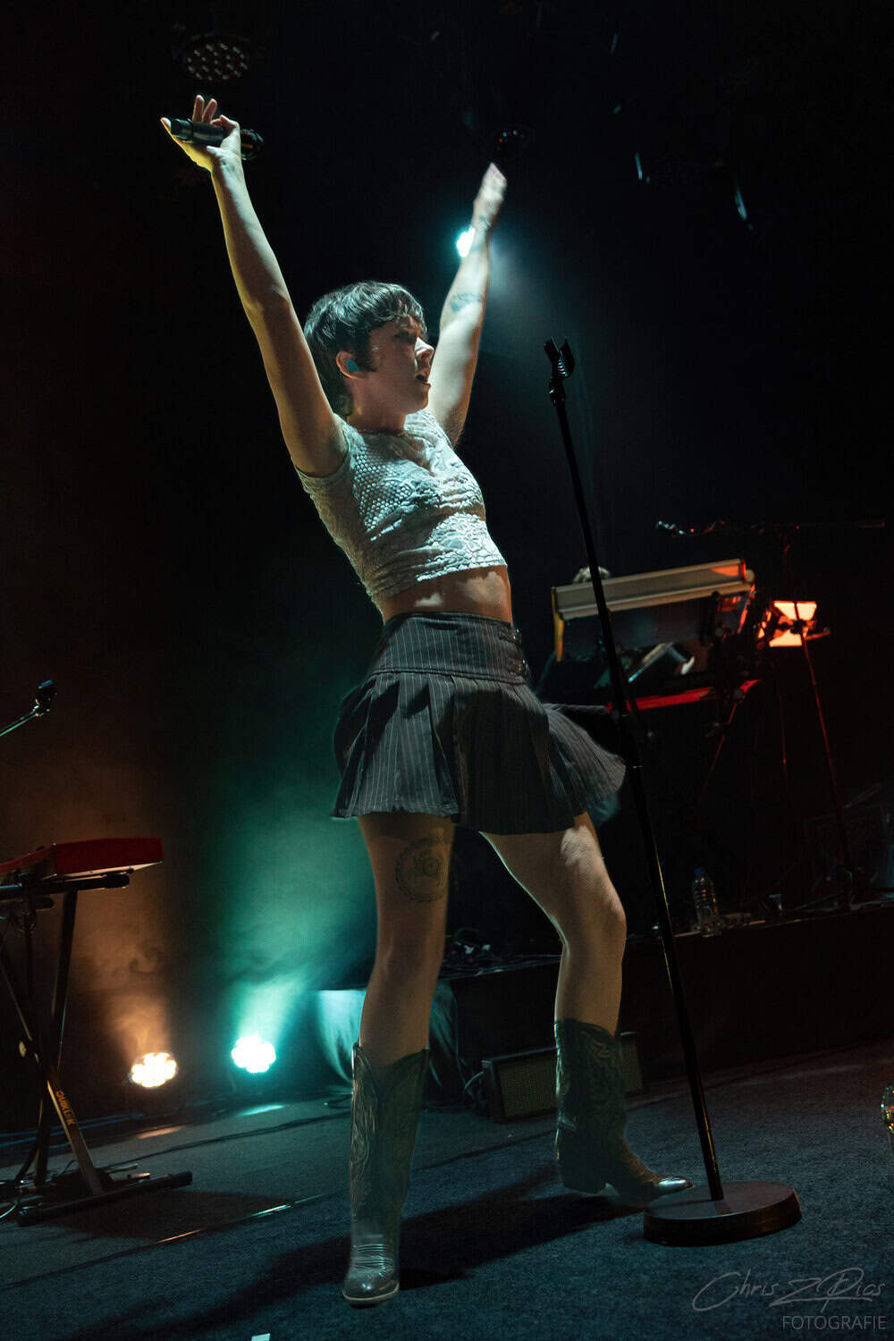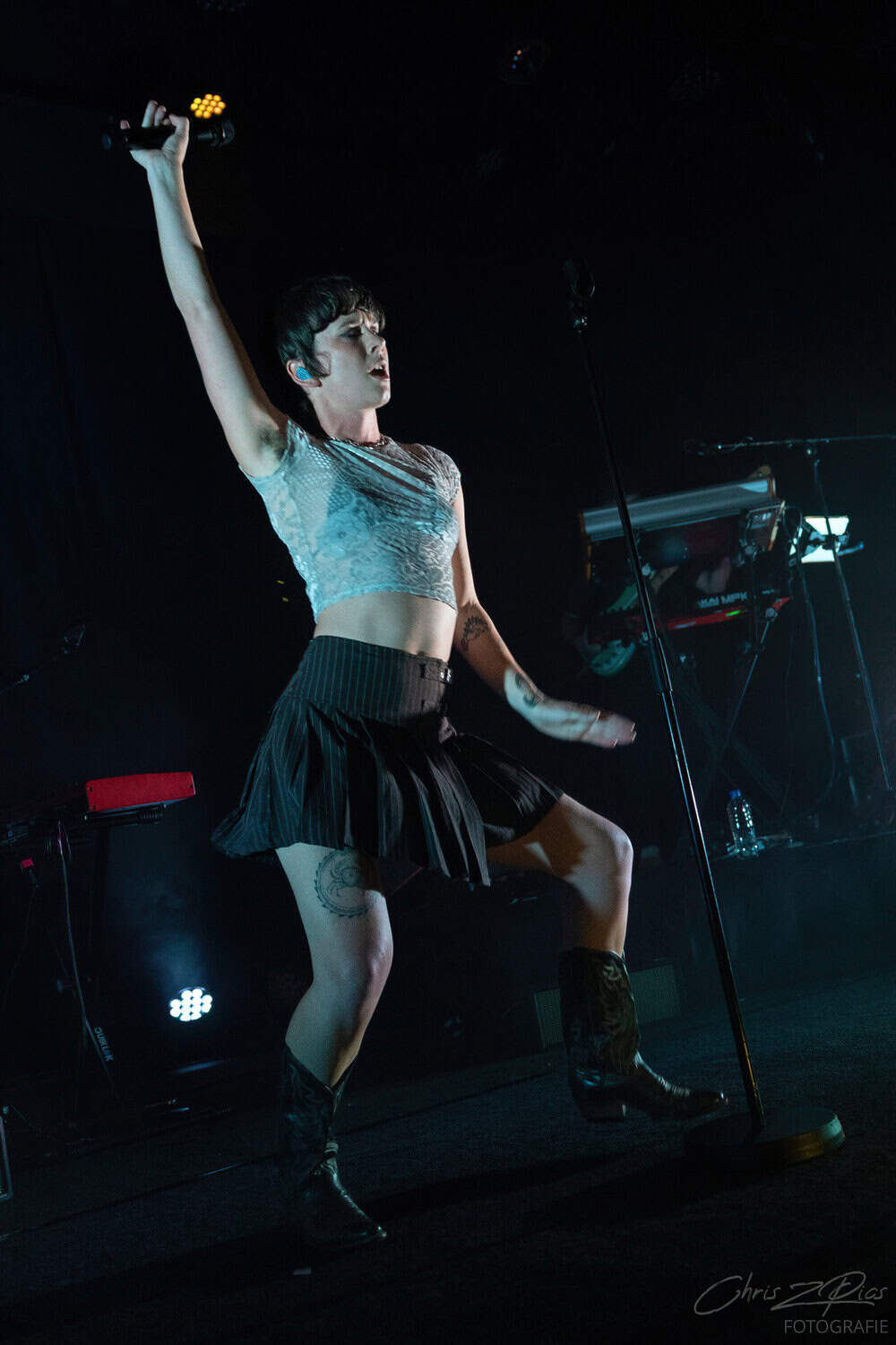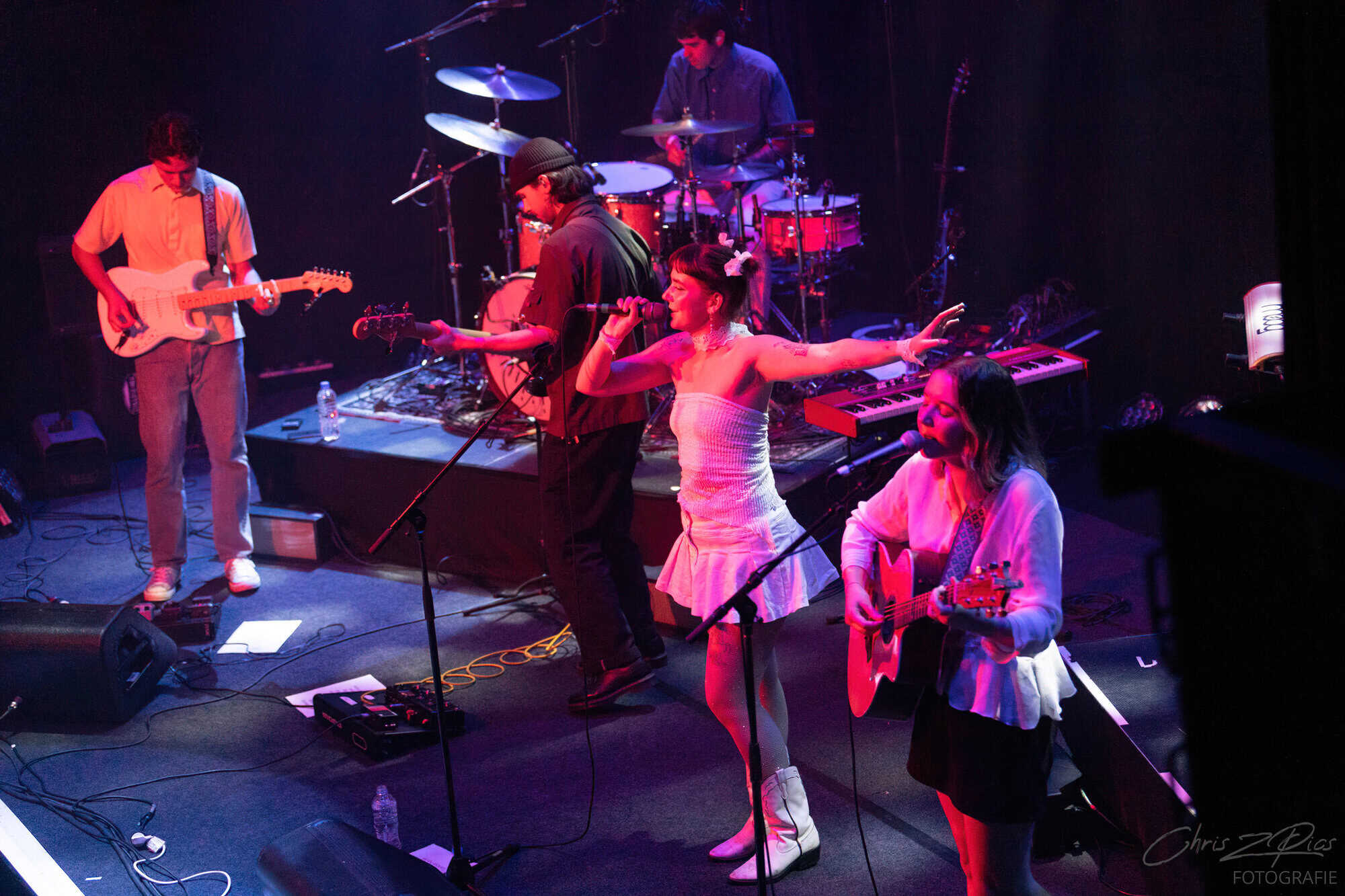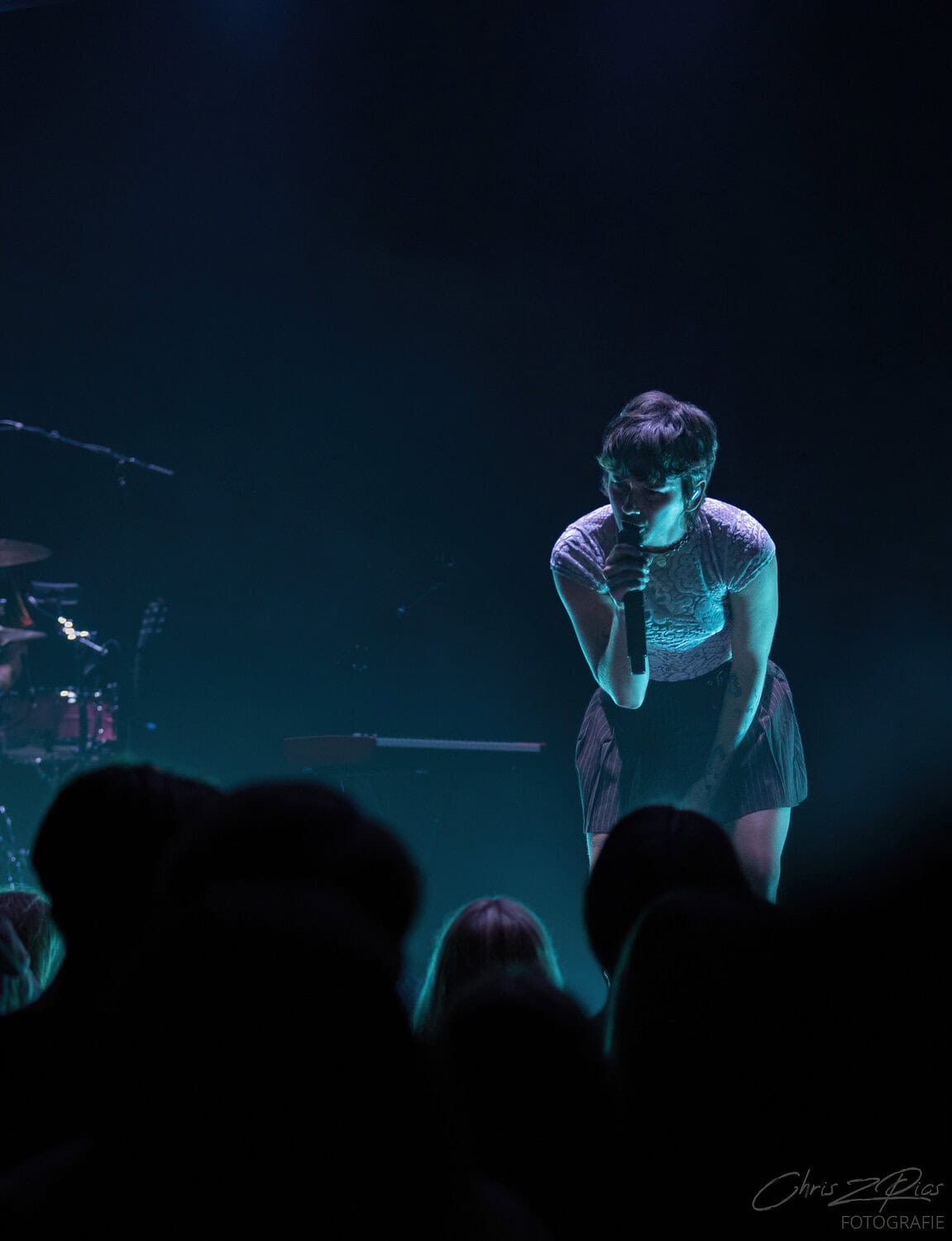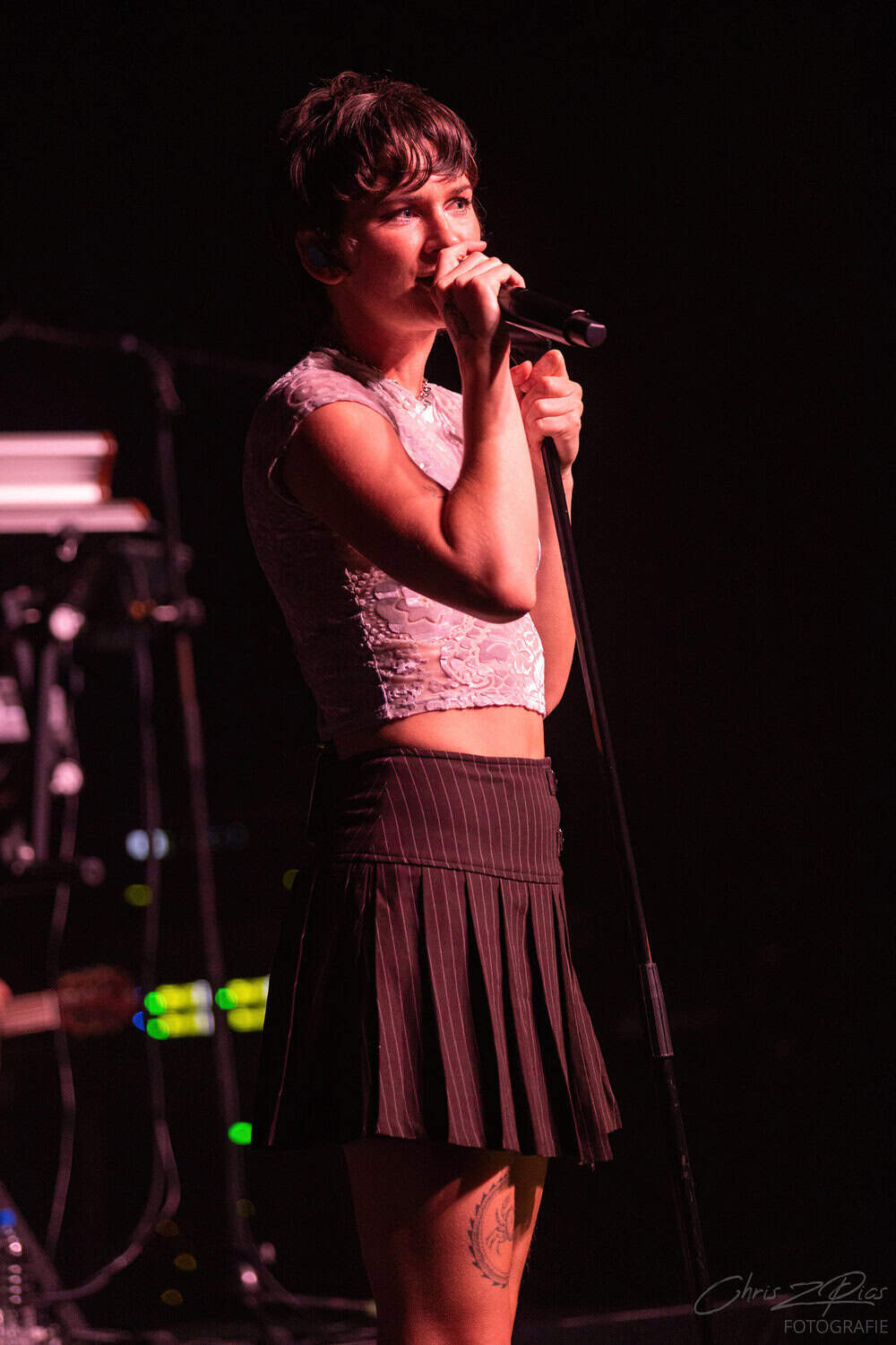 Even though she is young, she already has a brash and confident stage manner. Dressed in a tutu she has the presence of a Lolita. Eerily reminds me of seeing a young Benee on stage when she was fronting a teen band.