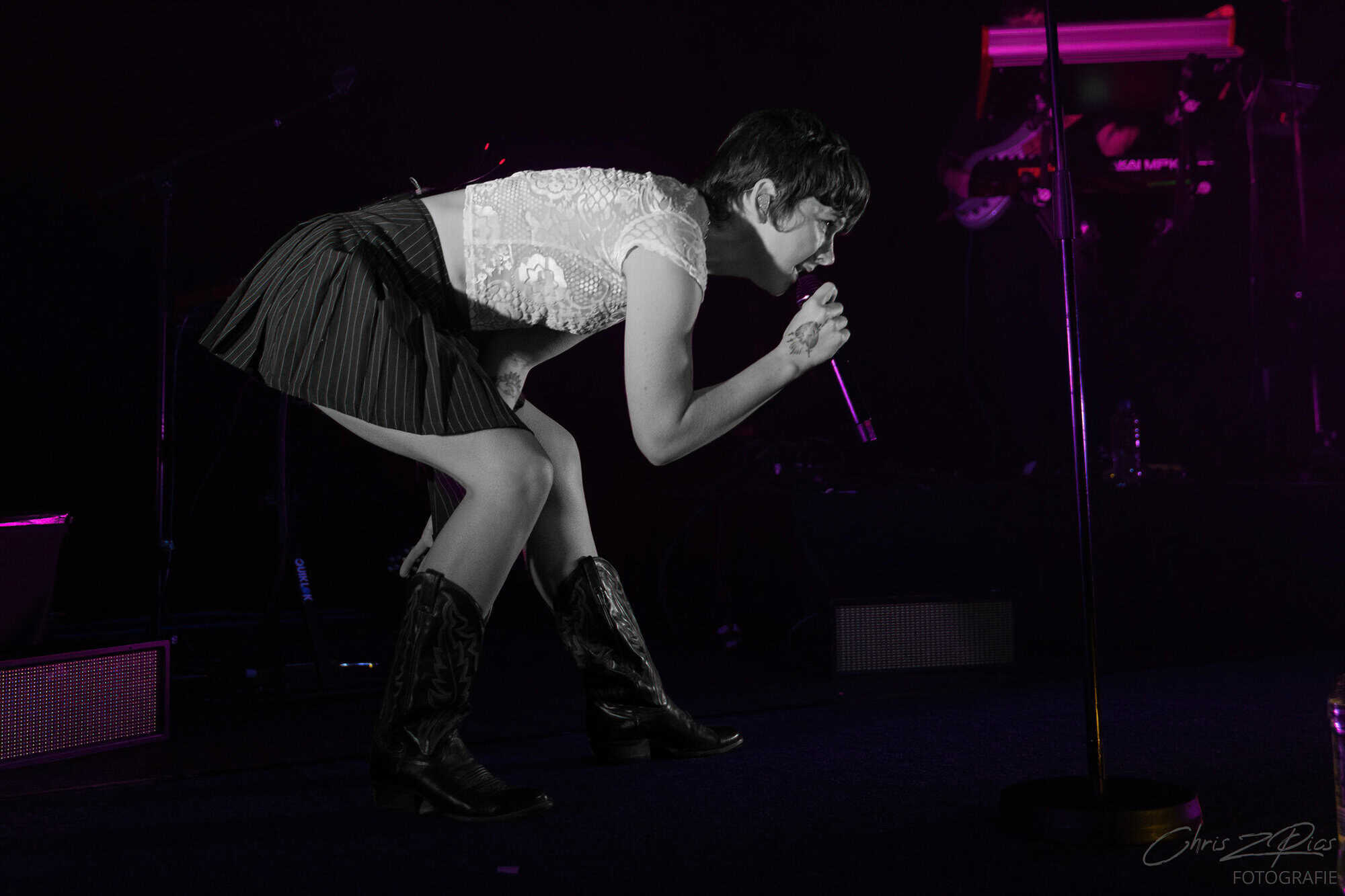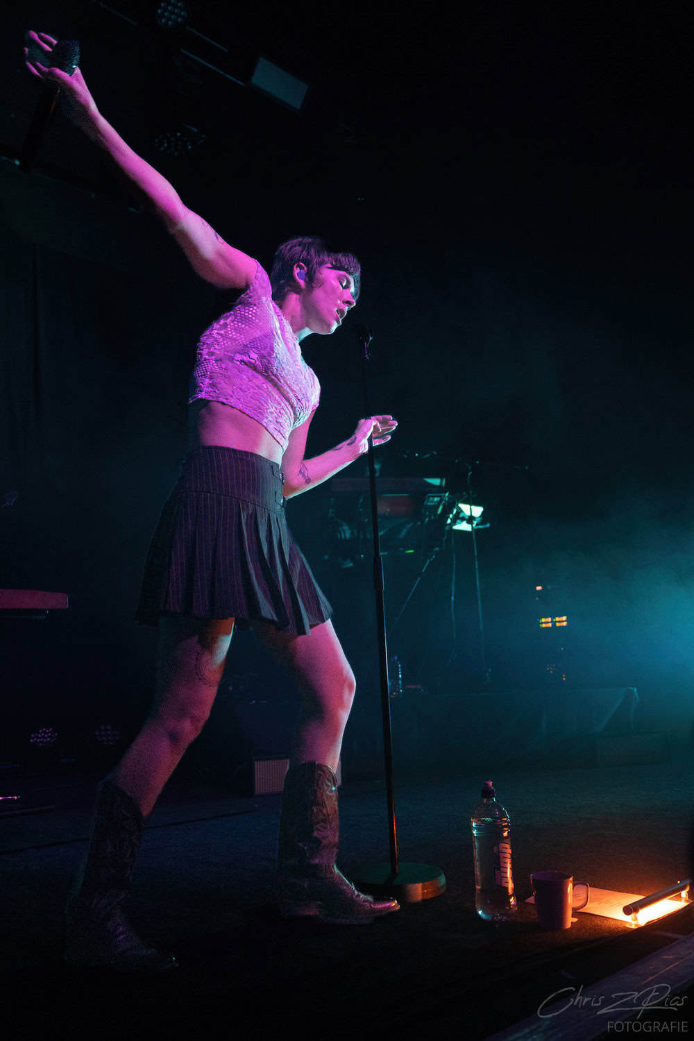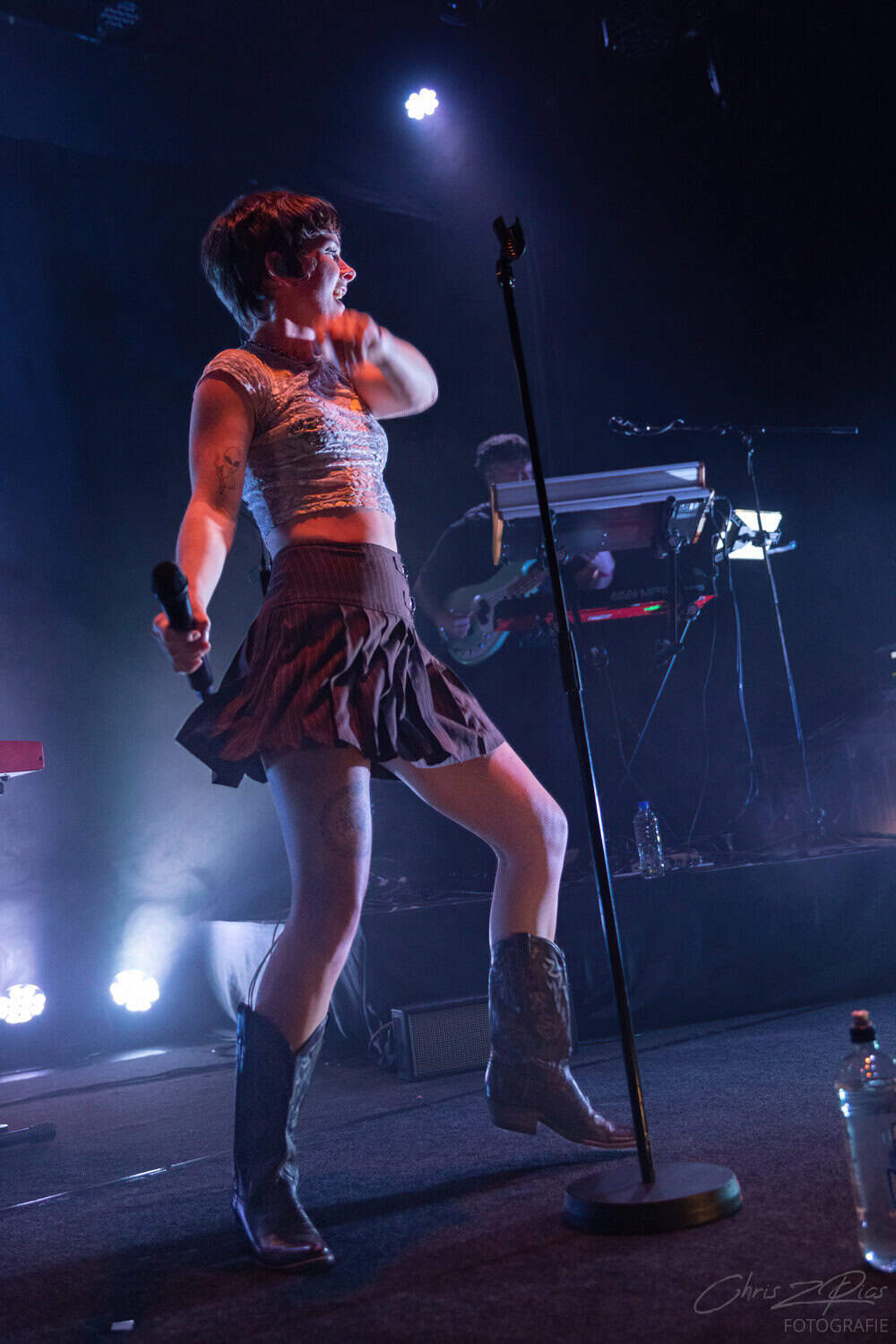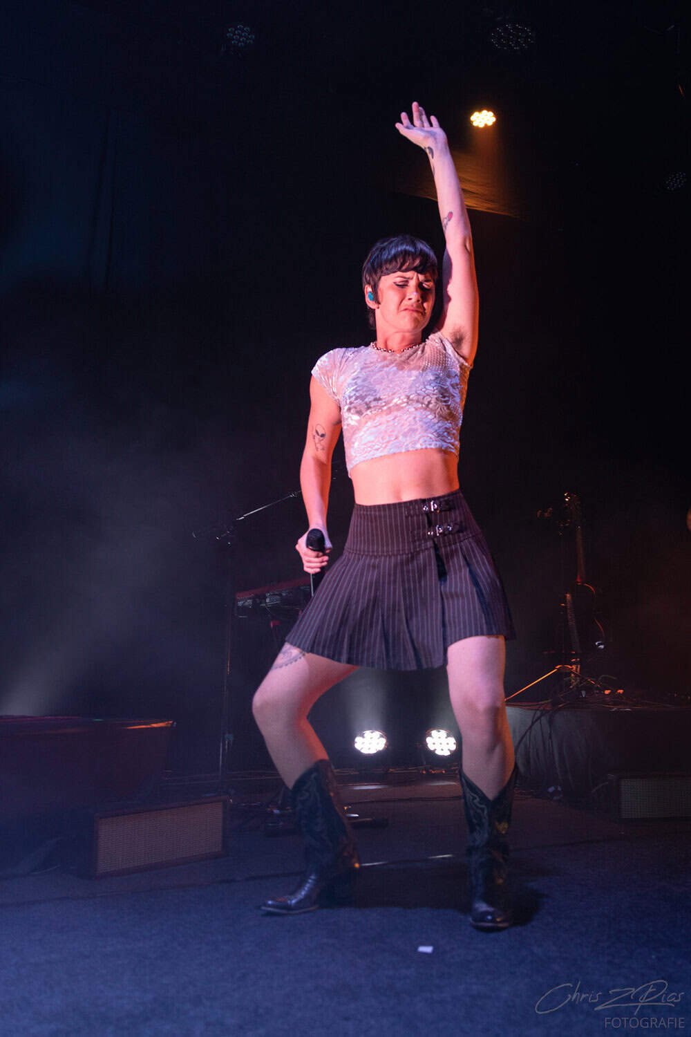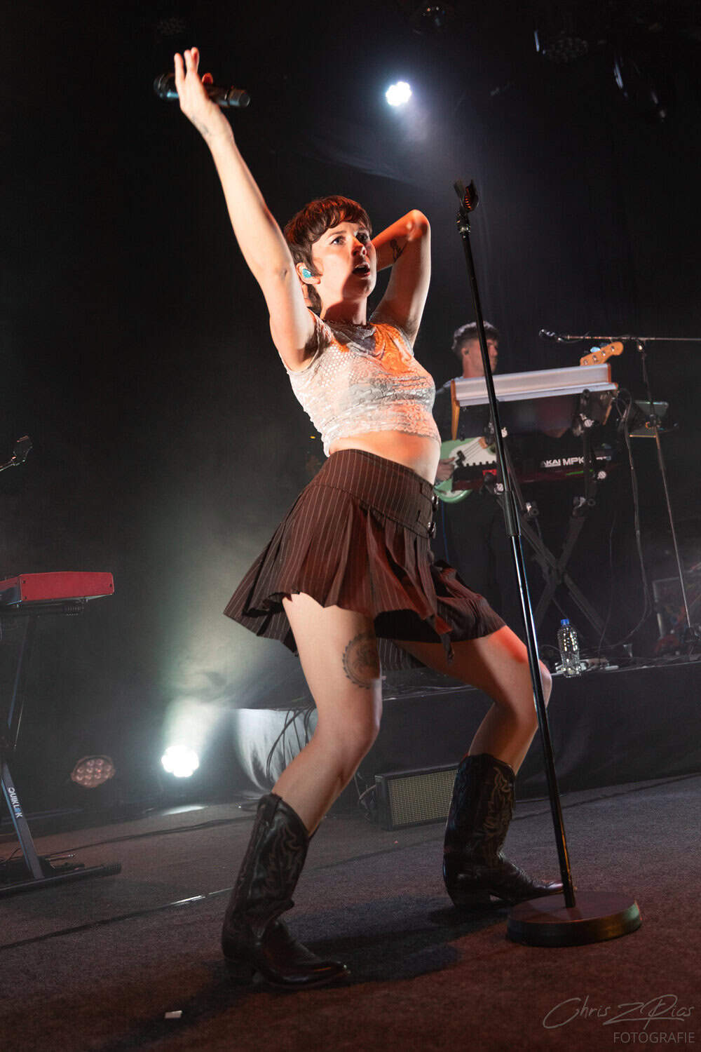 Even though she is young, she already has a brash and confident stage manner. Dressed in a tutu she has the presence of a Lolita. Eerily reminds me of seeing a young Benee on stage when she was fronting a teen band.