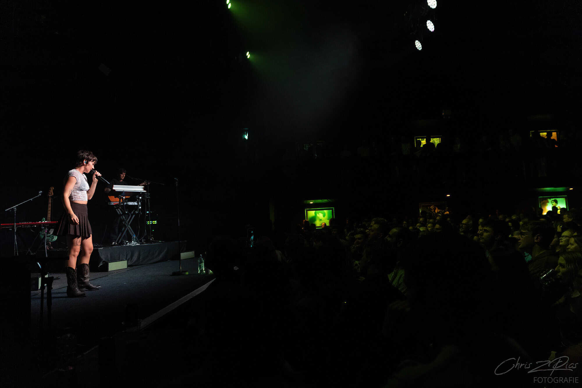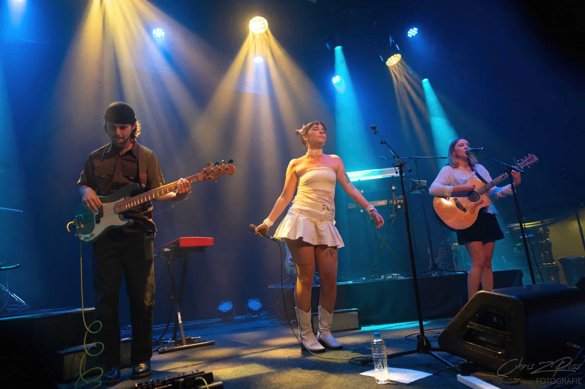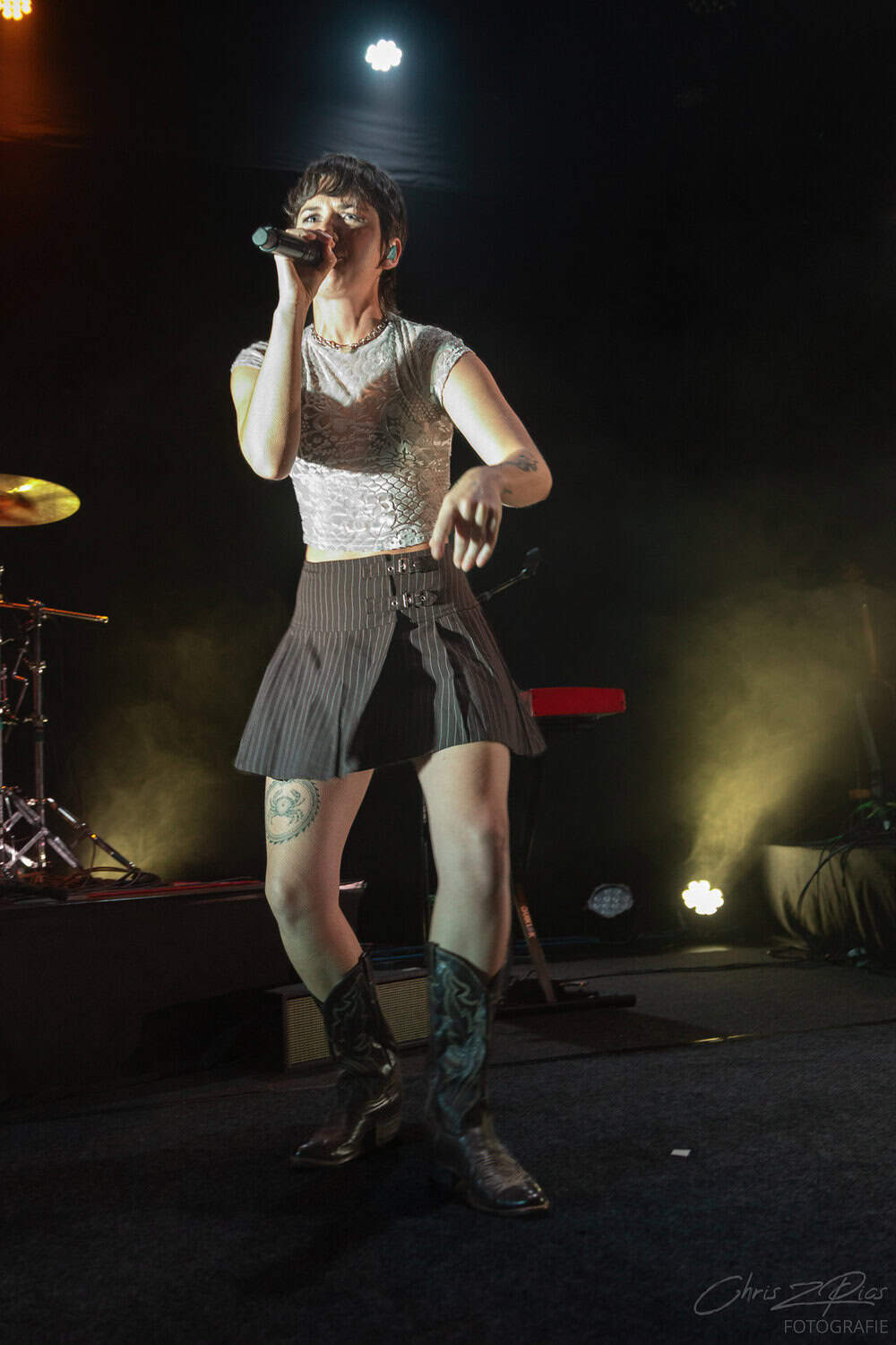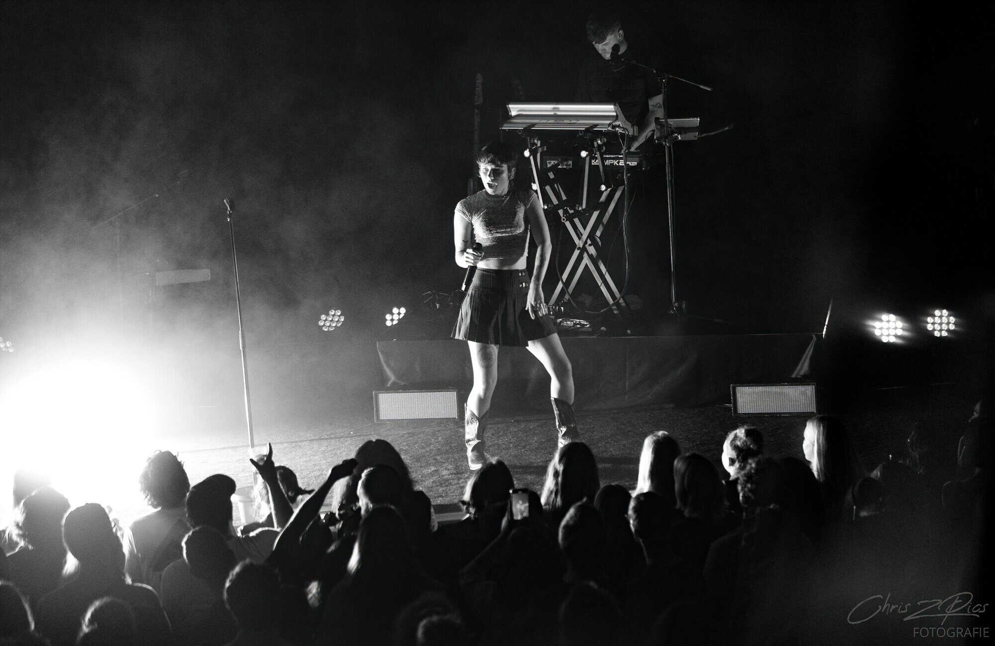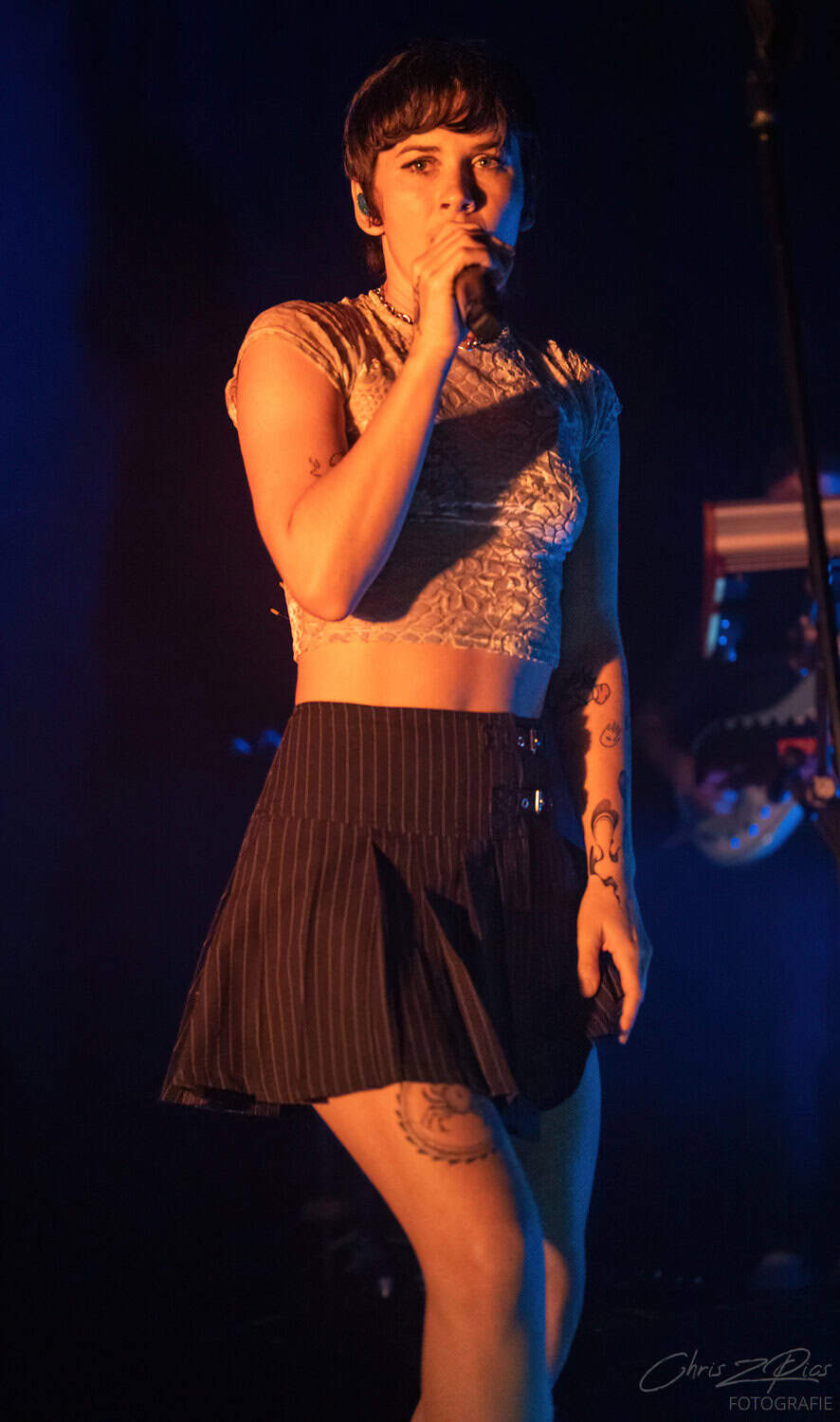 Even though she is young, she already has a brash and confident stage manner. Dressed in a tutu she has the presence of a Lolita. Eerily reminds me of seeing a young Benee on stage when she was fronting a teen band.