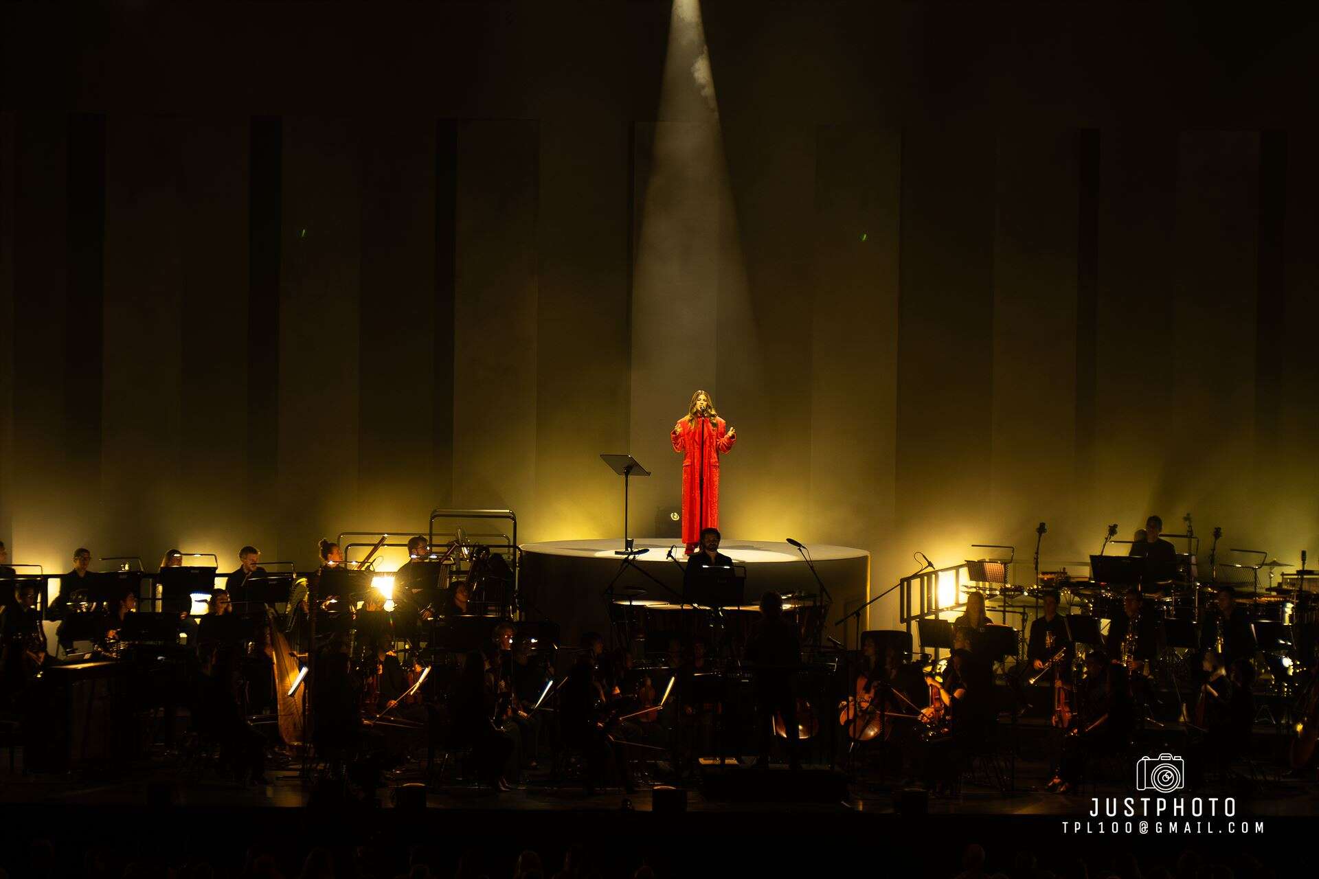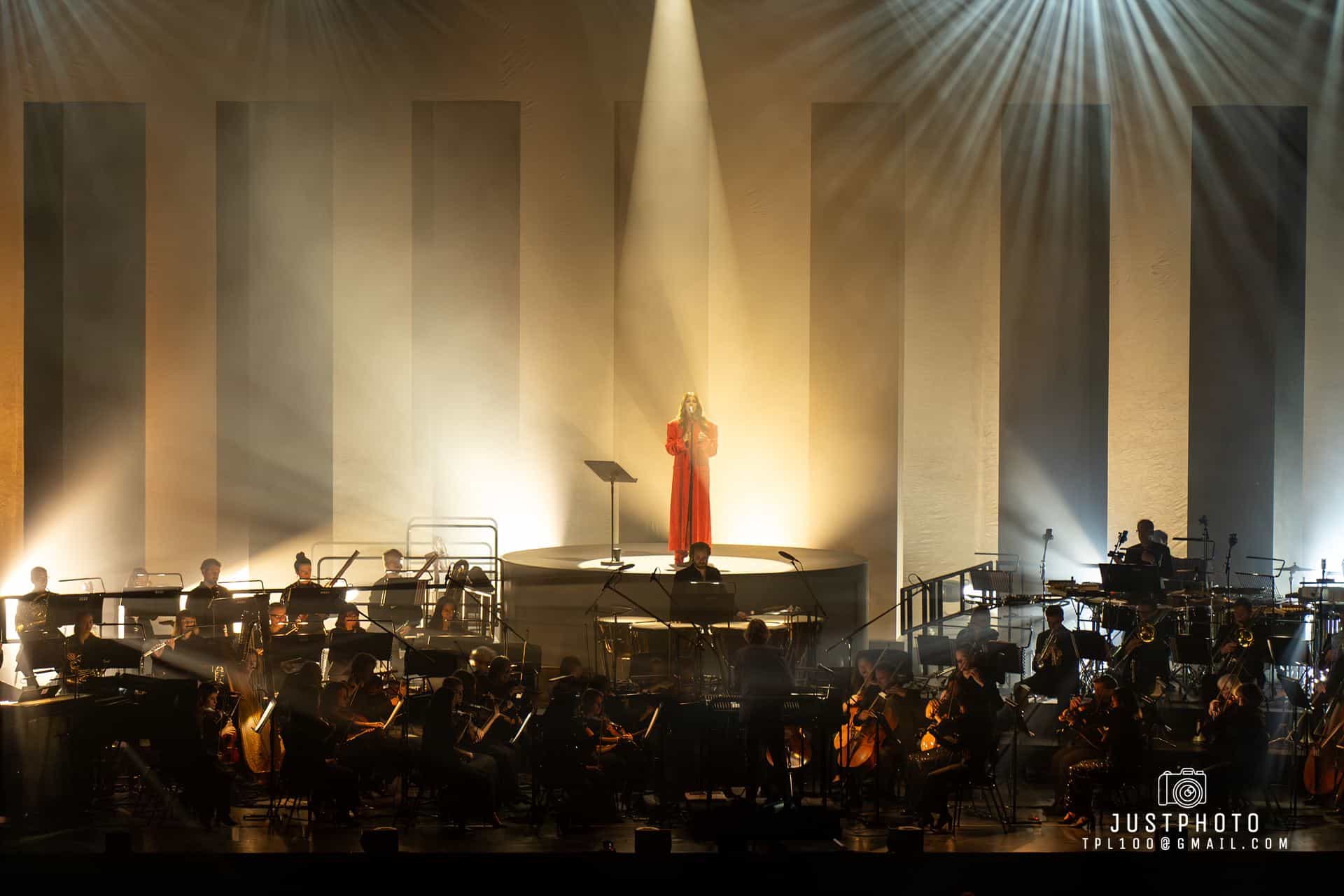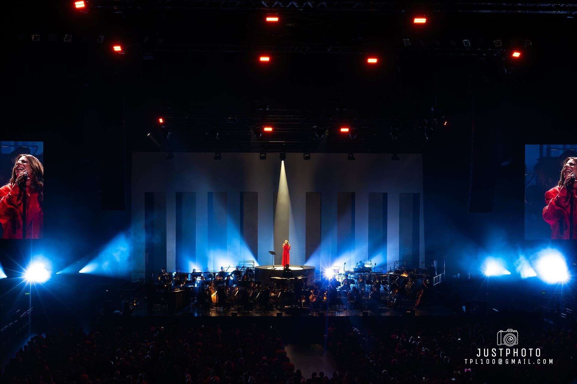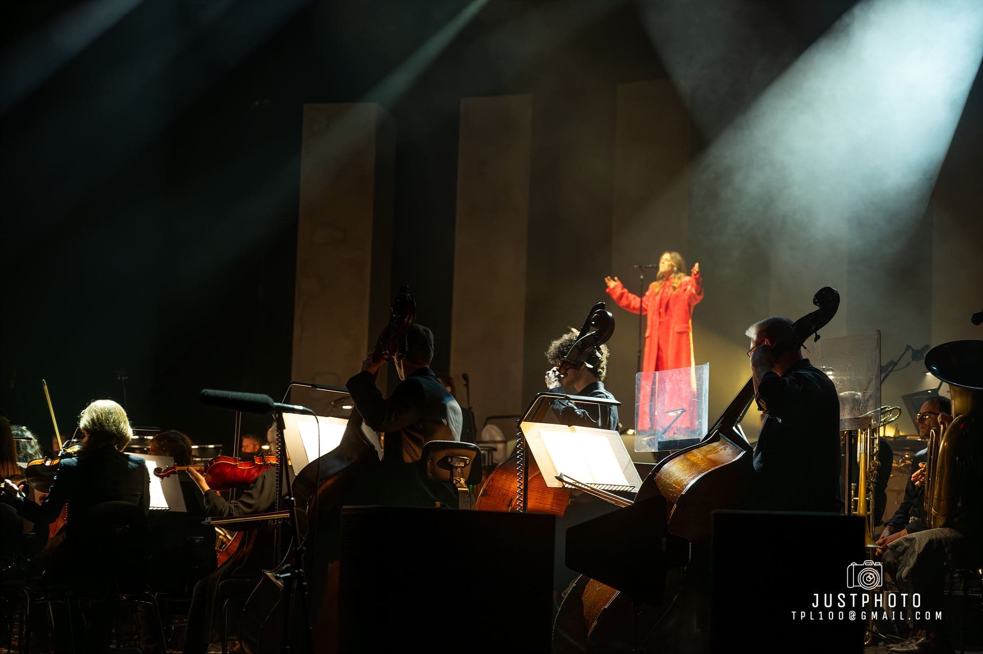 The stage set and lighting was impressive for Brooke’s set…nine tall pillars (or obilisks) lined up behind her as she stood on a raised platform overseeing the Philharmonia in her deep red gown…with very 80’s shoulder pads.