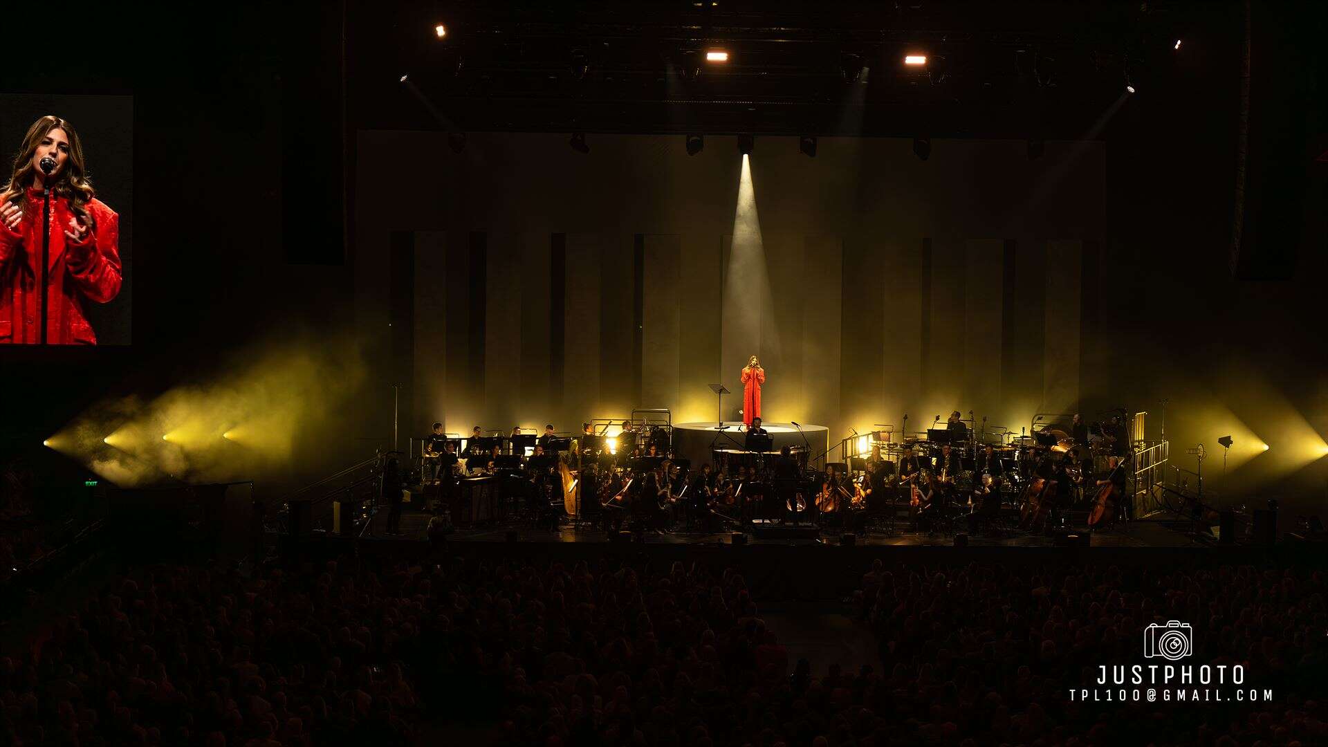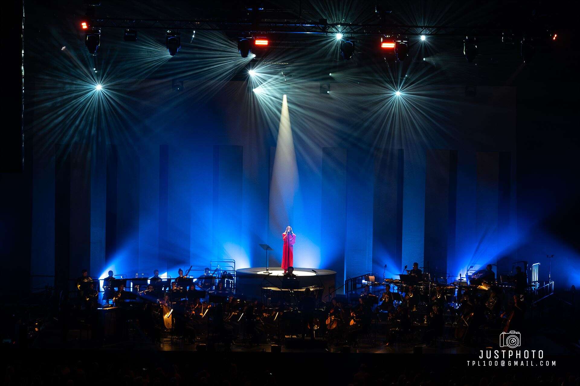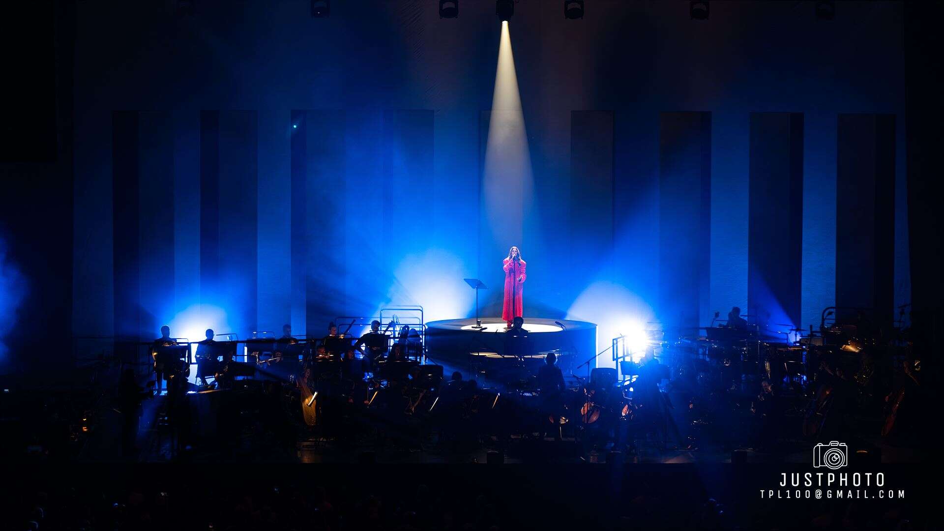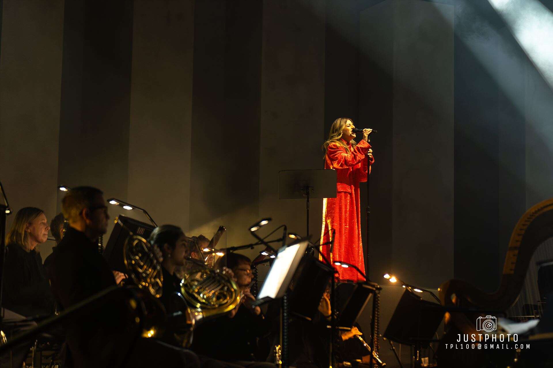 The stage set and lighting was impressive for Brooke’s set…nine tall pillars (or obilisks) lined up behind her as she stood on a raised platform overseeing the Philharmonia in her deep red gown…with very 80’s shoulder pads.