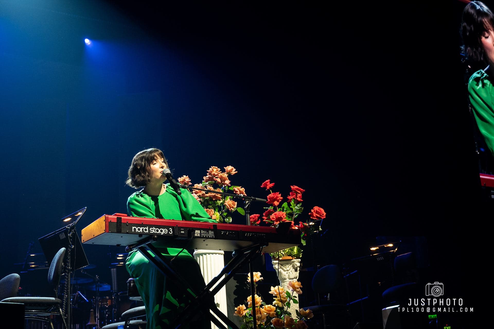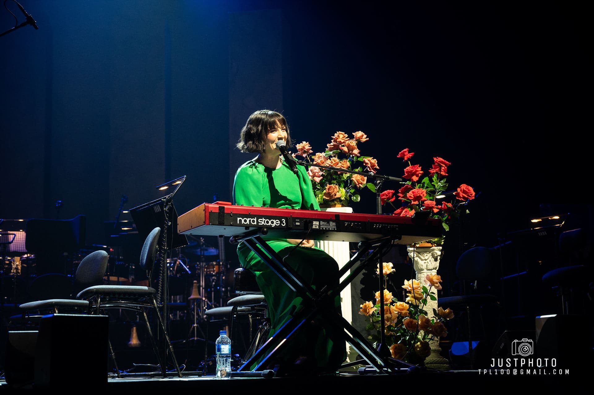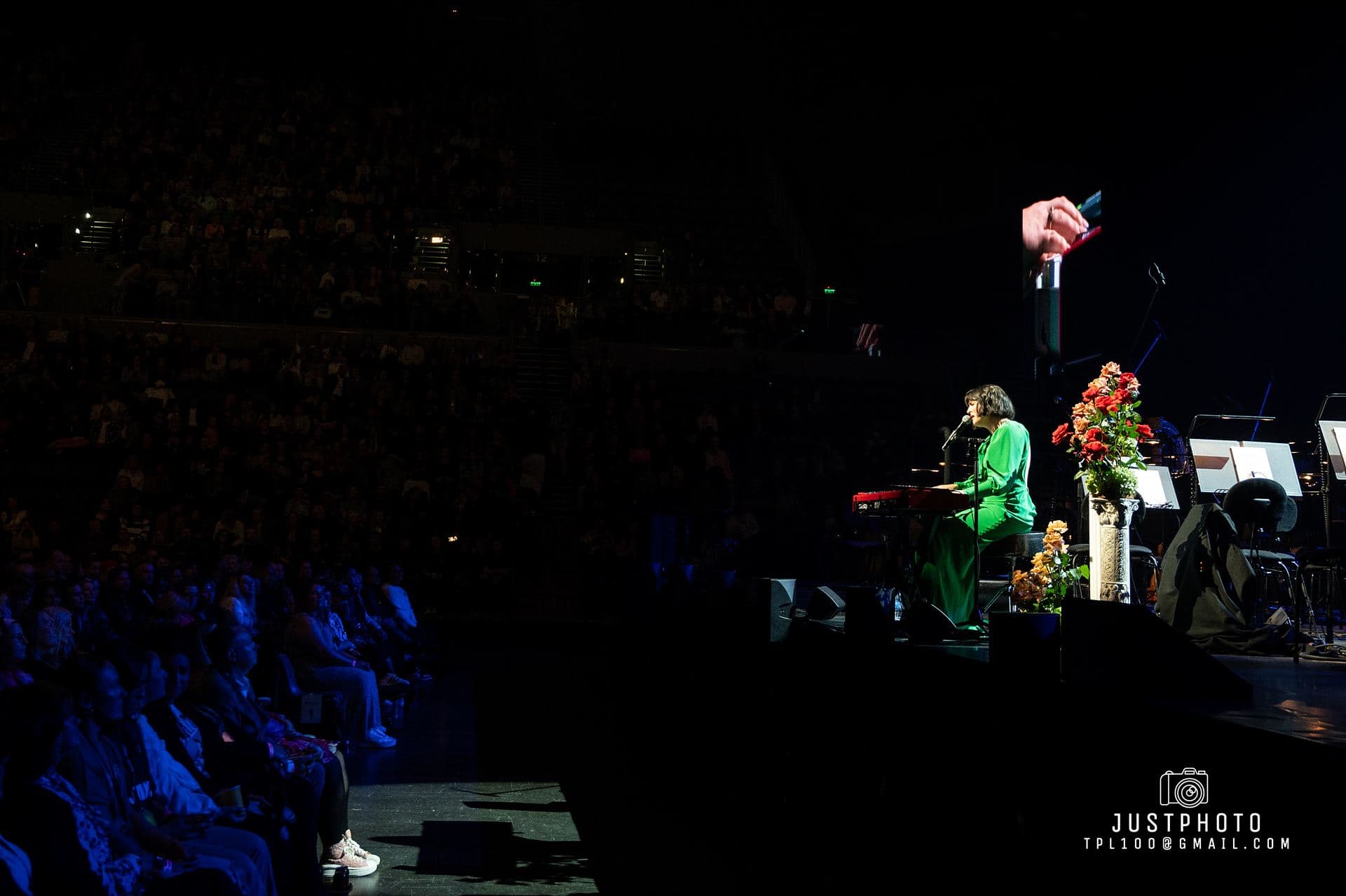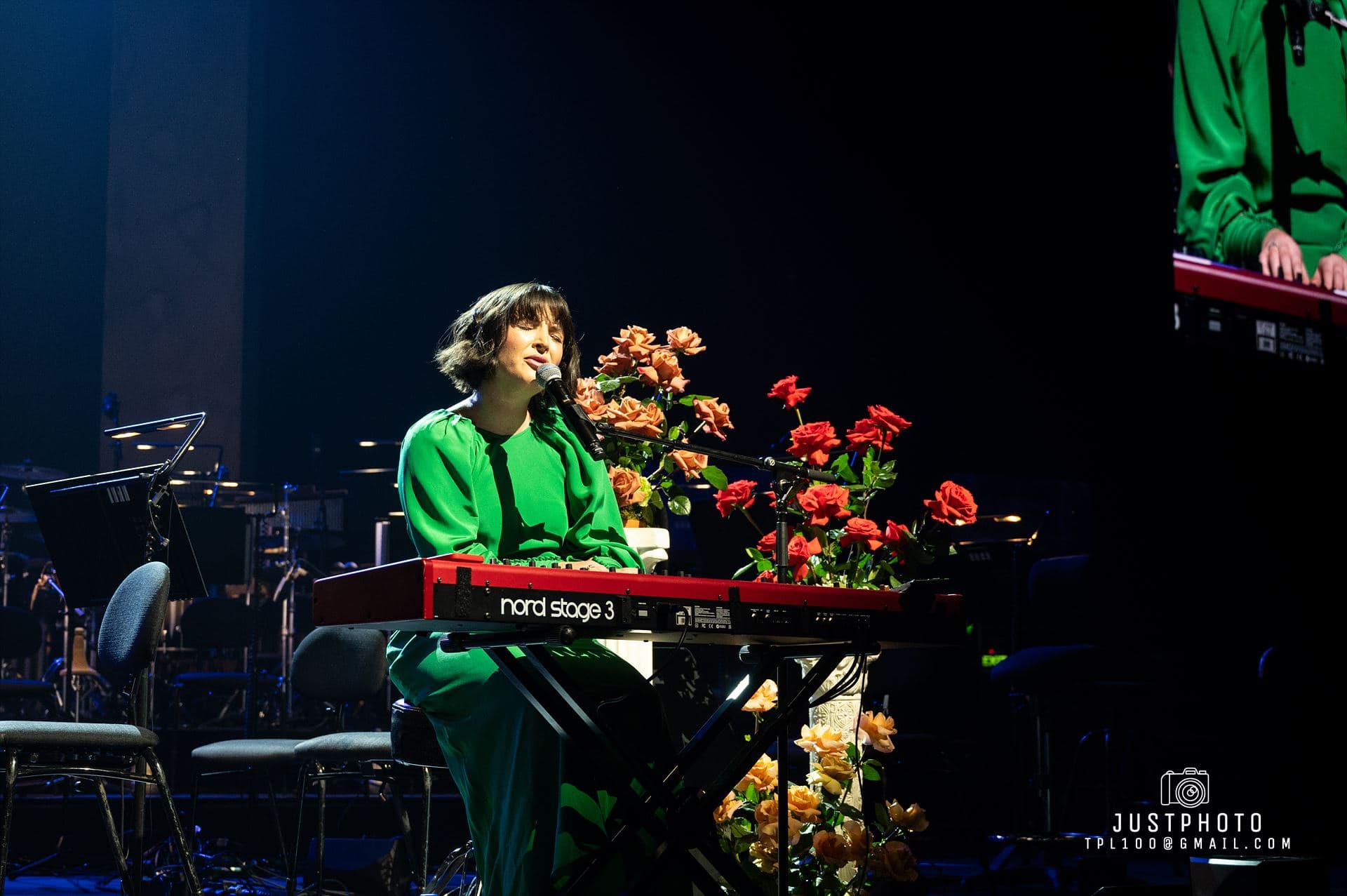 Georgia looked fabulous as well in her line green gown. Producer Nic Manders was brought out to accompany Georgia on set-closer Grand Illusion. My only complaint was that it seemed a shame that Georgia had to use orchestral backing tracks for several tunes when the Philarmonia’s instruments and empty seats were right behind her. Hopefully next time they will share the stage with her.