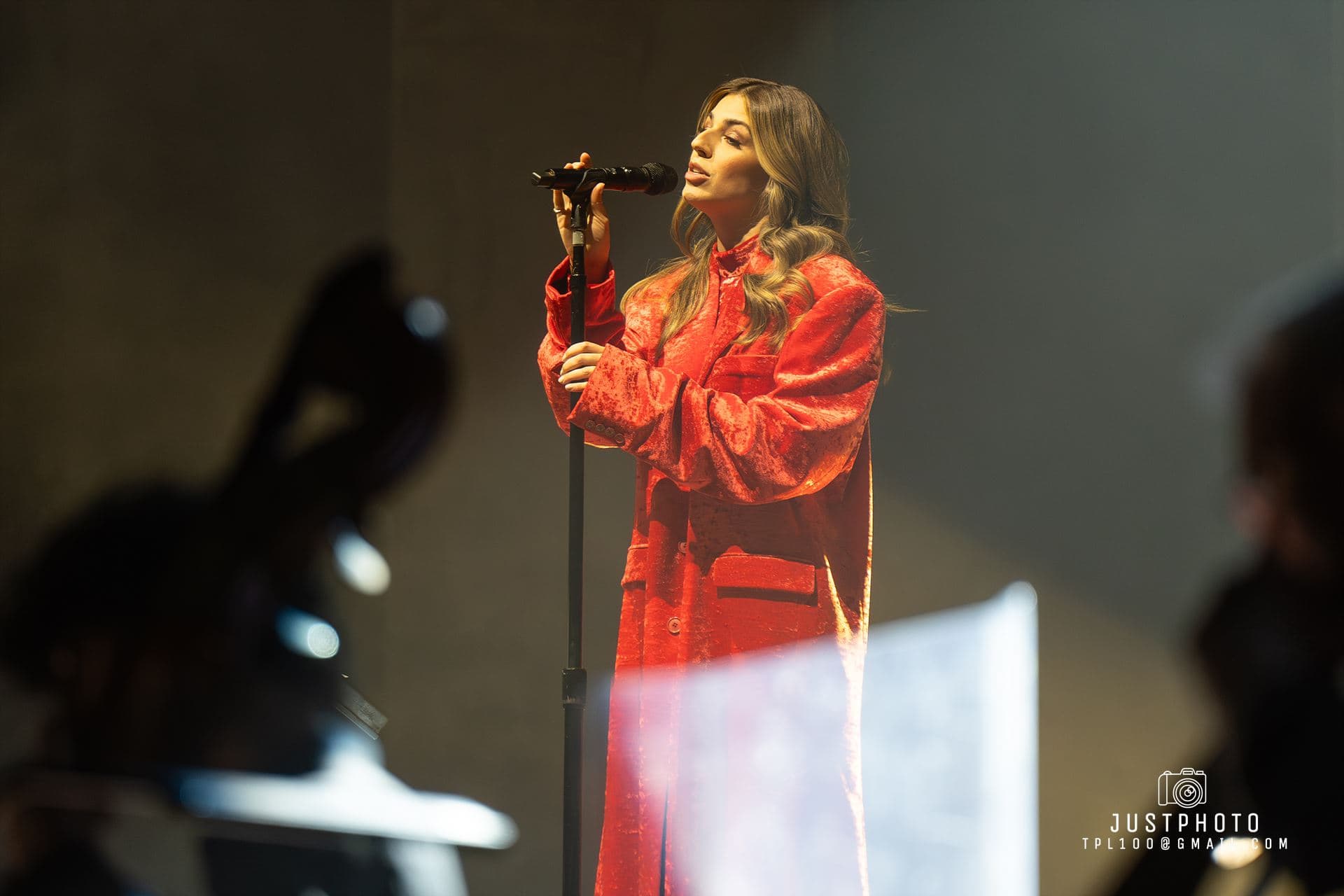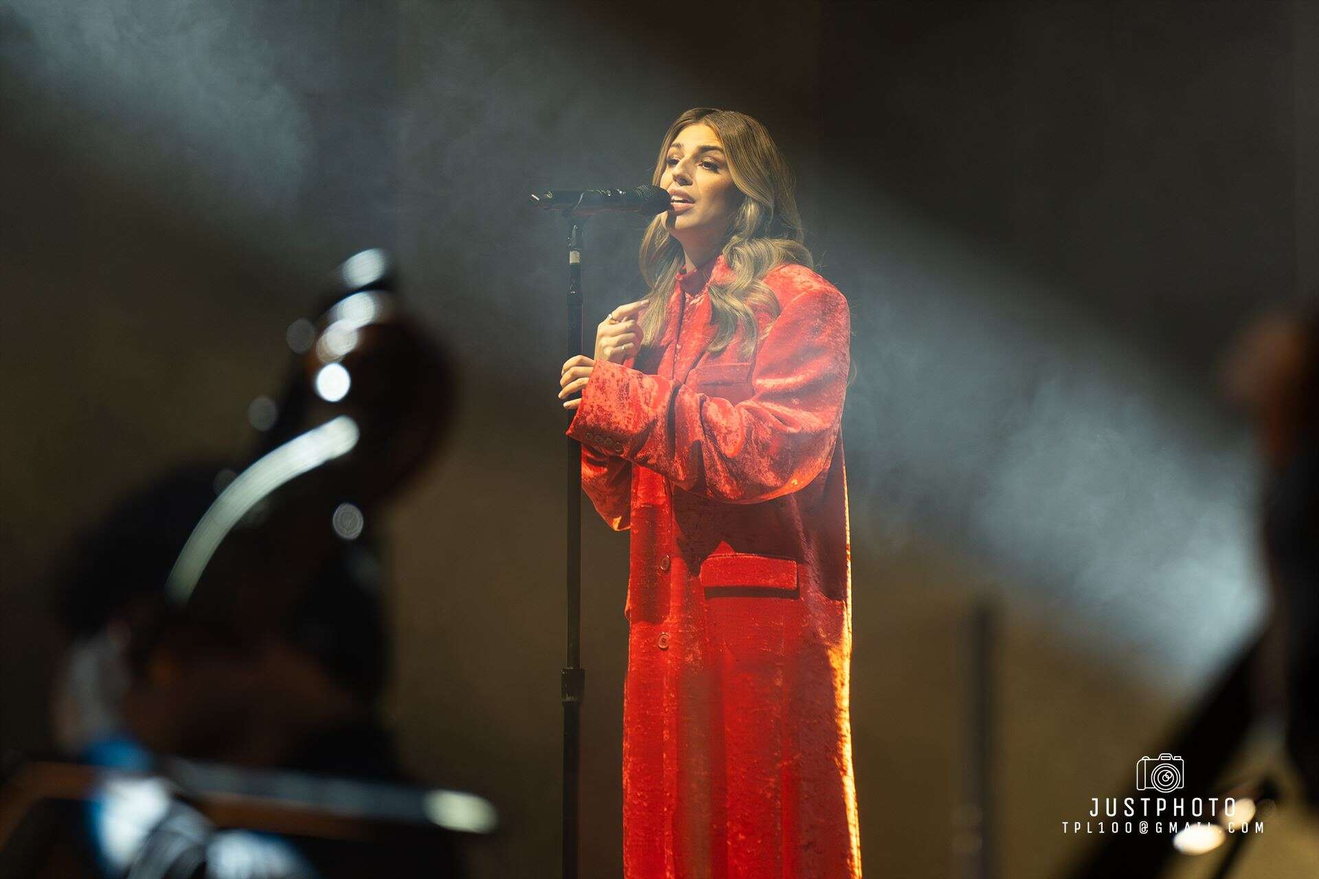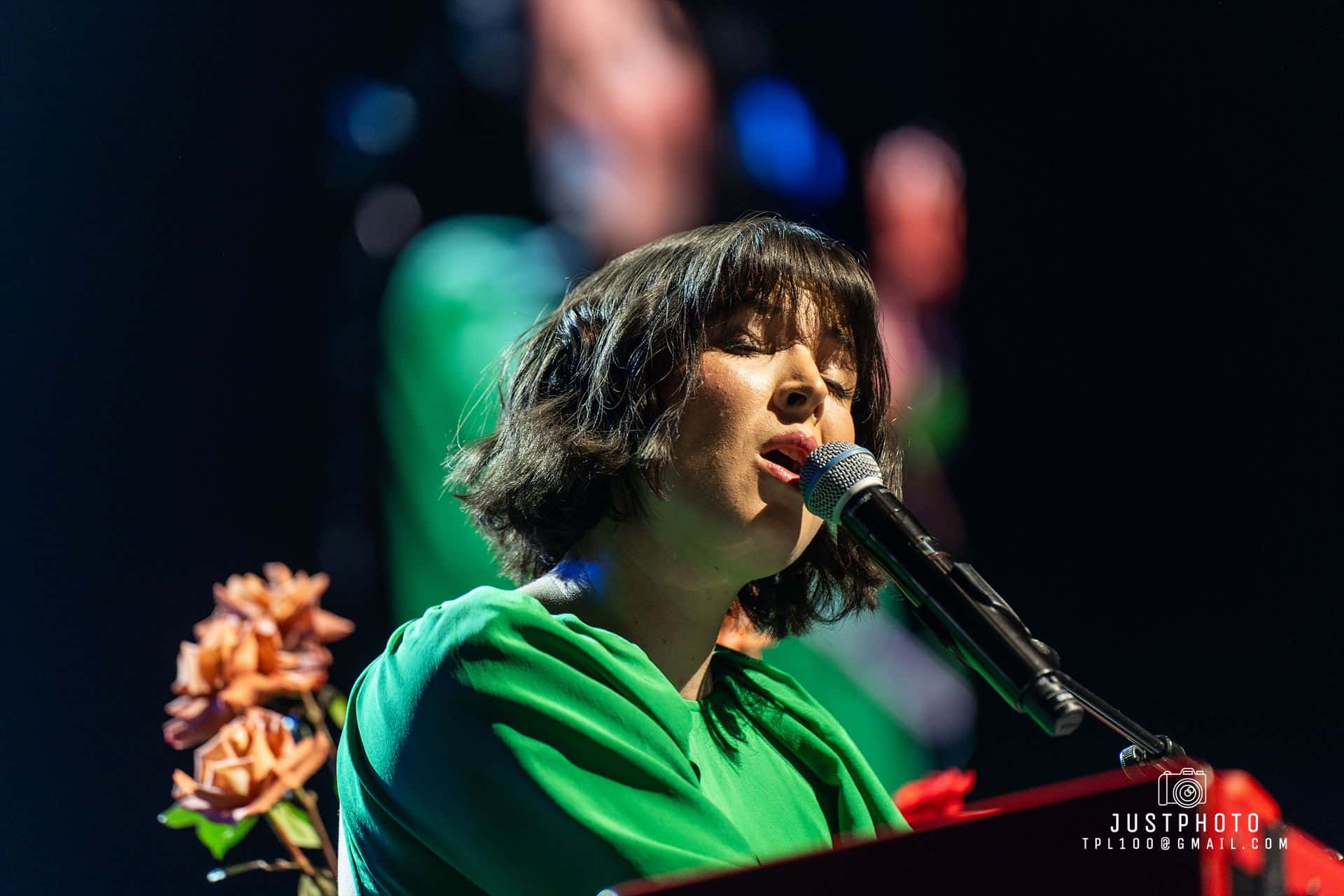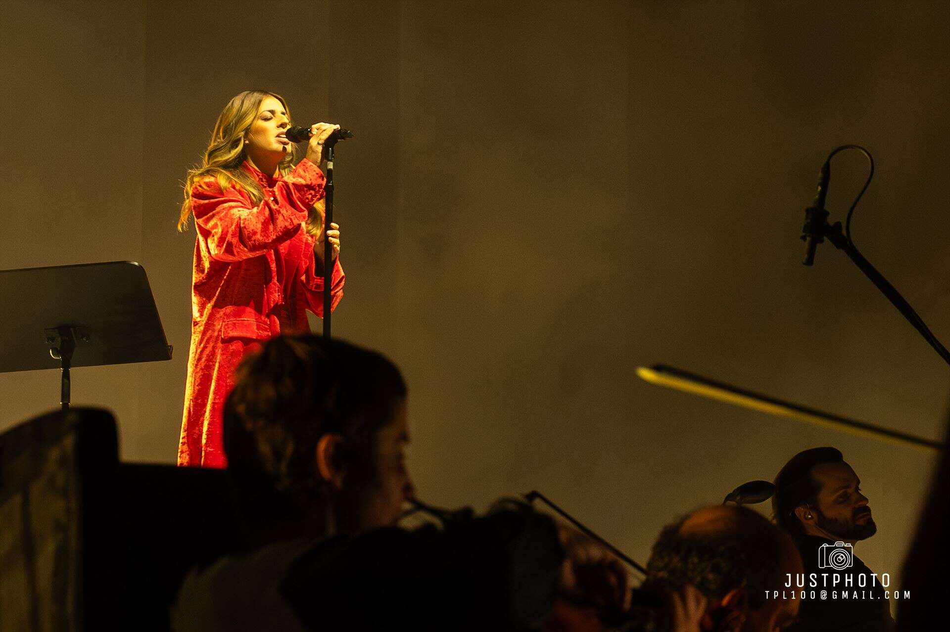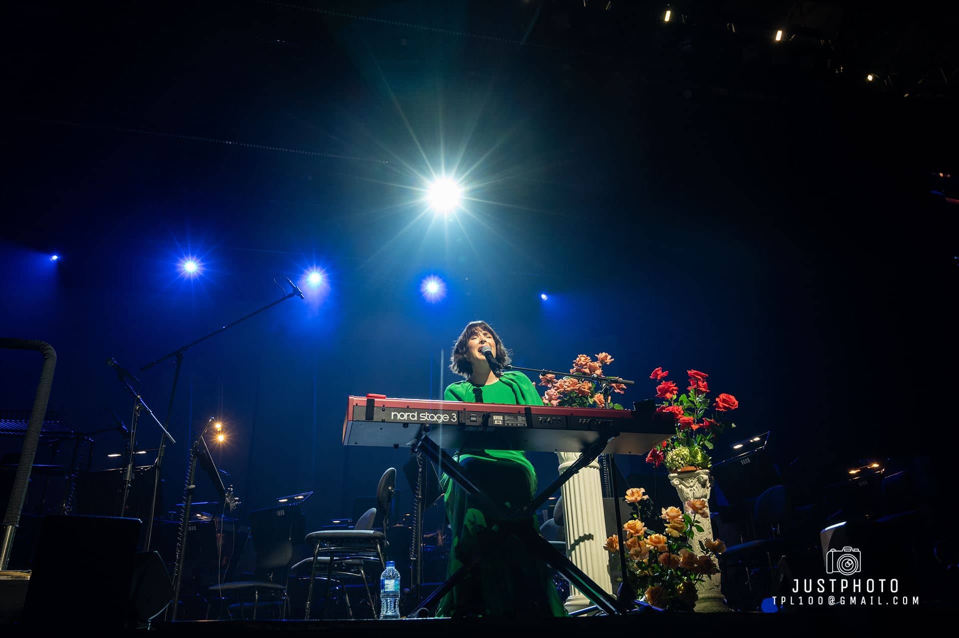 Georgia looked fabulous as well in her line green gown. Producer Nic Manders was brought out to accompany Georgia on set-closer Grand Illusion. My only complaint was that it seemed a shame that Georgia had to use orchestral backing tracks for several tunes when the Philarmonia’s instruments and empty seats were right behind her. Hopefully next time they will share the stage with her.