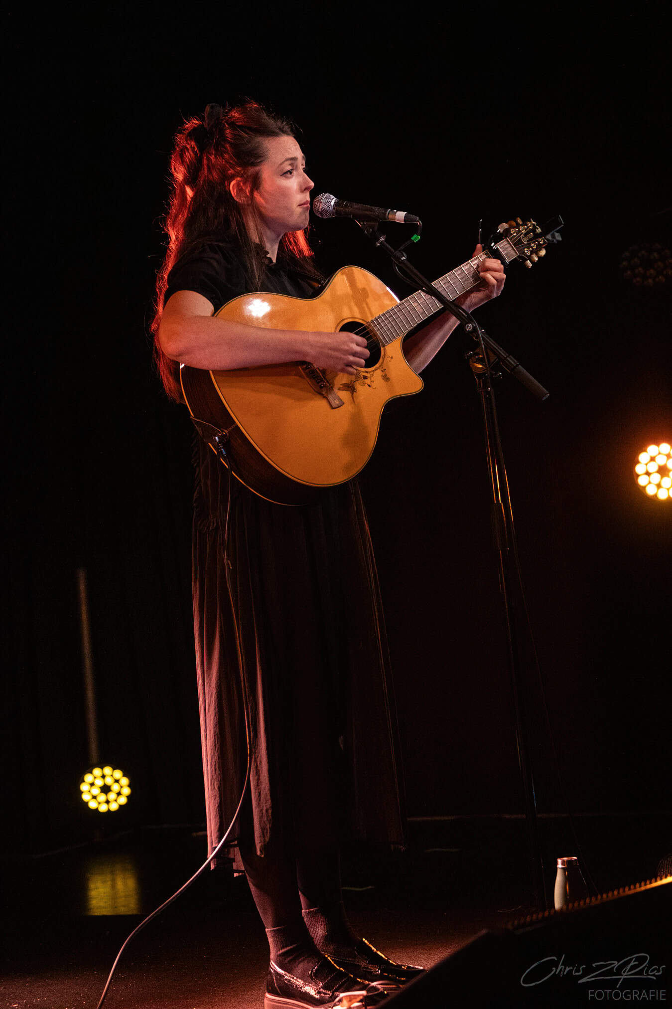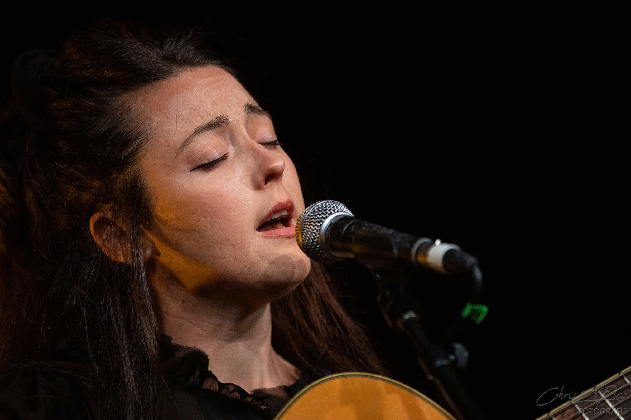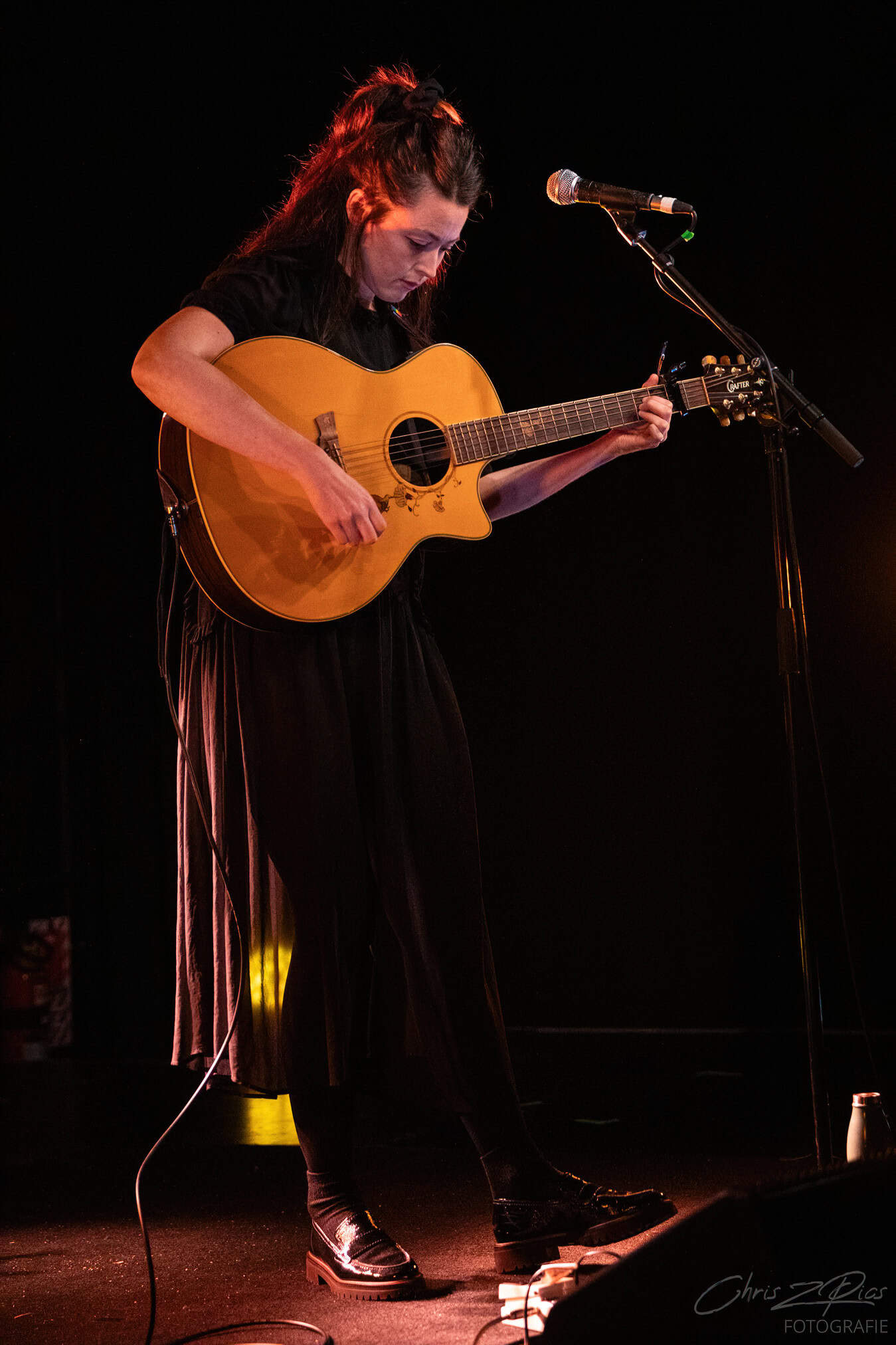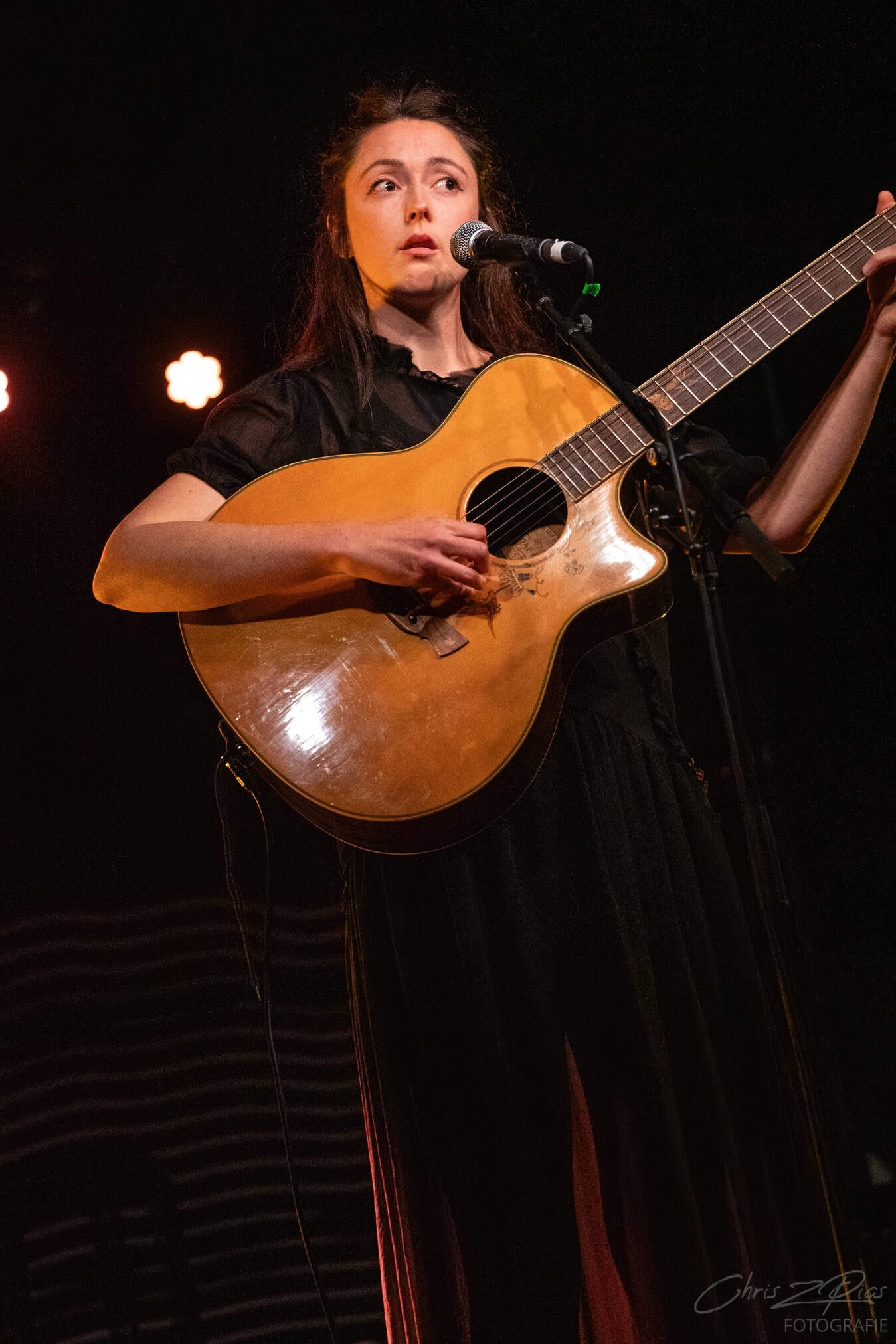 First on is Greta O’Leary. Long black dress. Dark hair. A pure voice and a slow-plucked acoustic guitar. Sparse ingredients for what’s been described as her ‘spook folk’ style.