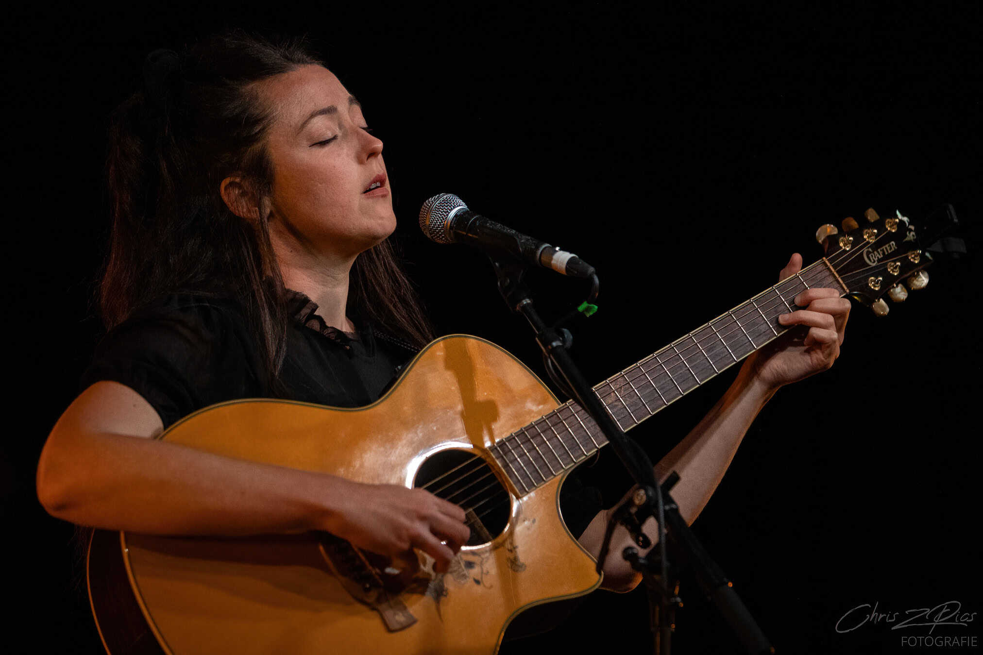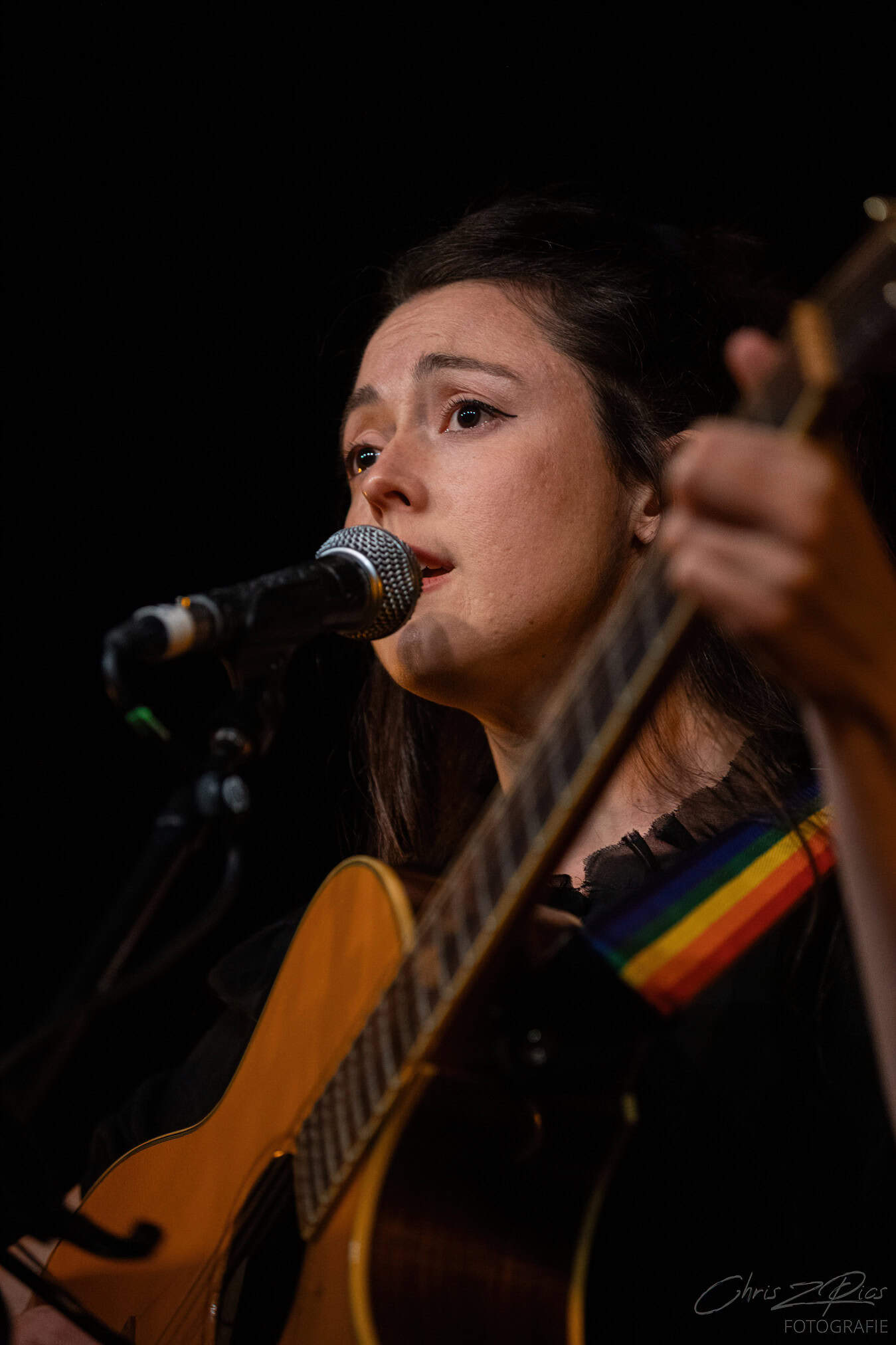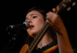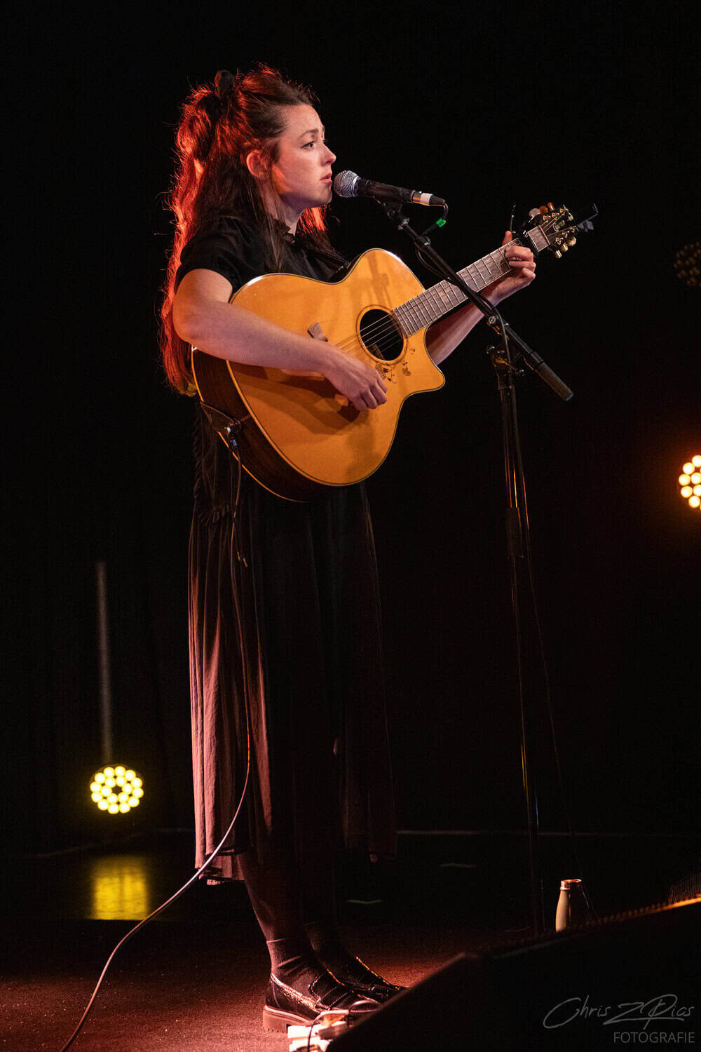 First on is Greta O’Leary. Long black dress. Dark hair. A pure voice and a slow-plucked acoustic guitar. Sparse ingredients for what’s been described as her ‘spook folk’ style.