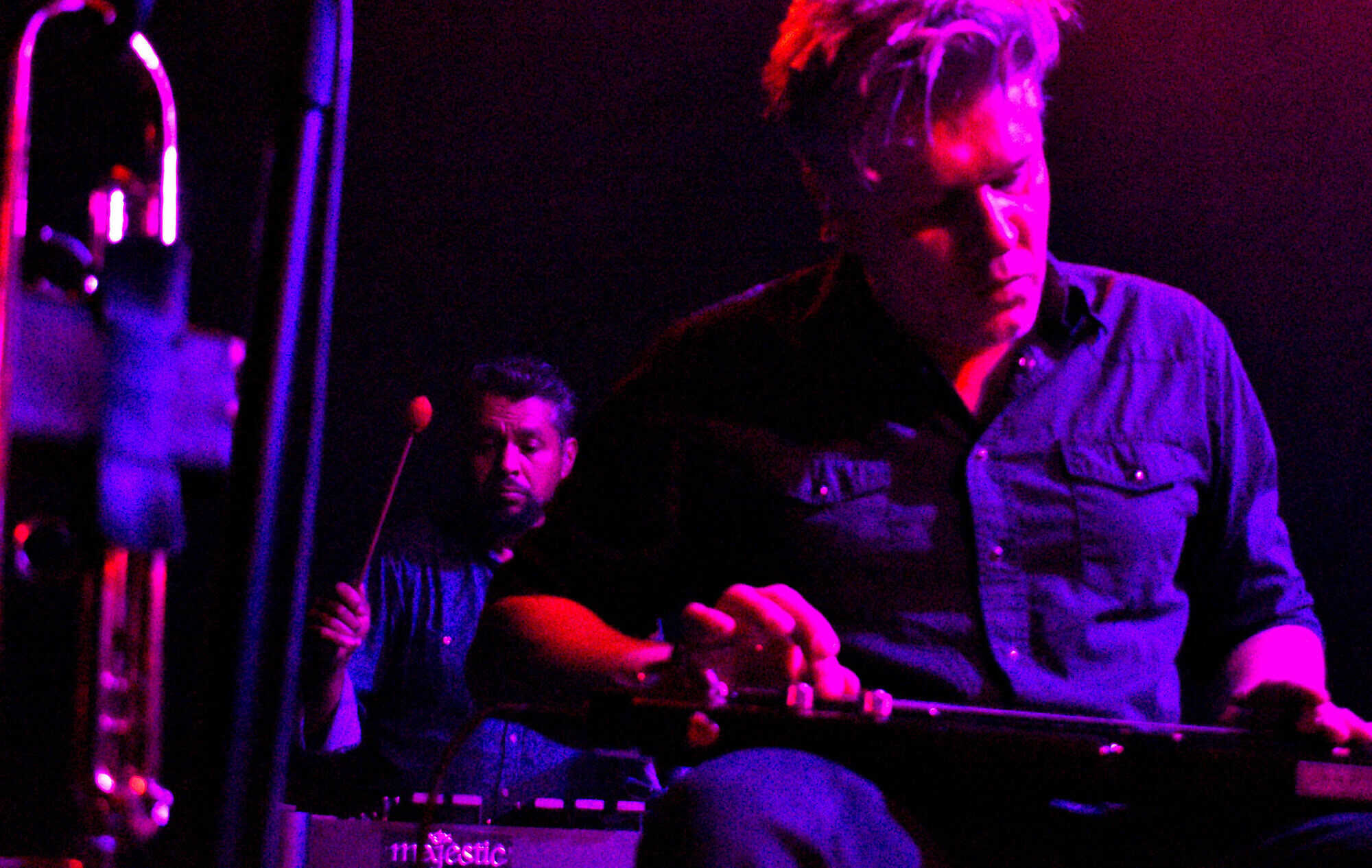 about him being in Aotearoa. It’s quite a rant, but it doesn’t seem strained or rehearsed as the Vibraphone and brass in Quattro (World Drifts In) sound huge and the harmonics of Black Heart fills the room, the six musicians on stage can’t help but dominate the Powerstation tonight.