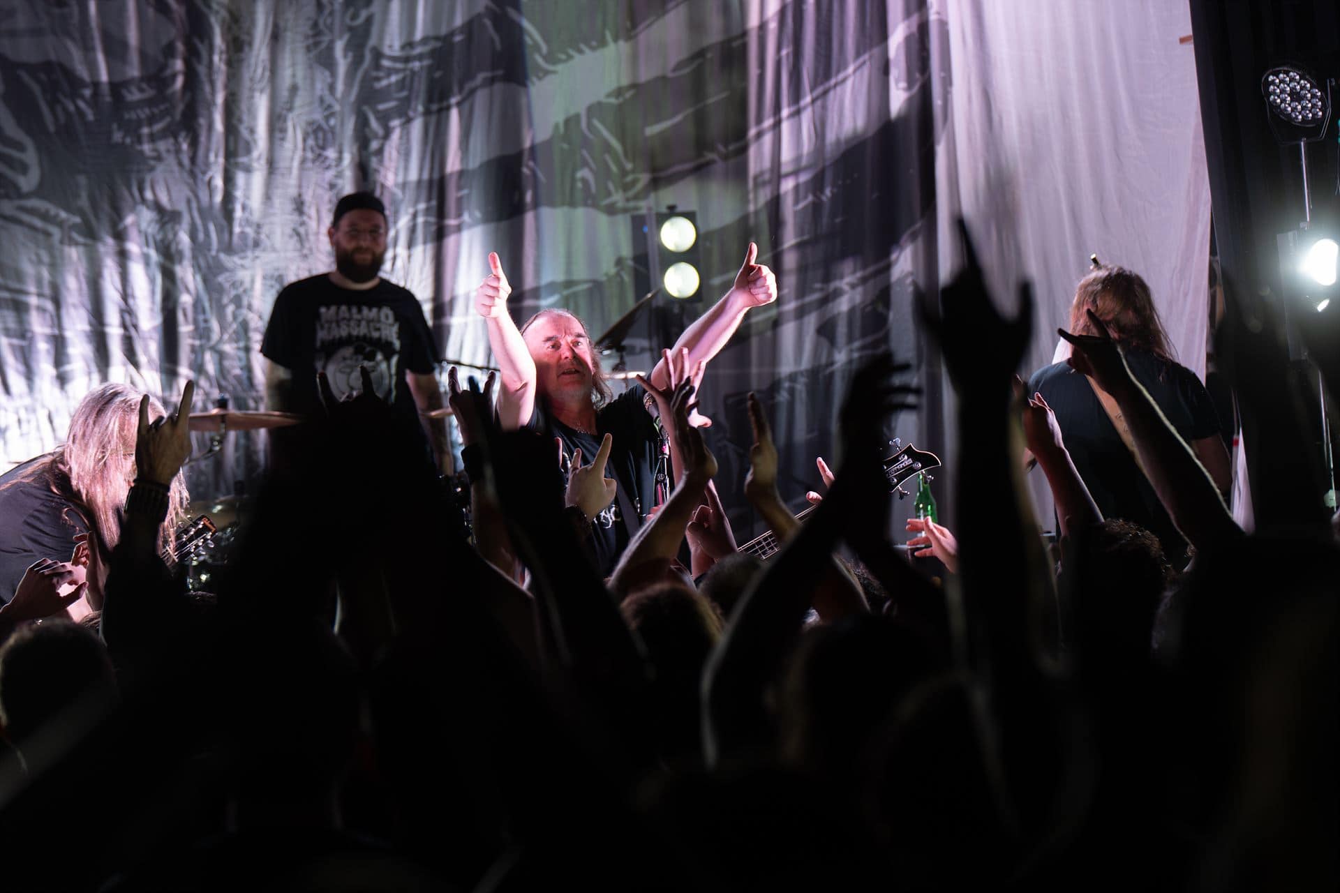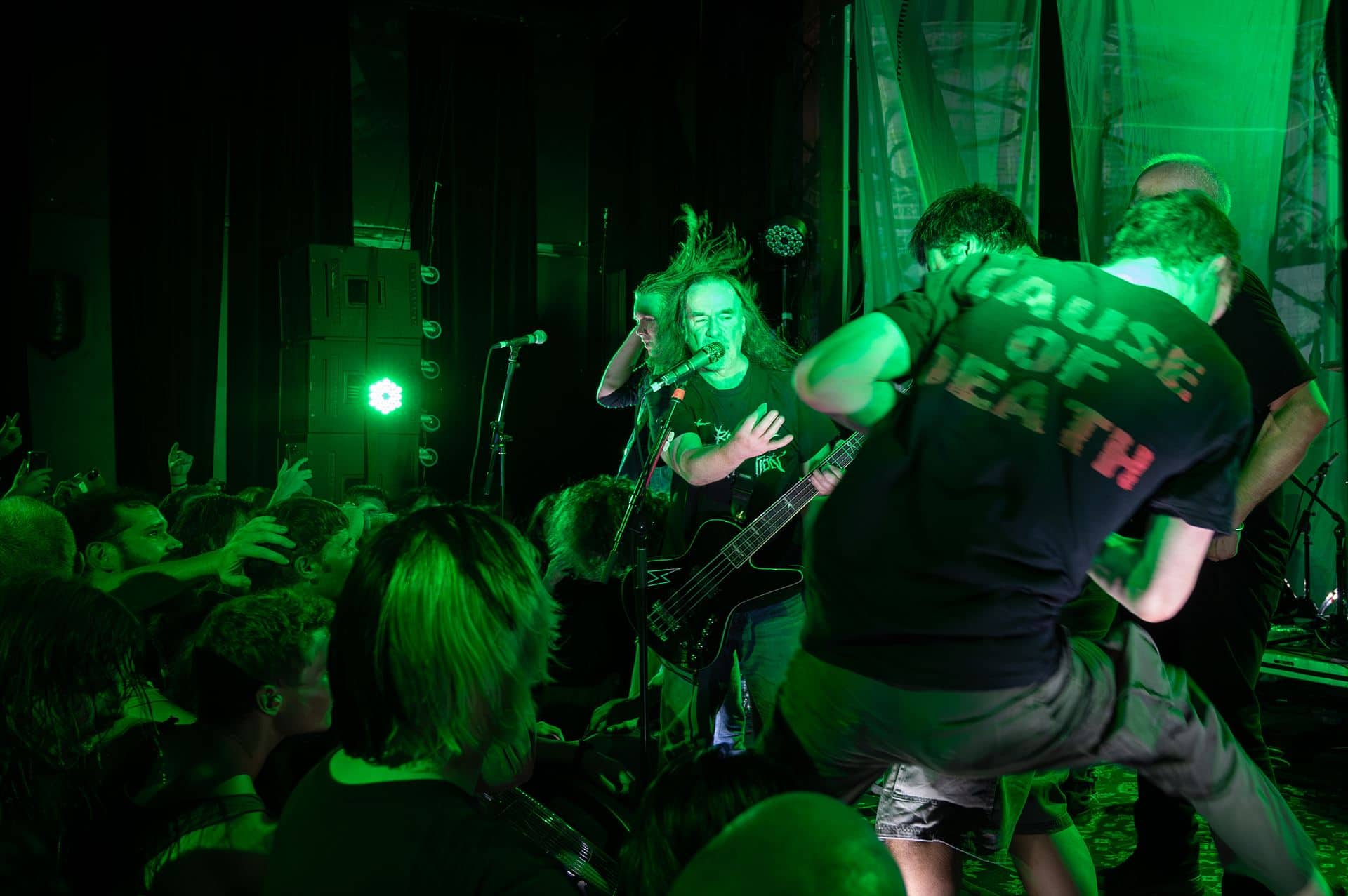 From groove to grappling in the moshpit, as Carcass return for a two song encore reaching way back, not to their first album Reek of Putrefaction, but to 1989’s Symphonies of Sickness, an album more favoured by the band, to pull out two classics Exhume to Consume and Reek of Putrefaction that bring the massive nights energy to a close in classic grindcore meets death metal style.