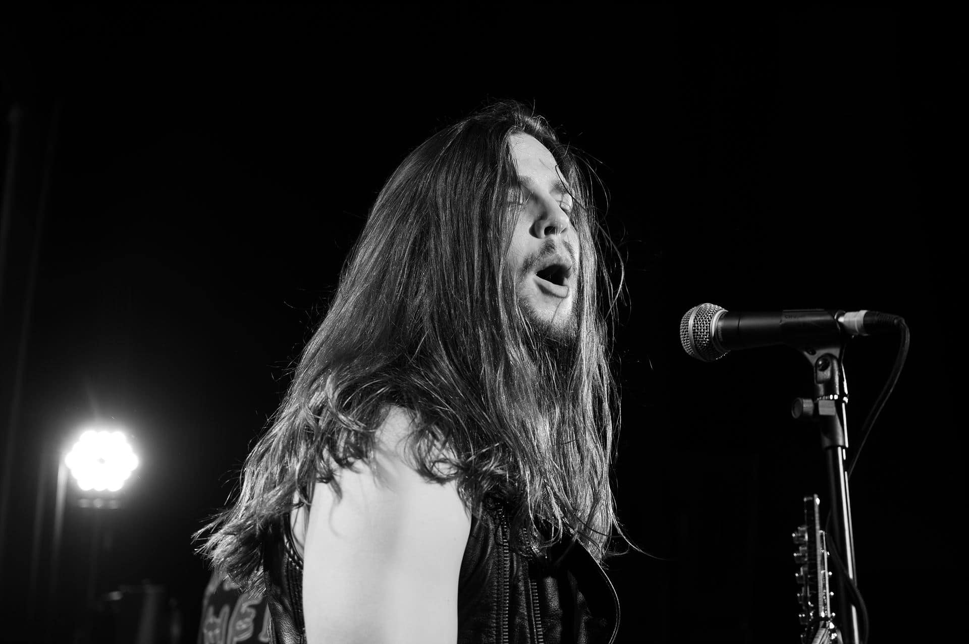 Melbourne-based, self described groovy death metallers Flesh Merchant are already onstage as I just made it into the crowded room late due to shit parking on K’rd and the snaking queue, to catch their last three songs. The groovy part was the slap bass, which, but what stood out was the guitarist’s magnificent beard wow! The group’s sound was traditional death metal with mandatory growl vocals and pace action. They warmed the audience verily, making fans from the effort, hopefully we’ll see these across-the-sea cousins back again soon.