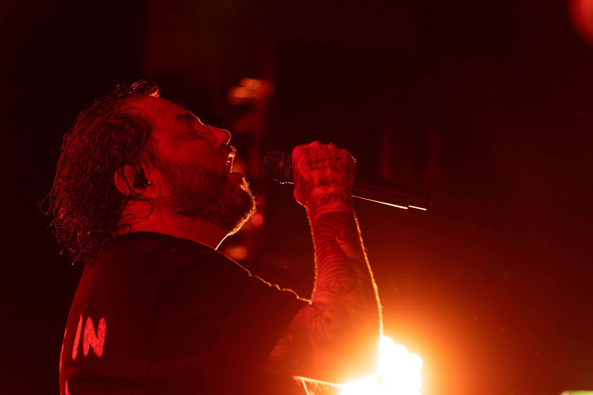 Gothic orchestral-like music sets the scene as the band bathed in red takes the stage. It is unrelenting aggression and energy that emanates from the stage with immediacy