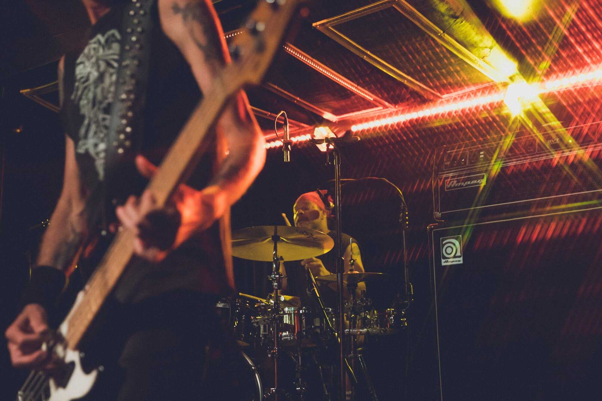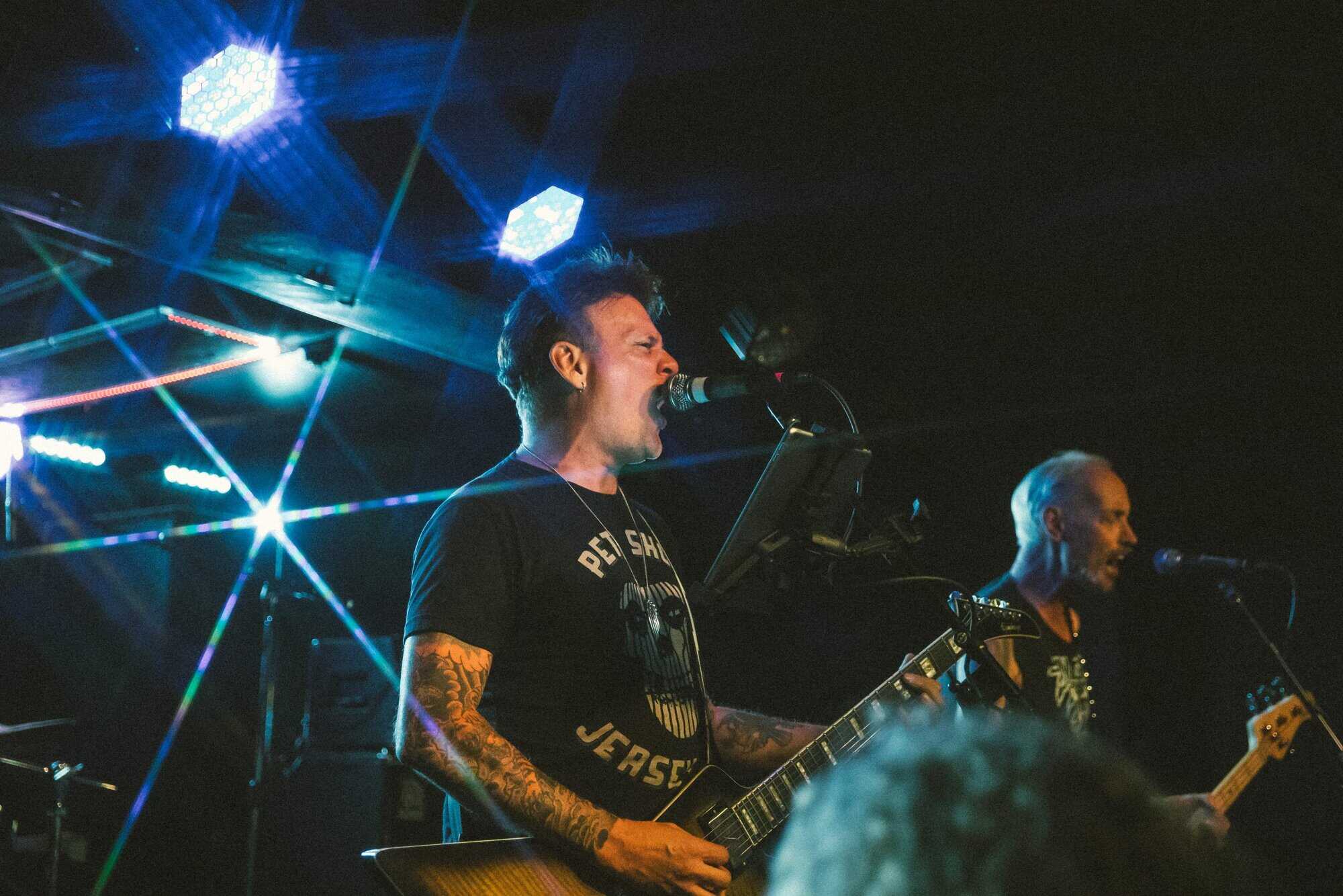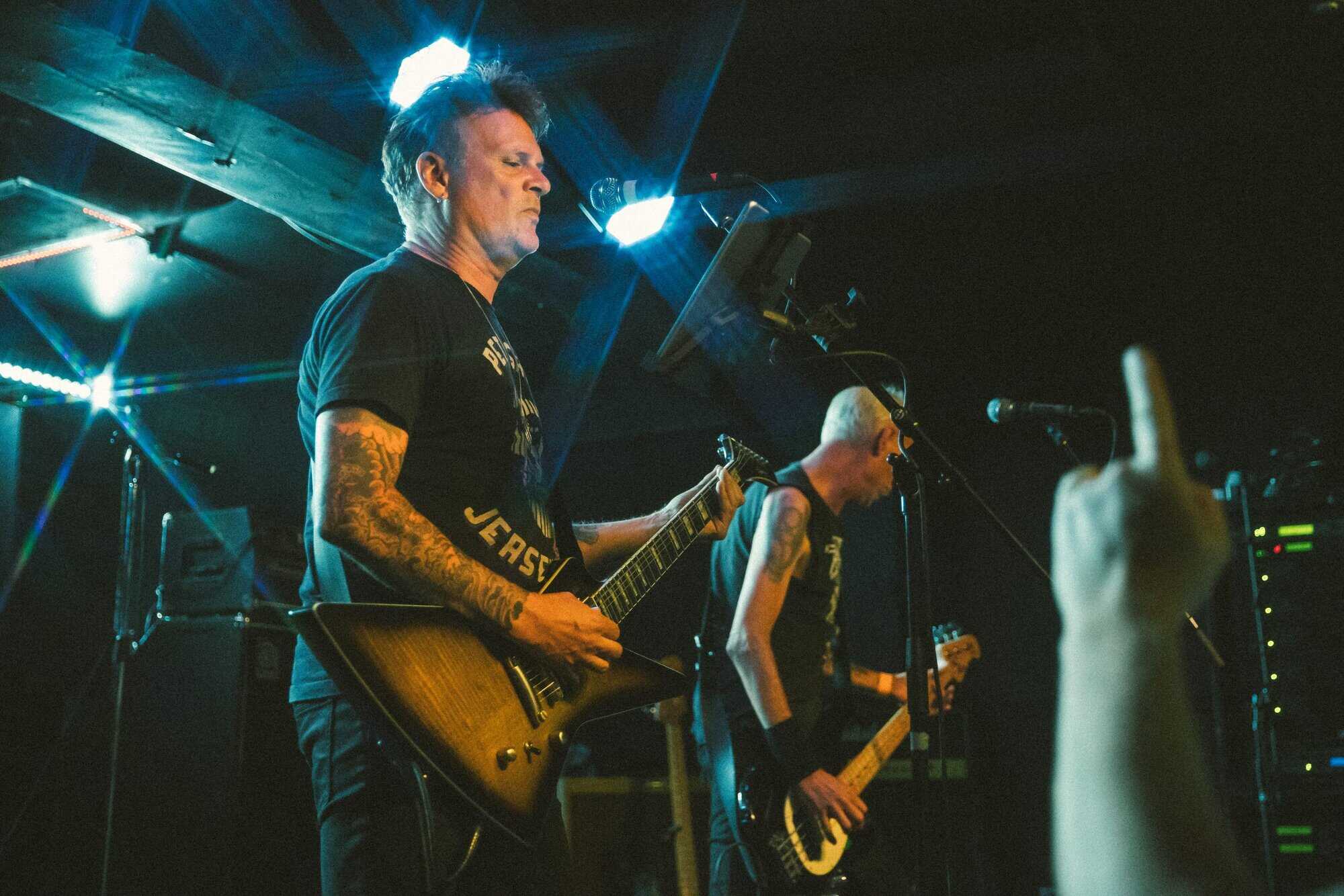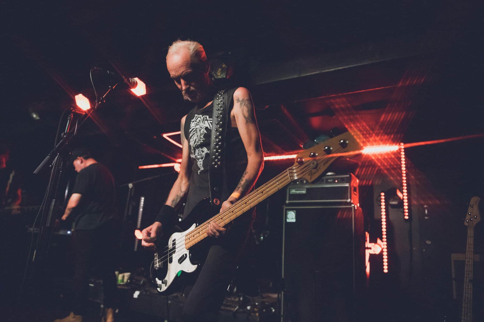 Again, in a set of about five or six songs, with a guest guitarist, Simon Nicholls alongside longtime compadre in crime Dave Goodson, they re lived their chaotic youth, as they delivered polished thrash and speed metal songs about Satan, Judge Death, Serial Killers and skating, much to Dave’s mirth as he sang lyrics from memory and ipad